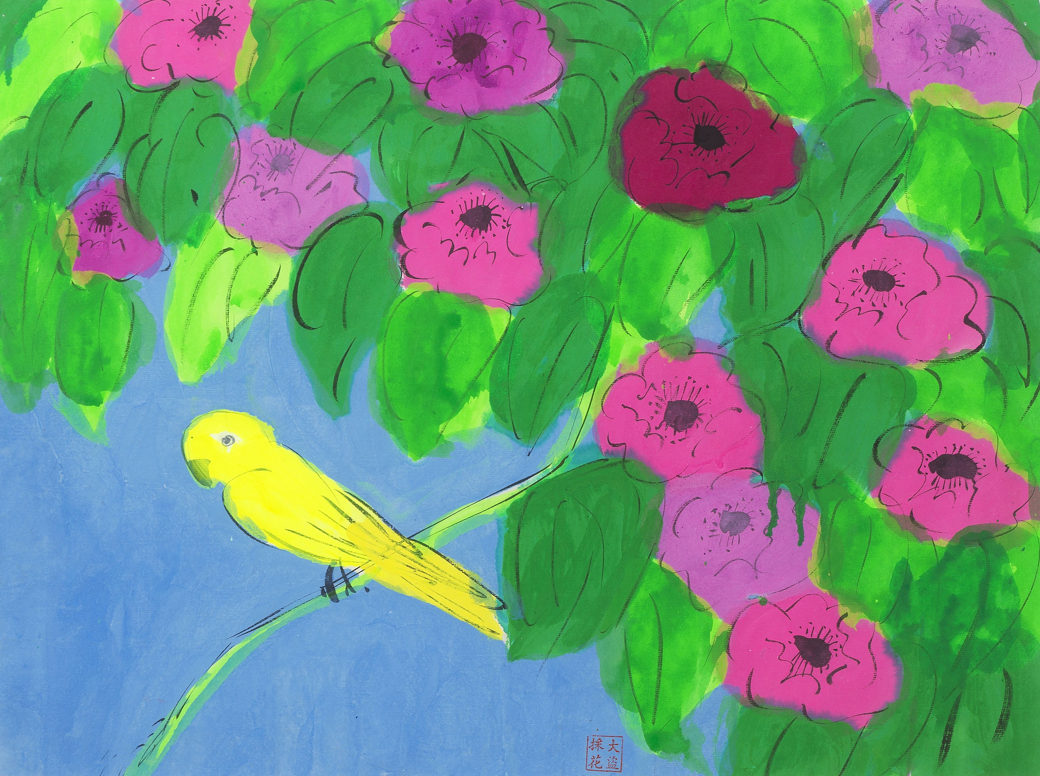 Le Perroquet Jaune, aquarelle sur papier, cachet de l'artiste, 4...
