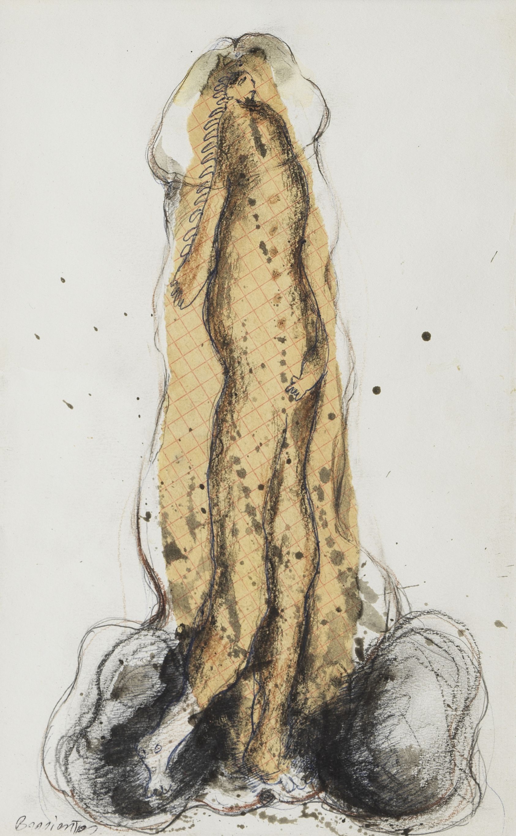 Erection, technique mixte sur papier, signée, 24x16 cm