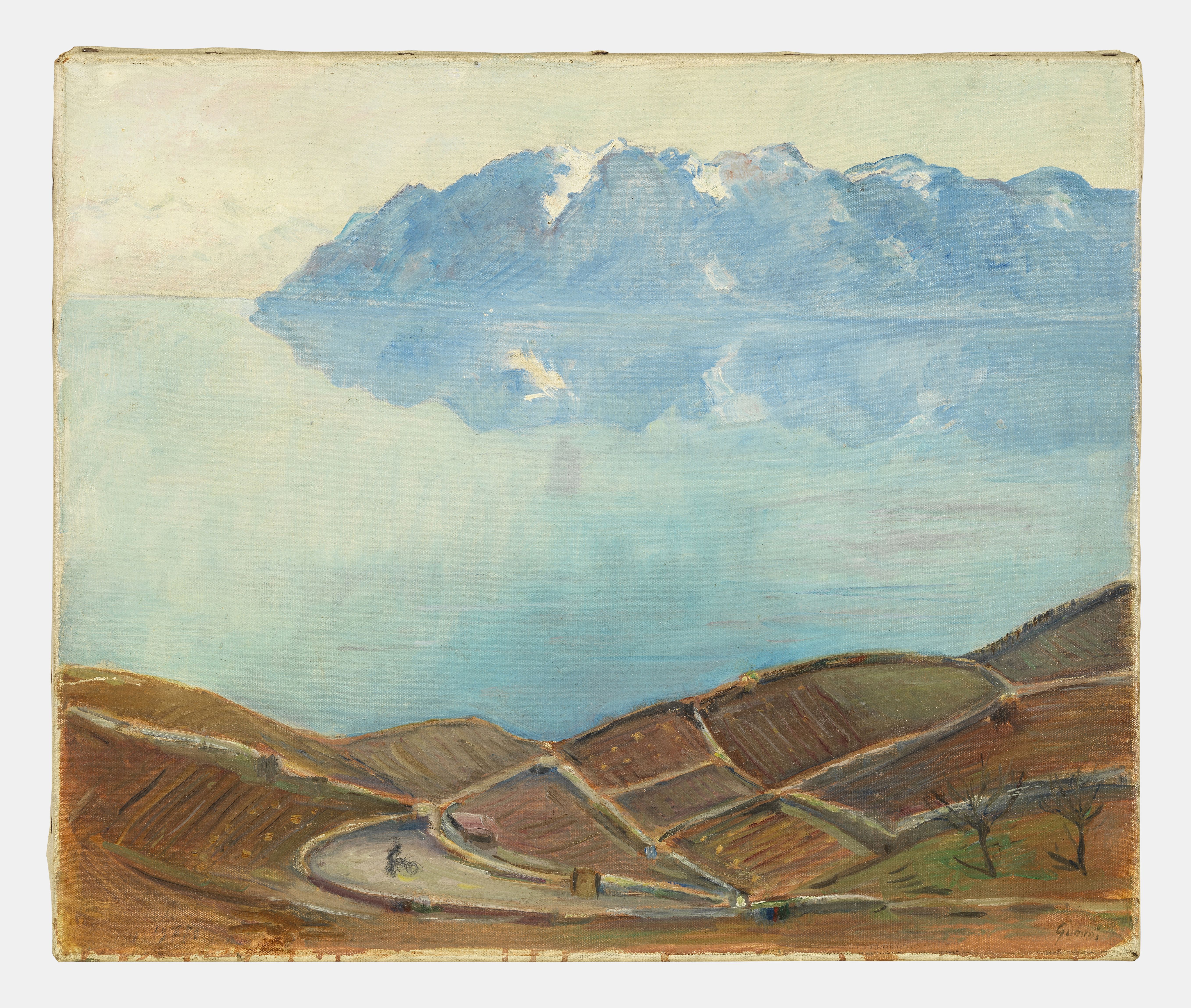 Vue du lac depuis Lavaux, huile sur toile, signée, 47x56 cm