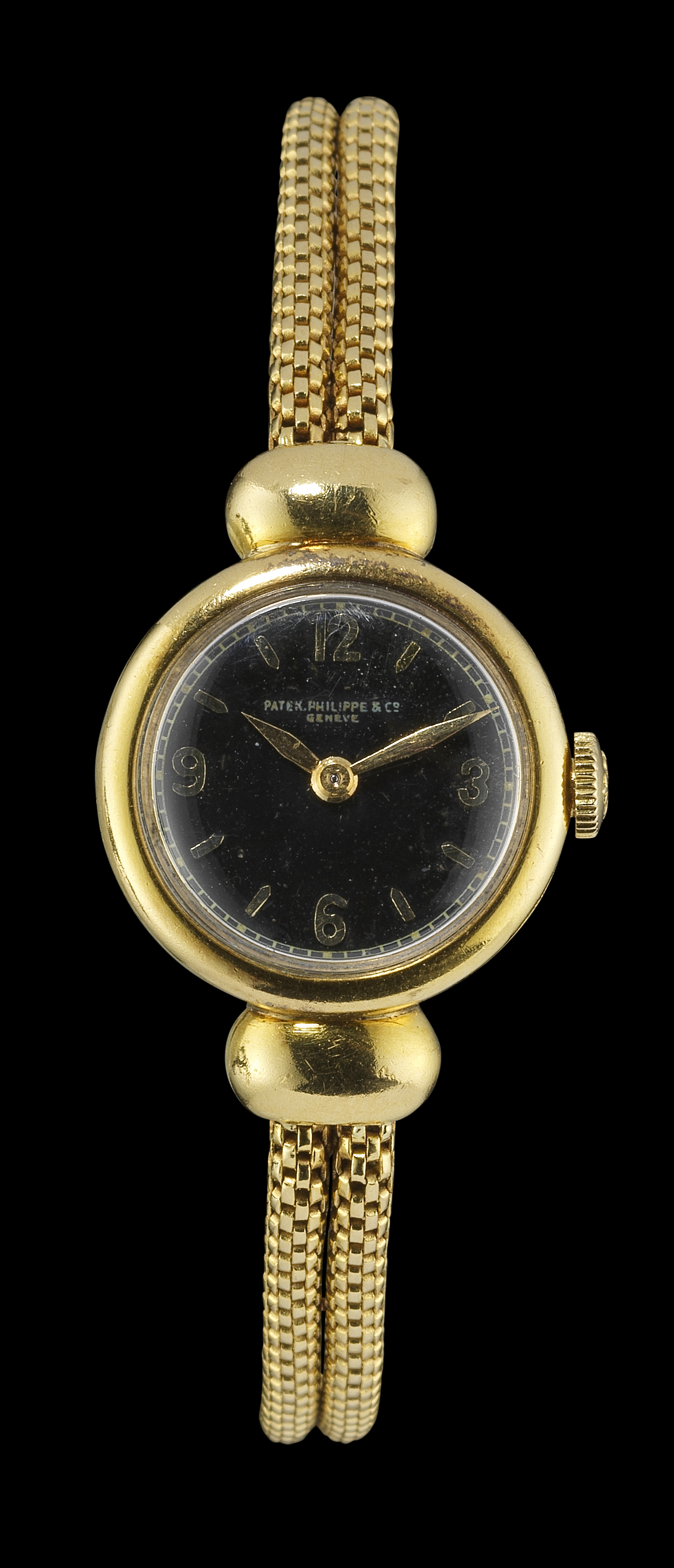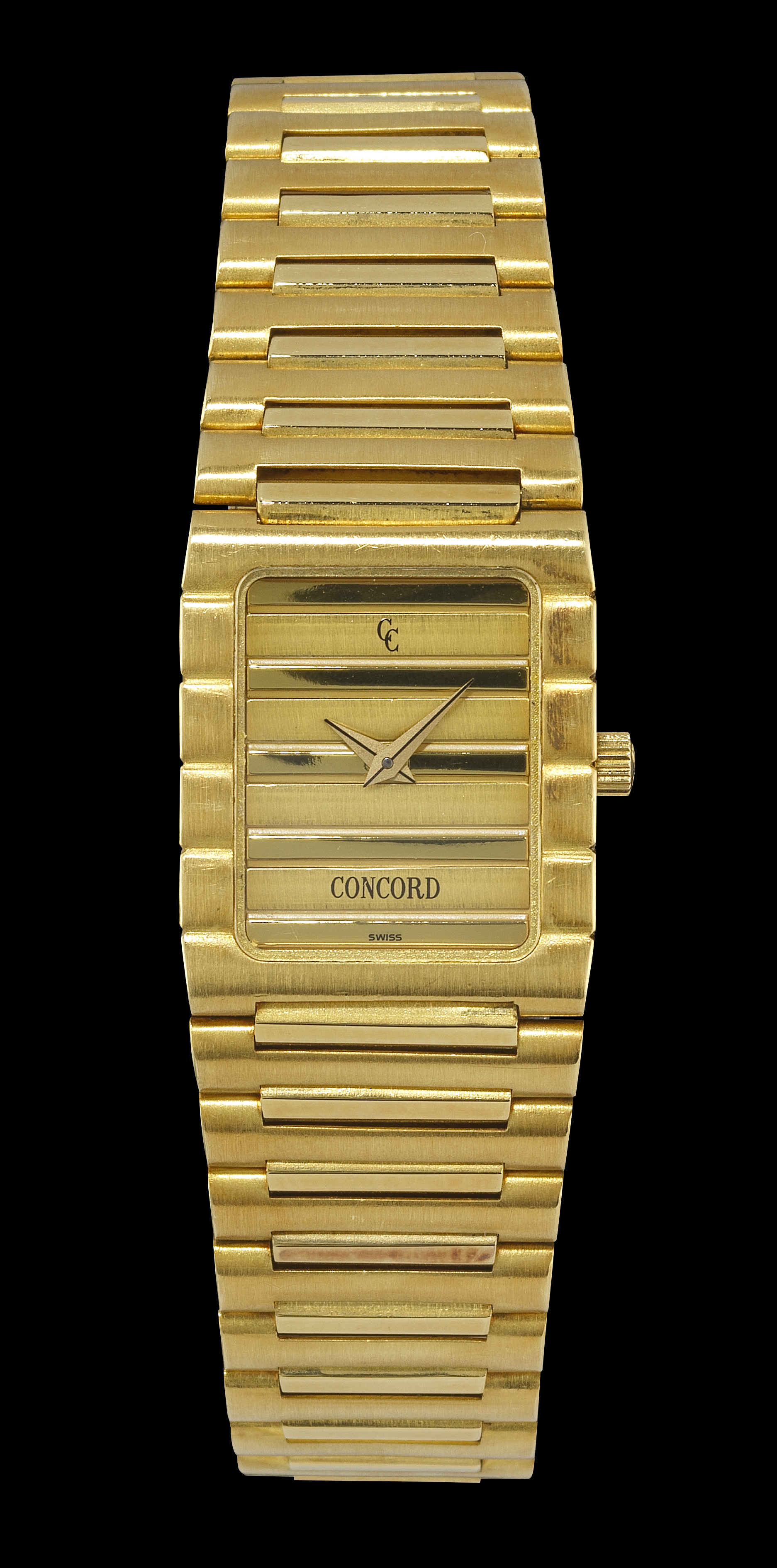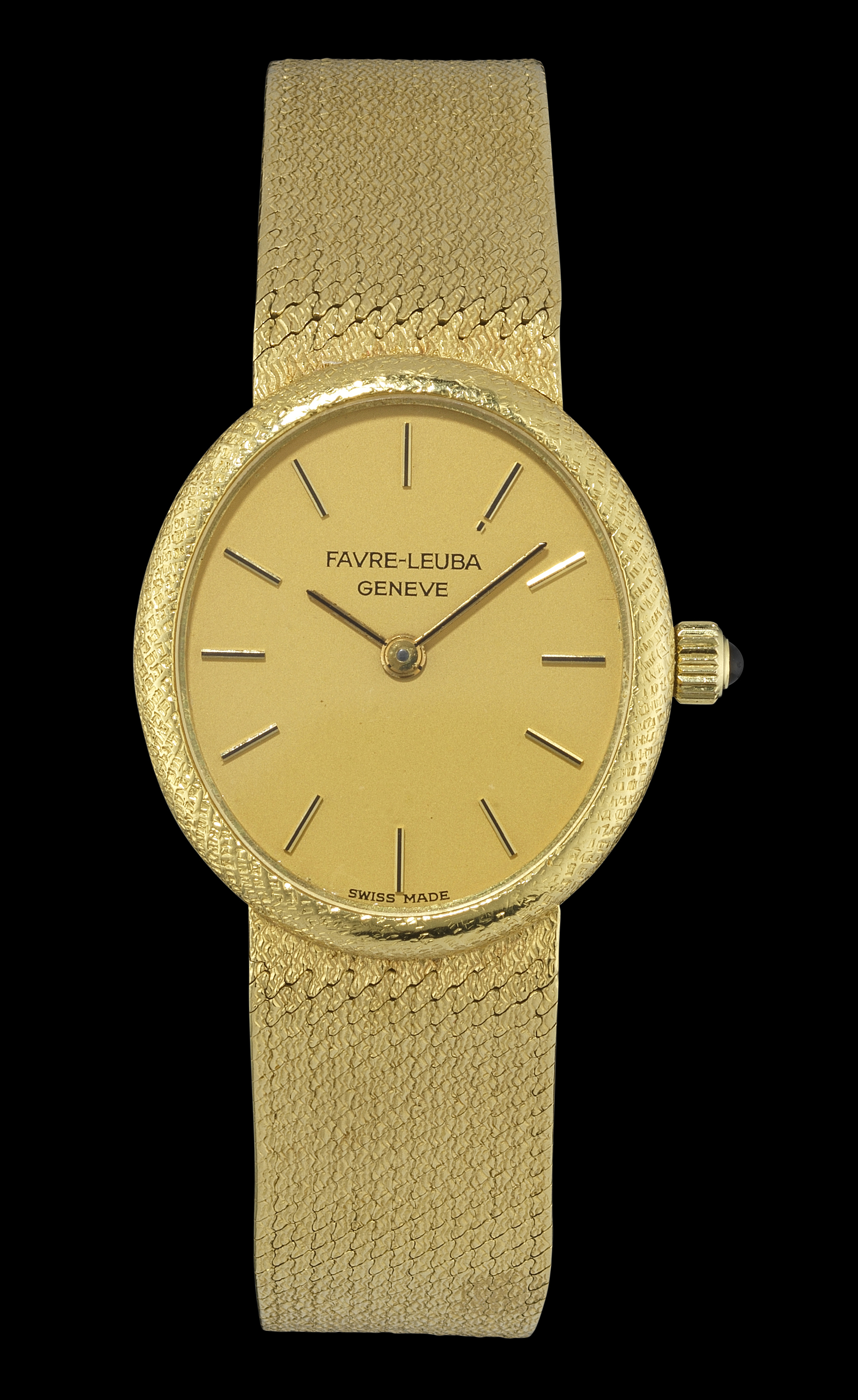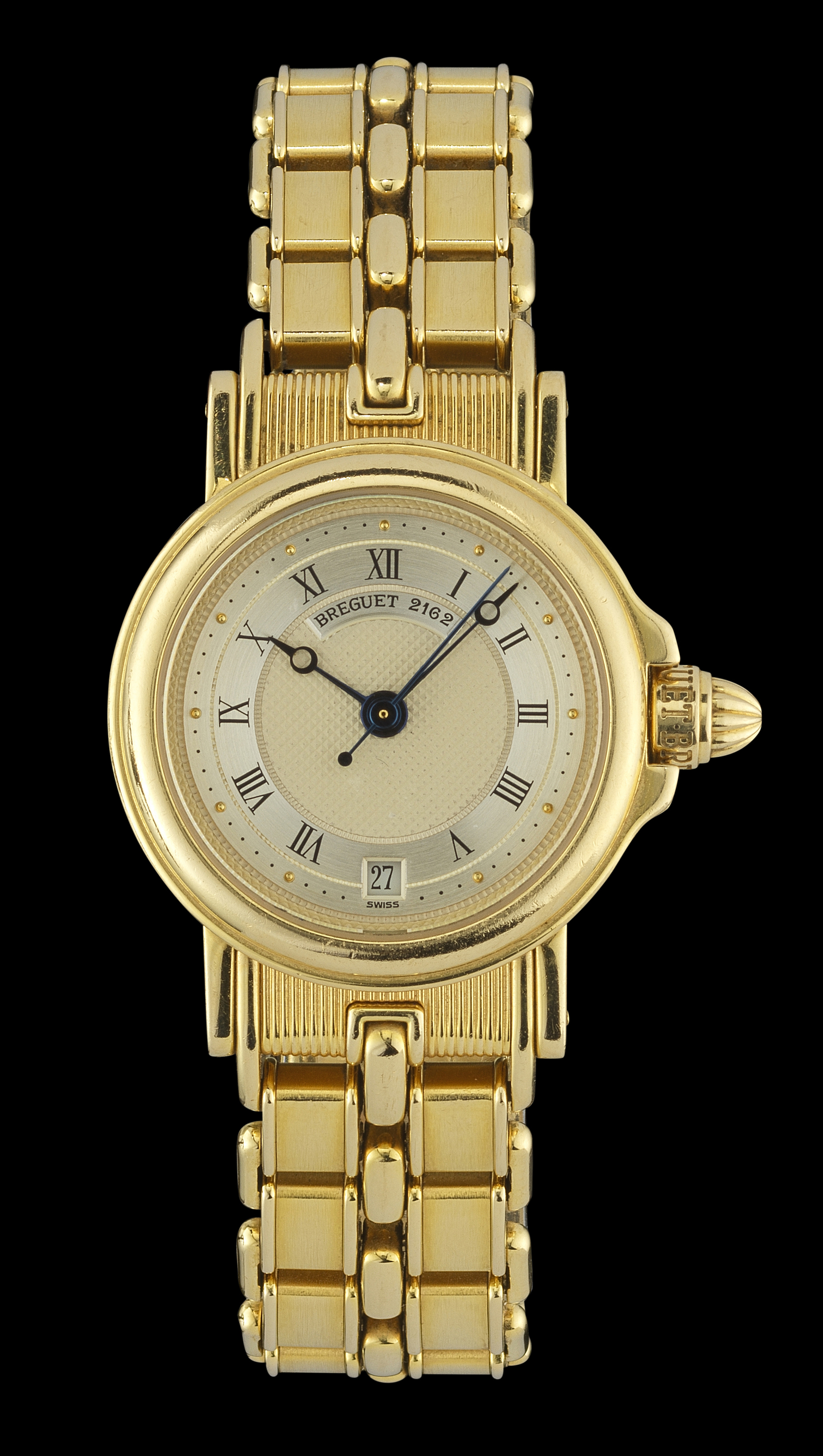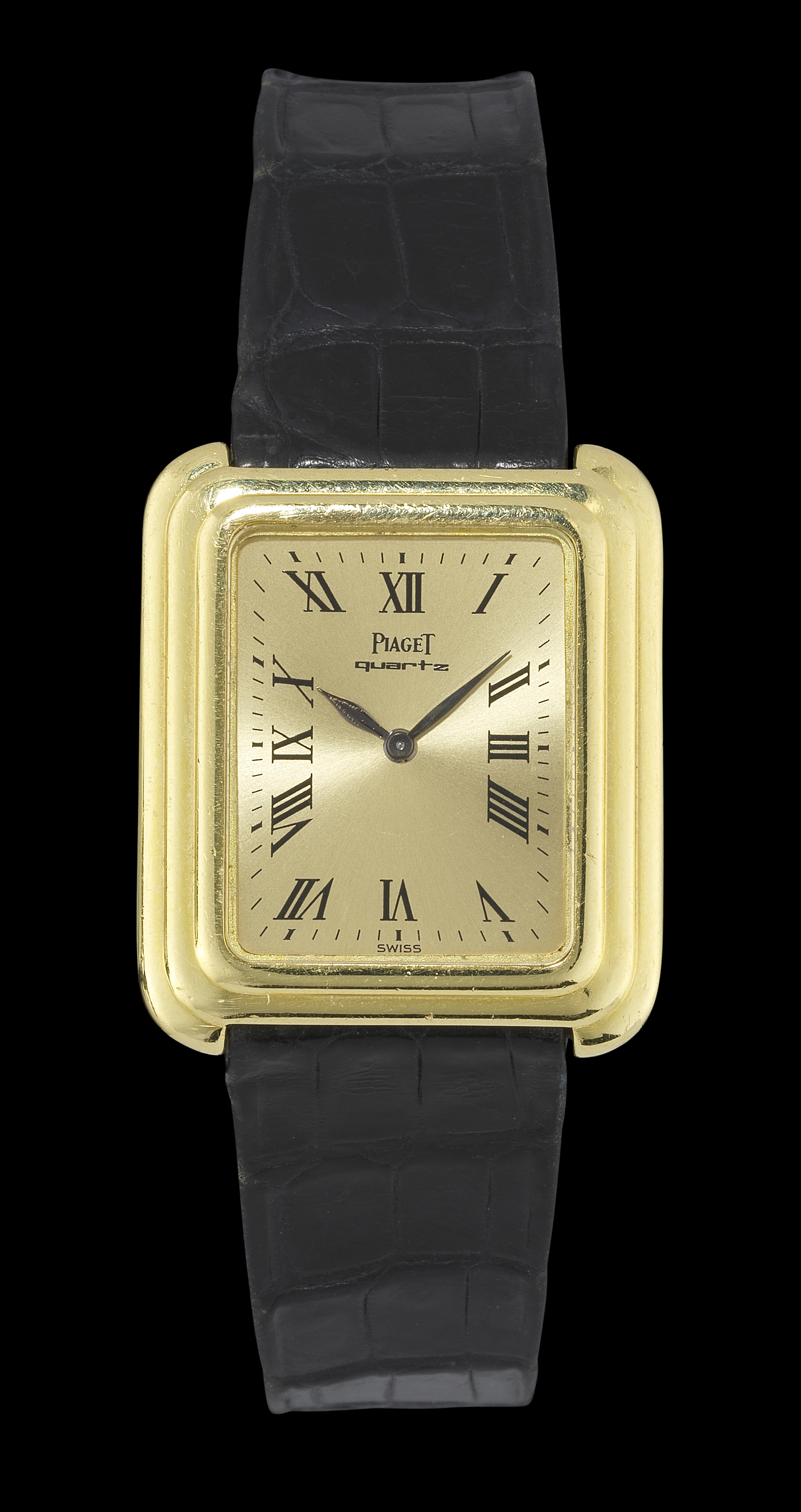 Cadran et aiguilles dorés, chiffres romains noirs, or 750, signé...