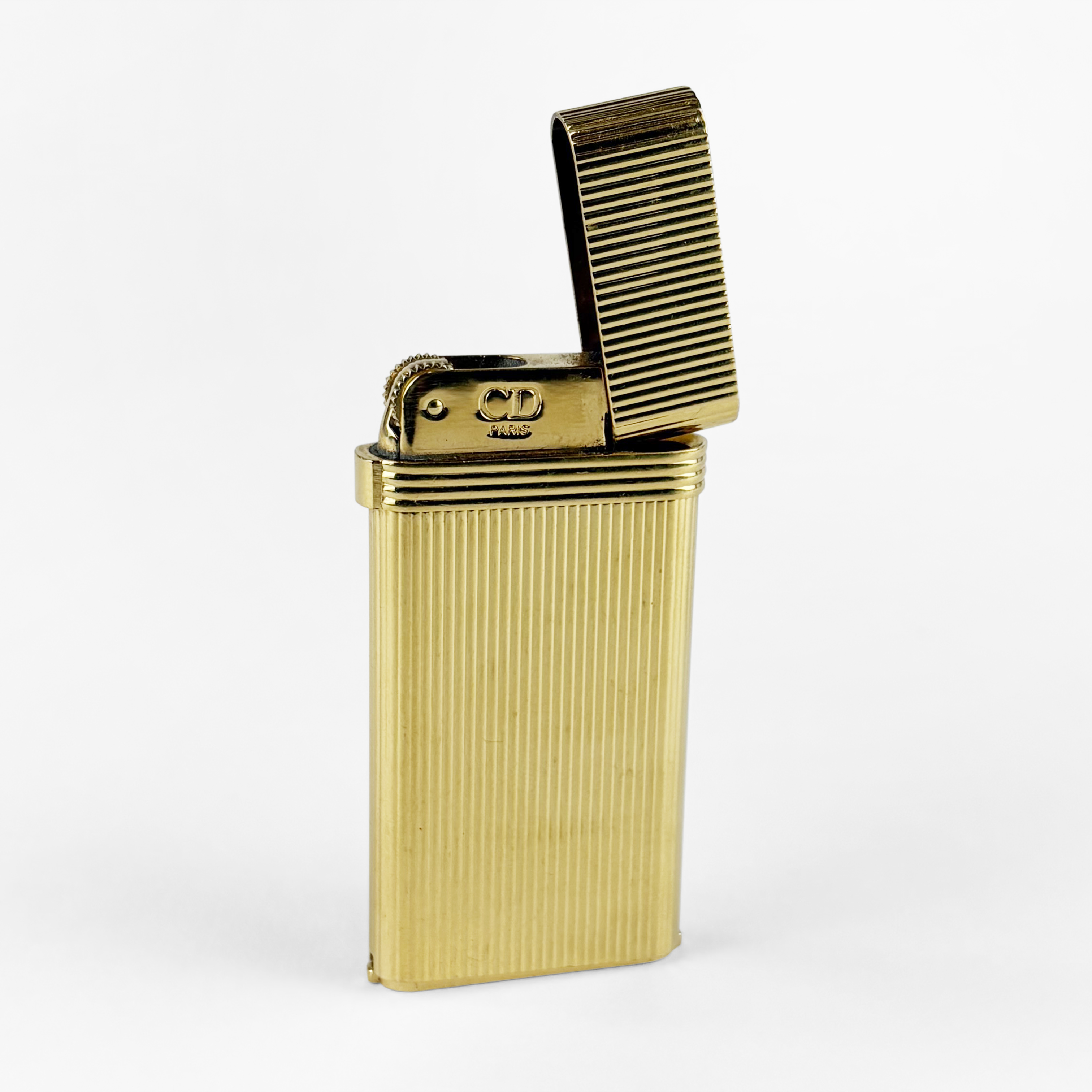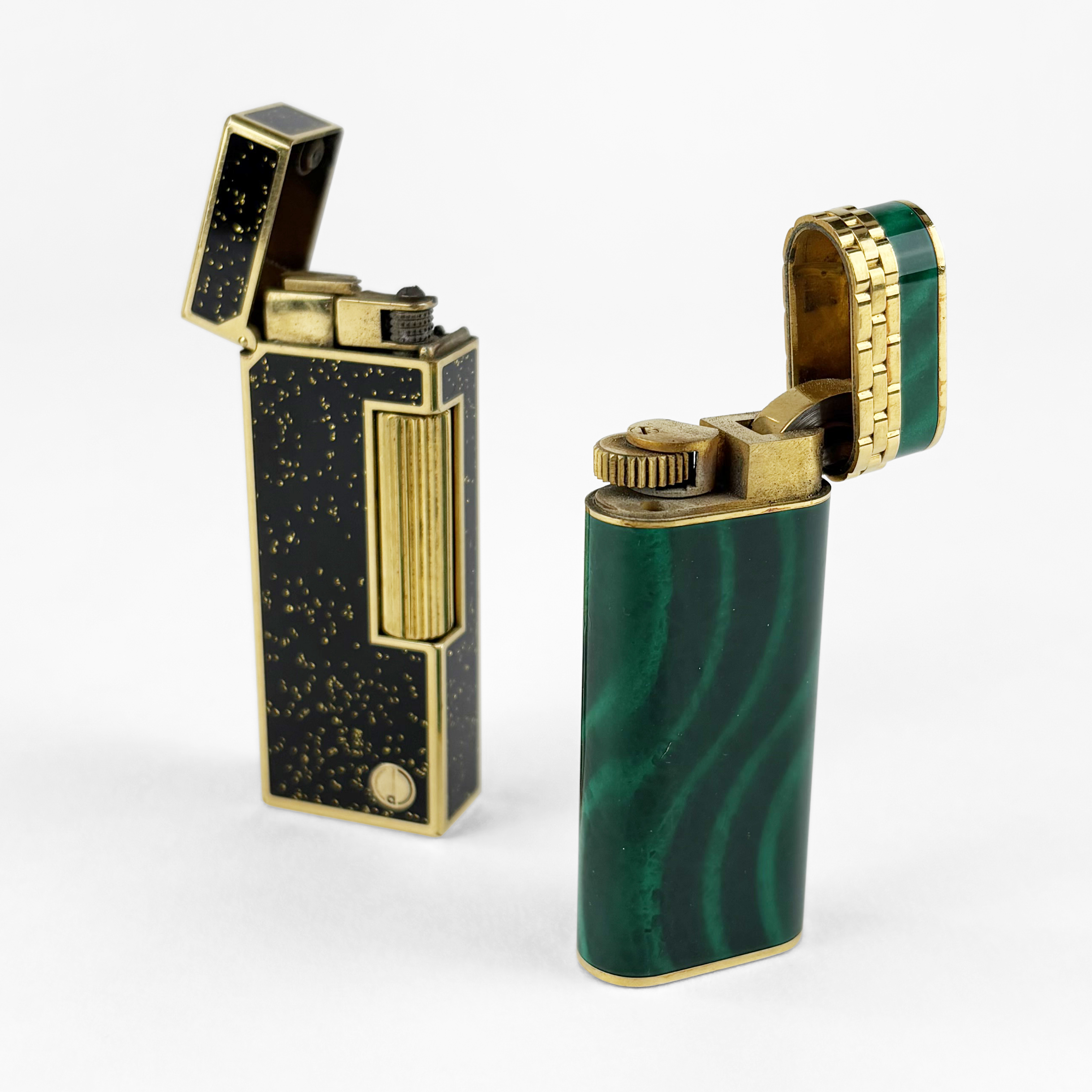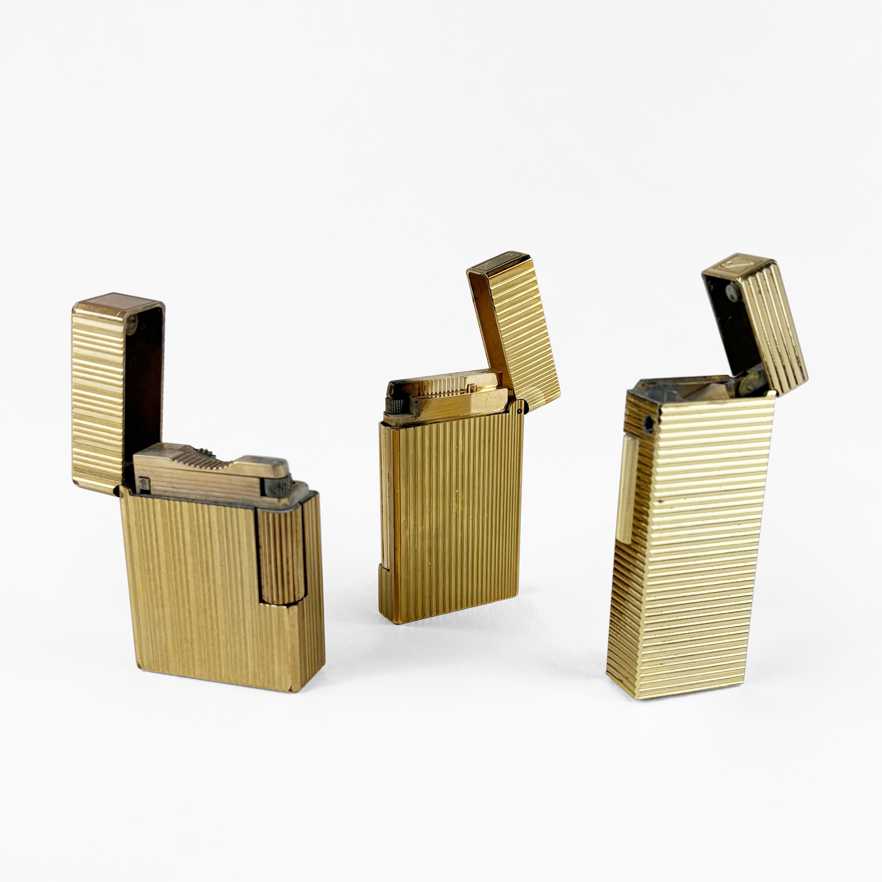 Métal plaqué or, H 4,5 et 5,5 cm. On joint un briquet Zénith en...