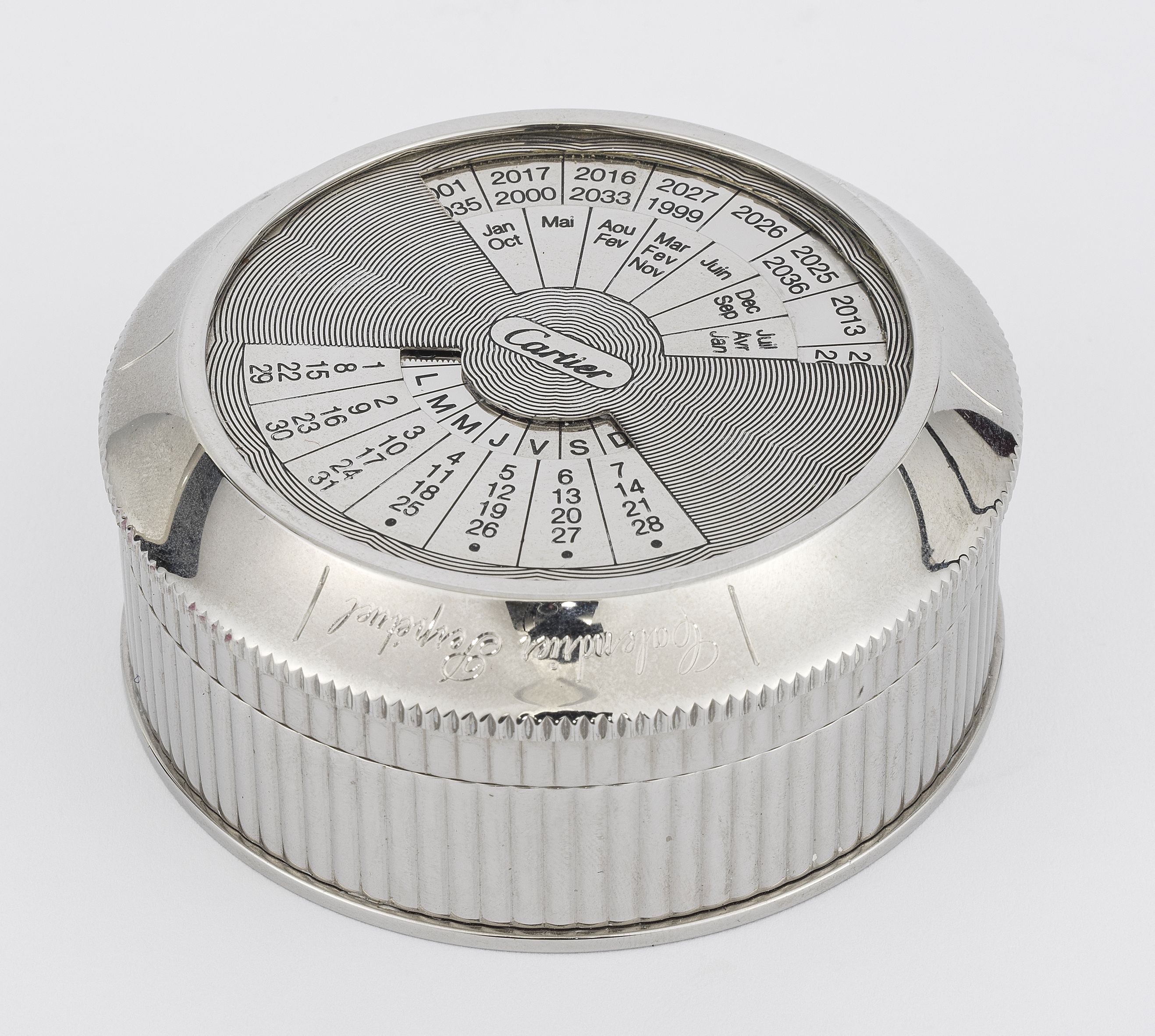 Boîte ronde en métal à mécanisme manuel, n° 022/150, D 8 cm, H 3...