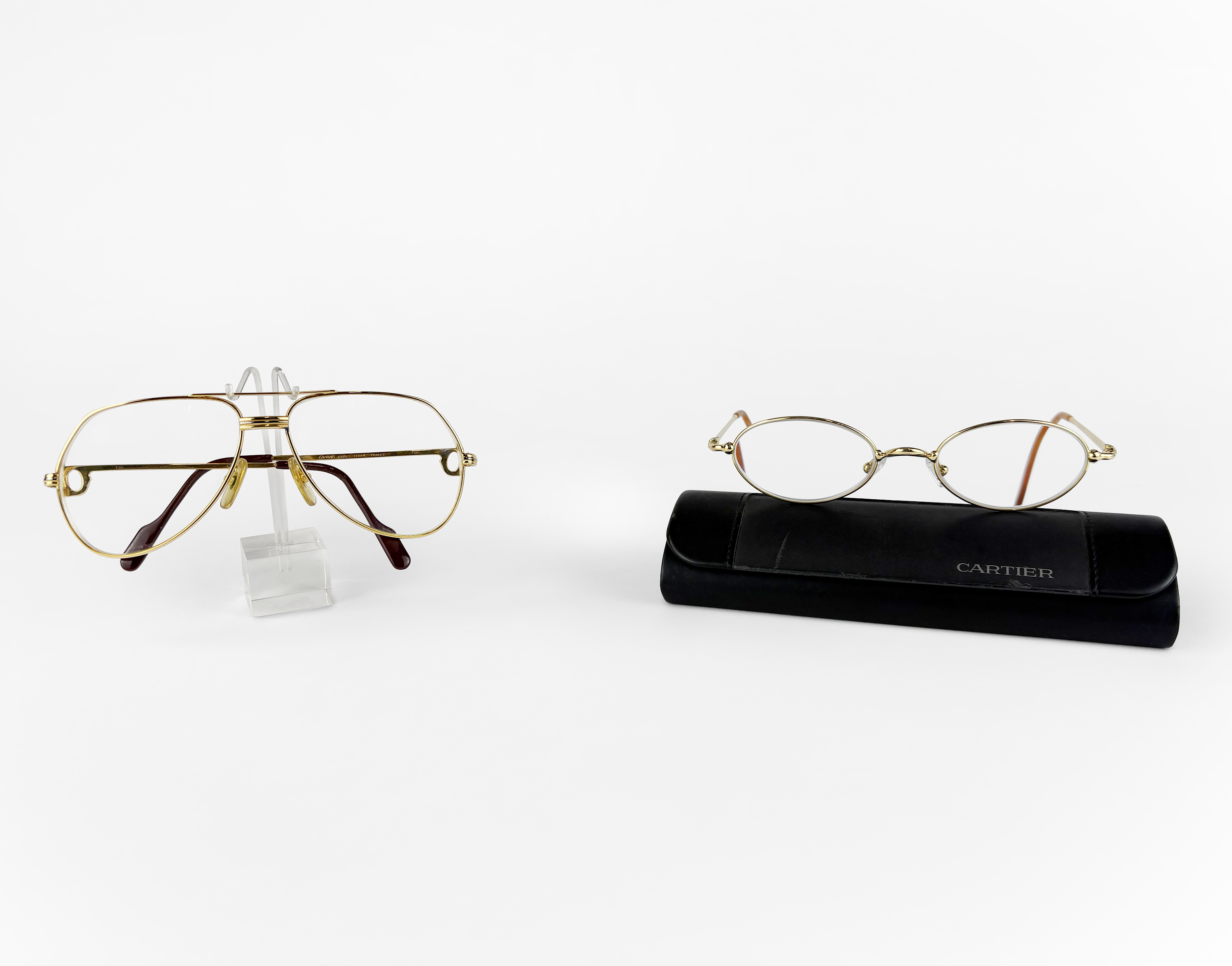 L'une ronde, l'autre rectangulaire, cadrans noirs, aiguilles et...