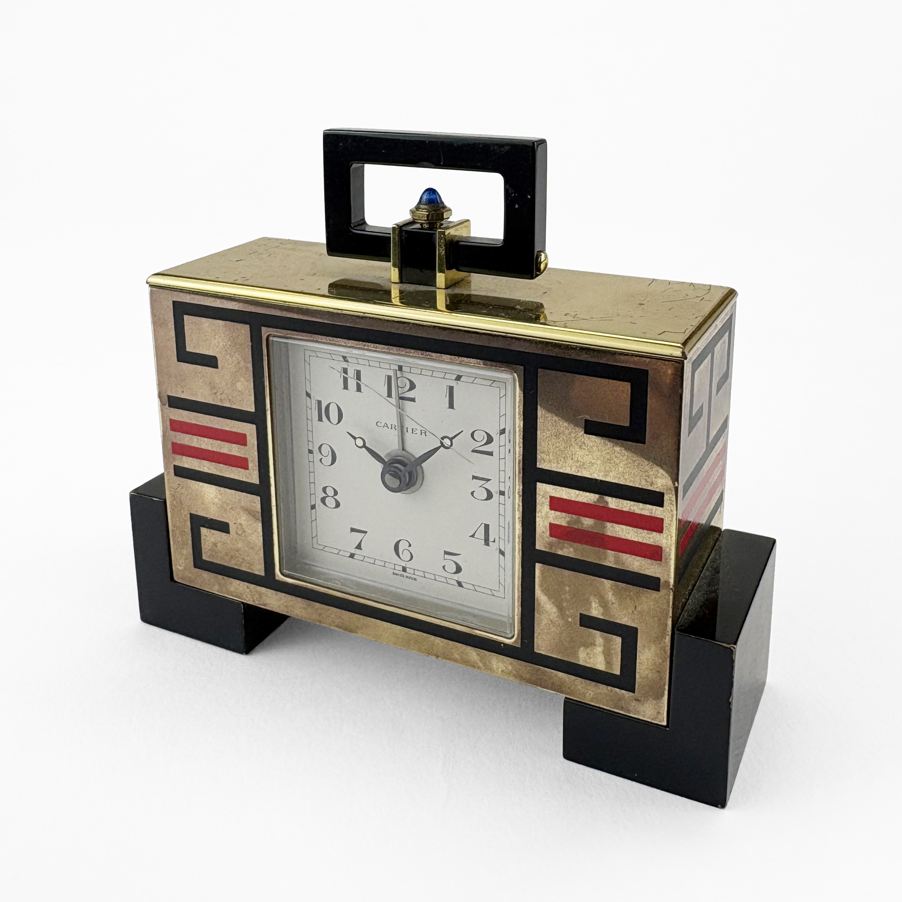 Décor émaillé rouge et noir, cadran beige, chiffres arabes et ai...