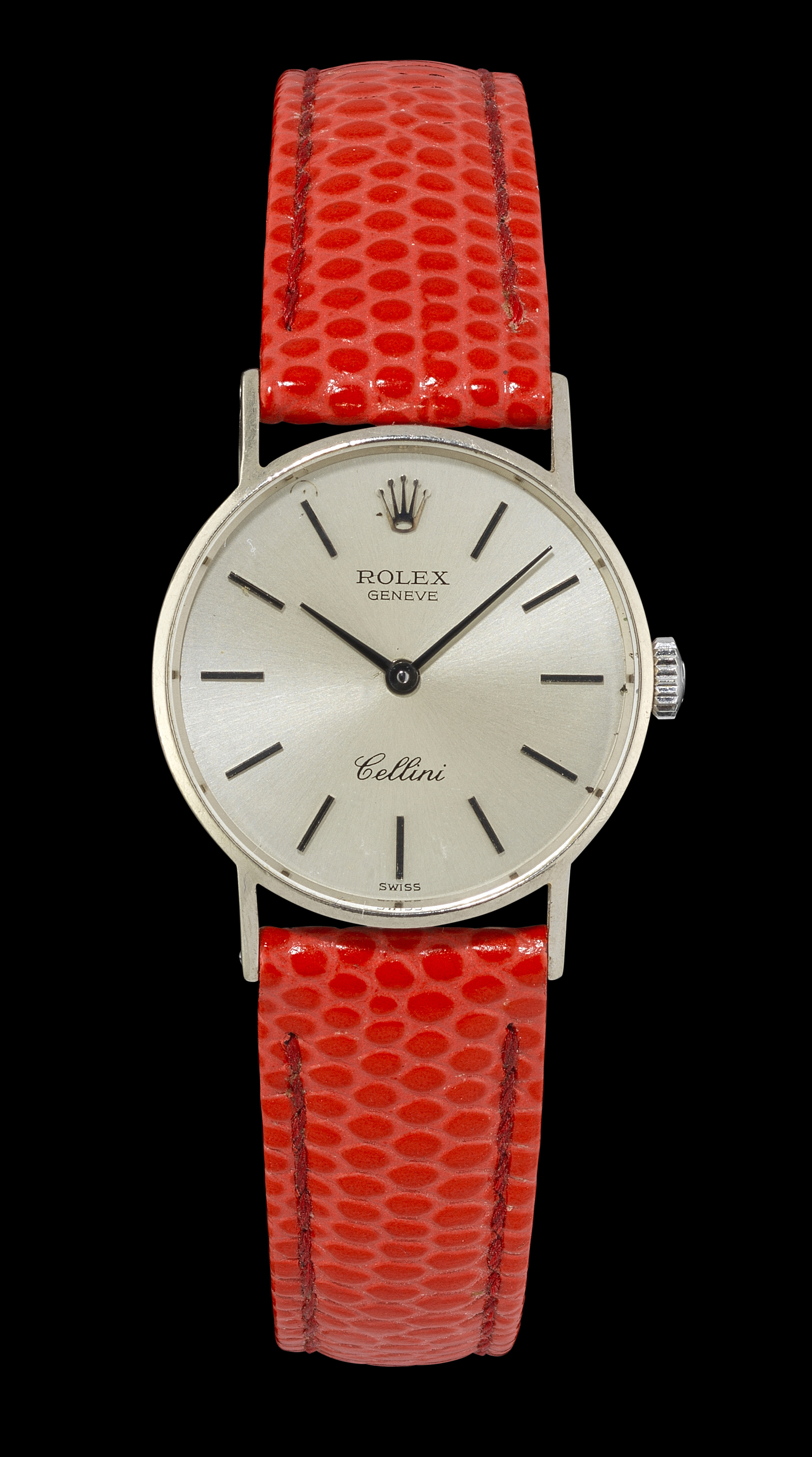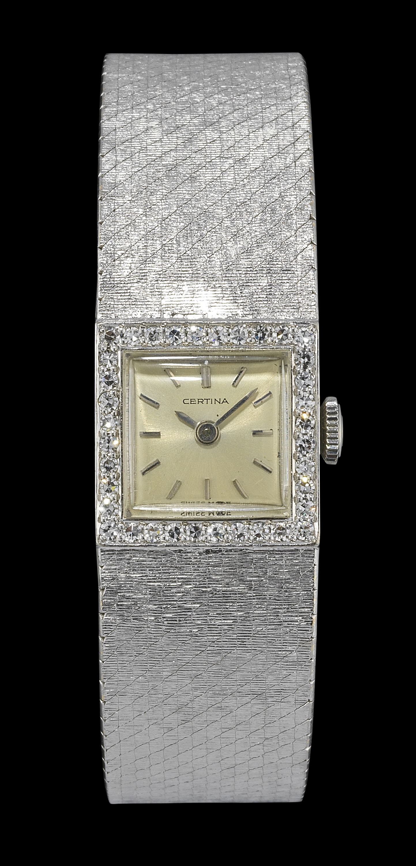 Cadran argenté, aiguilles noires, or gris 750, D 28 mm, poids br...