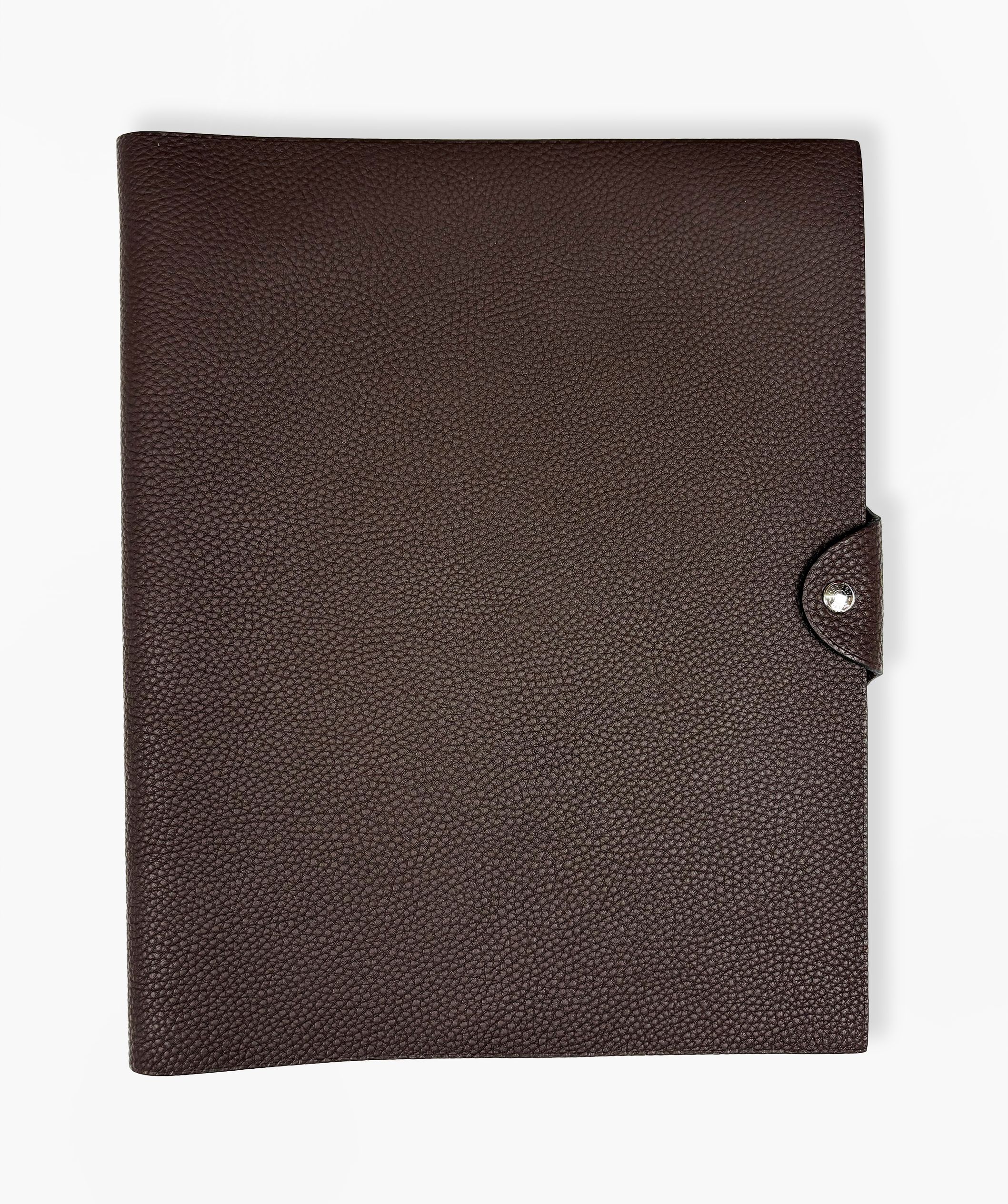 Couverture en cuir marron, papier texturé, 30x24,5 cm