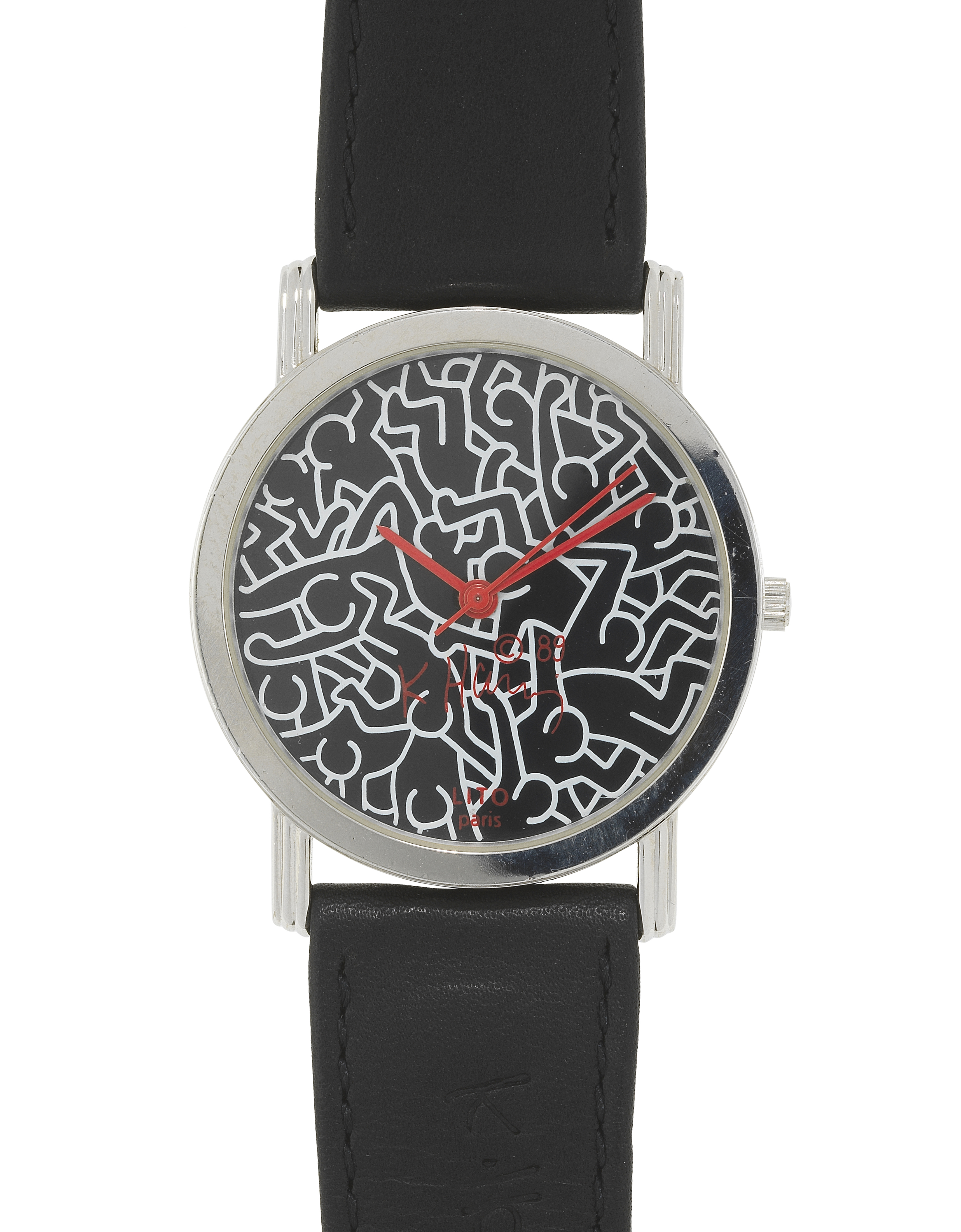 Cadran noir, aiguilles et index bâtons argentés, fond transparen...