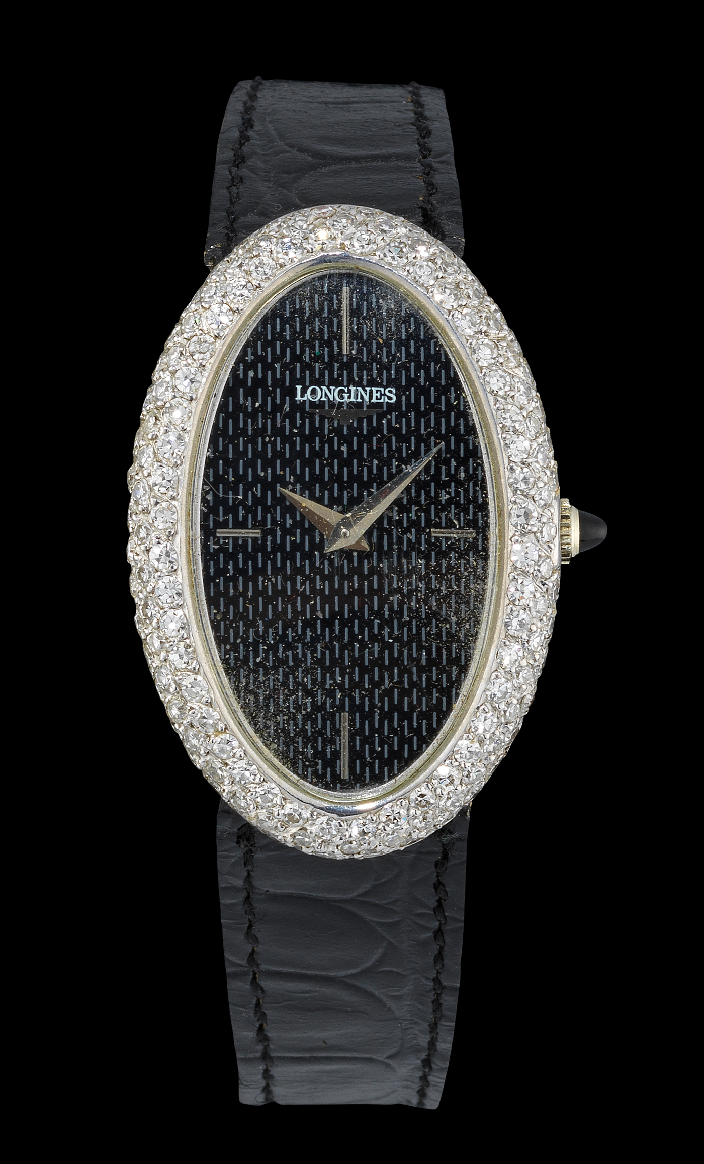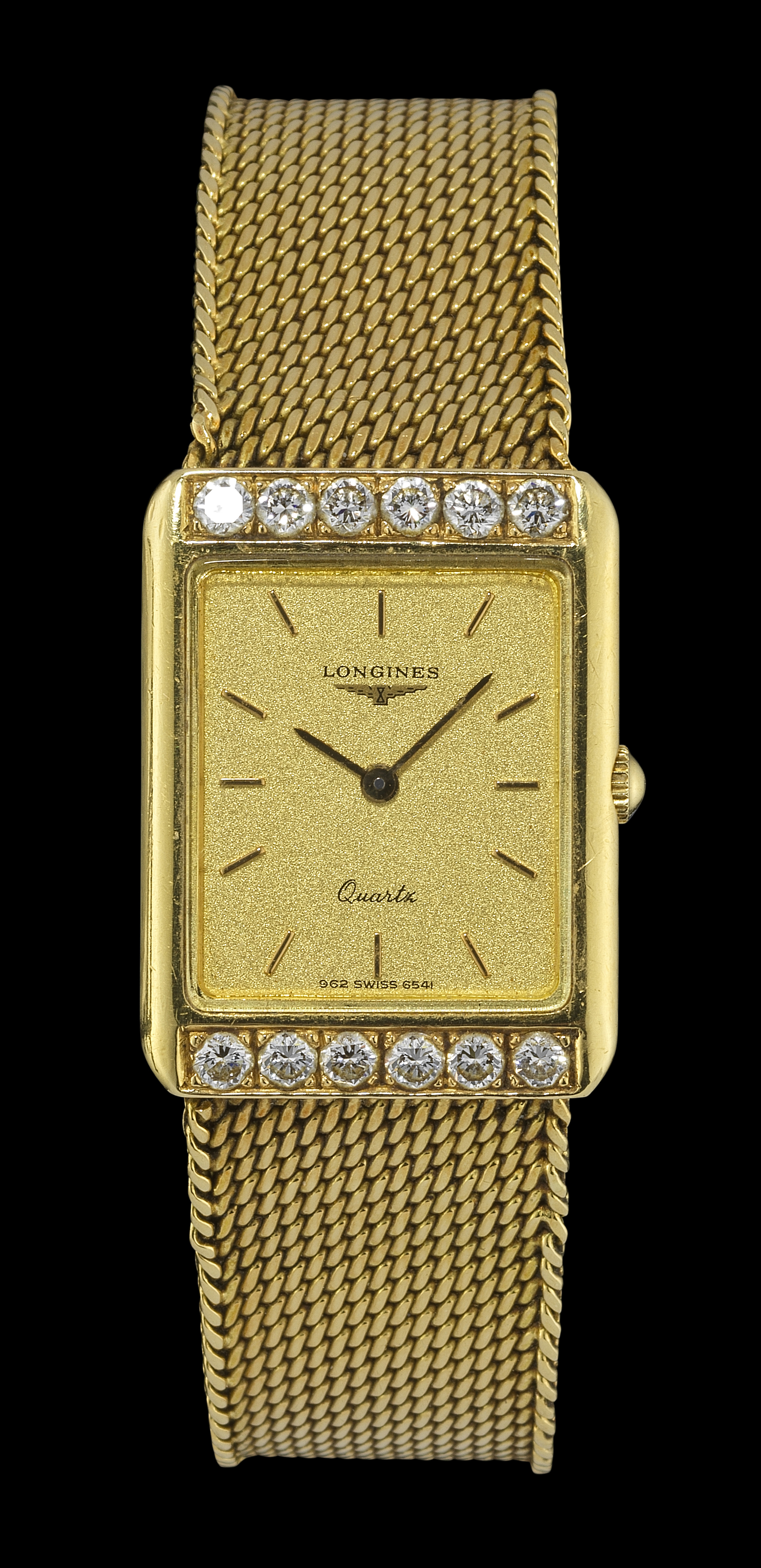 4796. Longines, montre-bracelet rectangulaire à quartz sertie de diama...