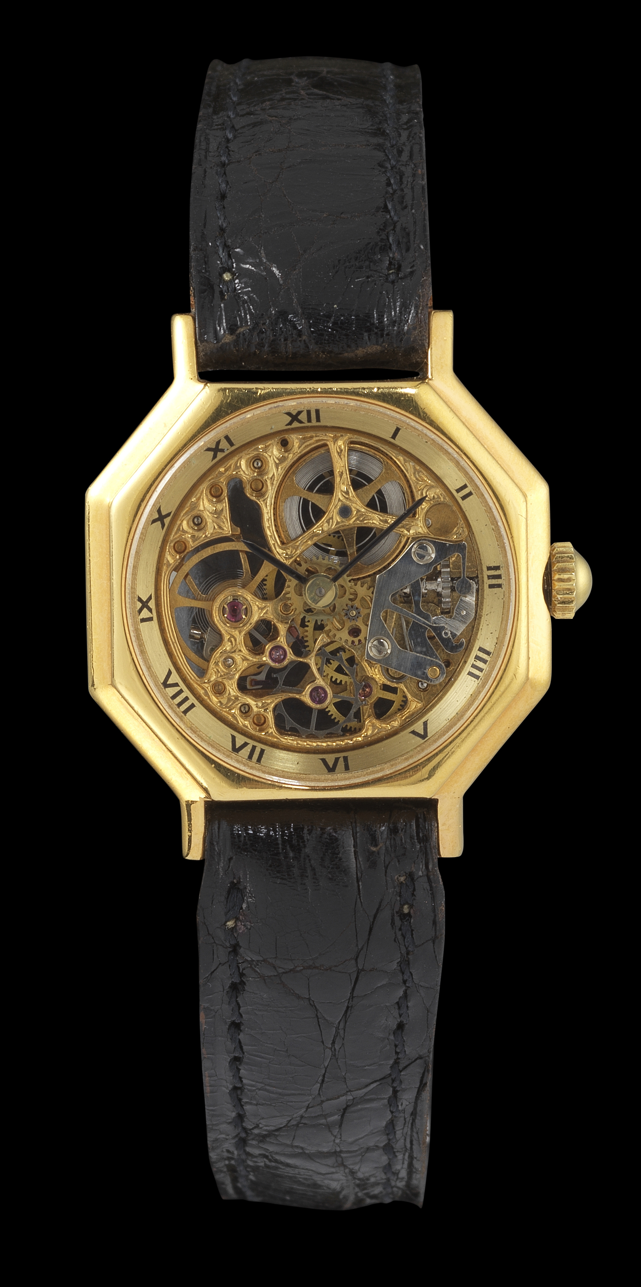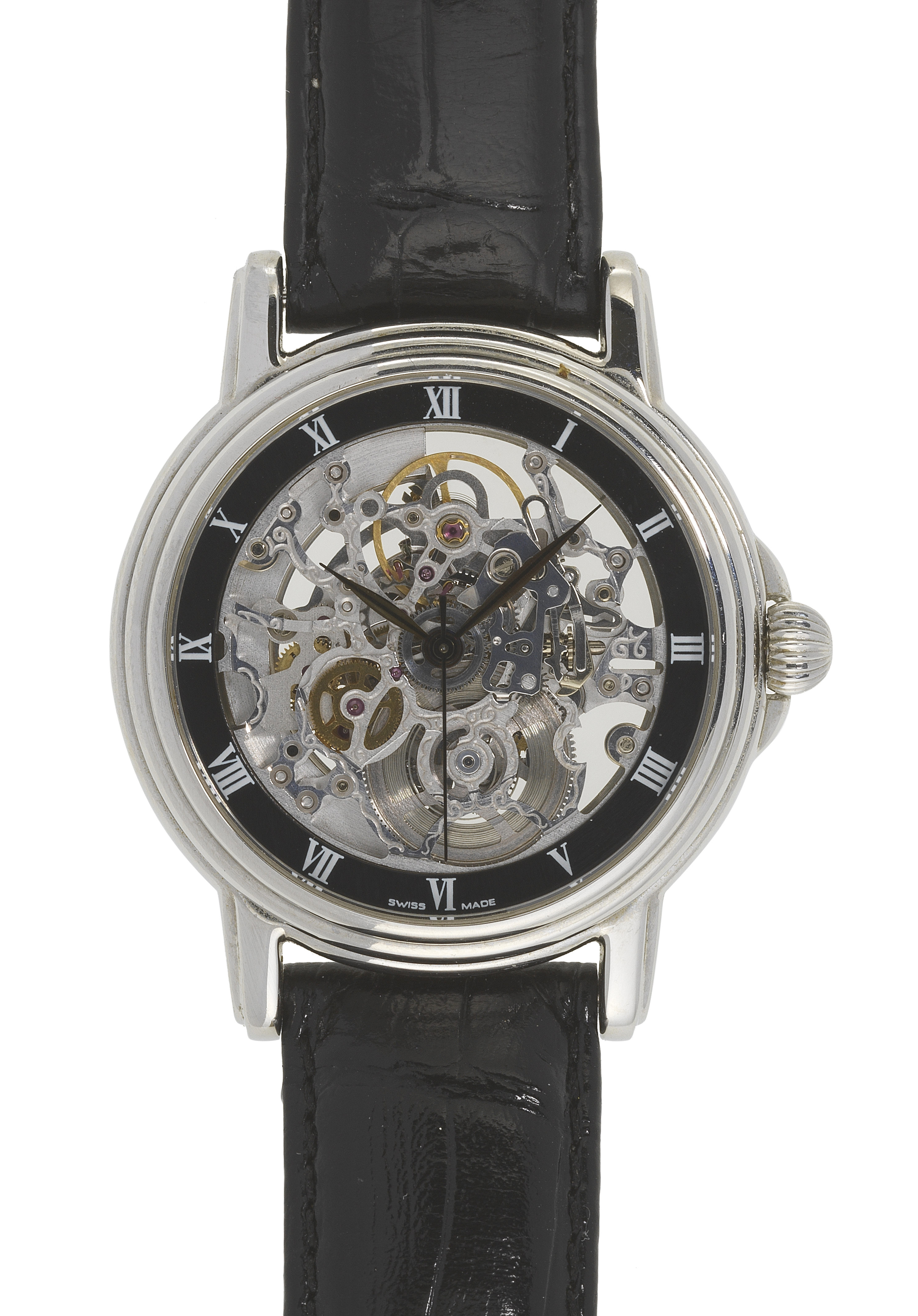 Cadran squelette, aiguilles et chiffres romains noirs, or 750, 2...
