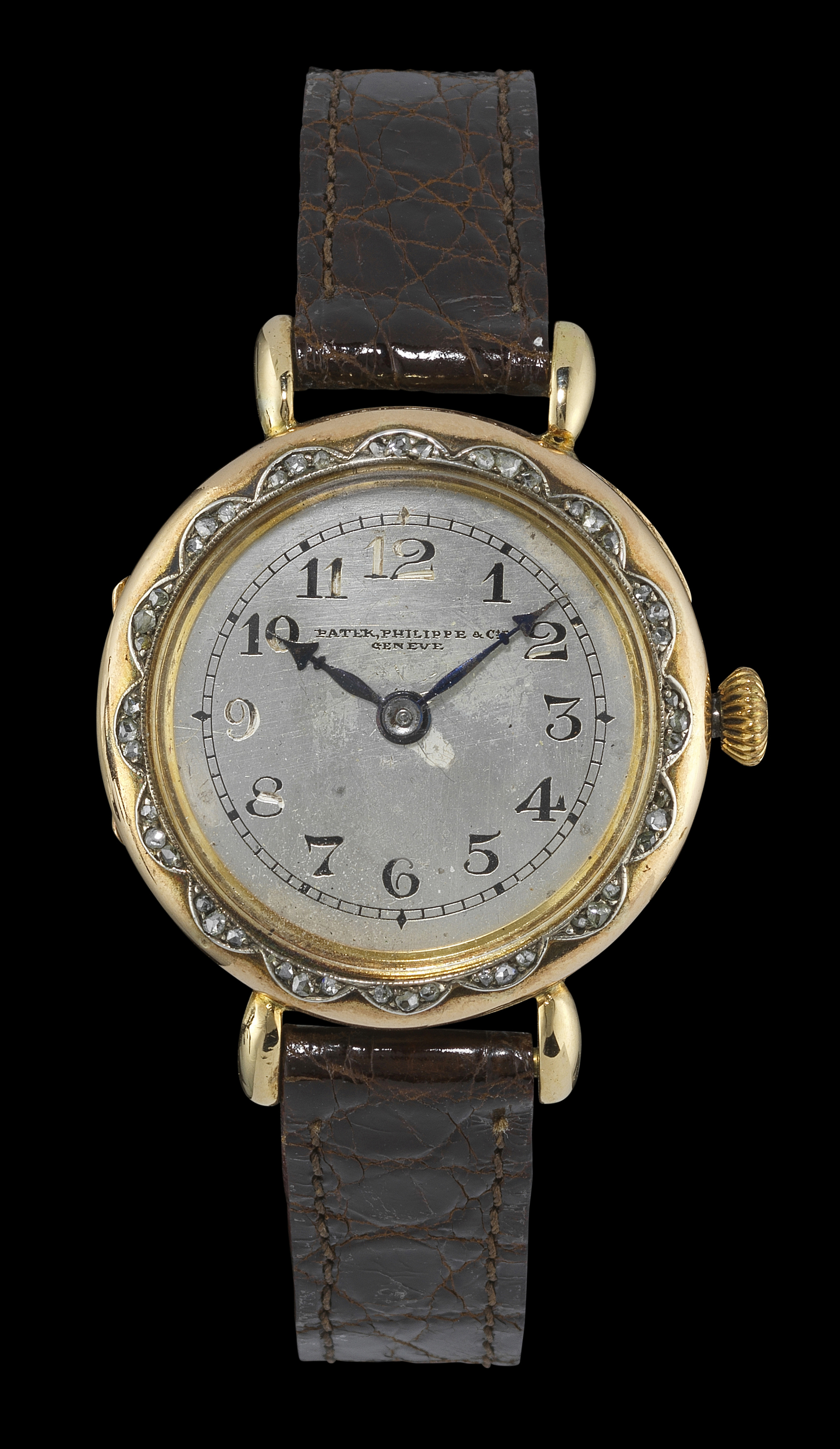 Cadran marron, aiguilles dorées et argentées, index bâton diaman...