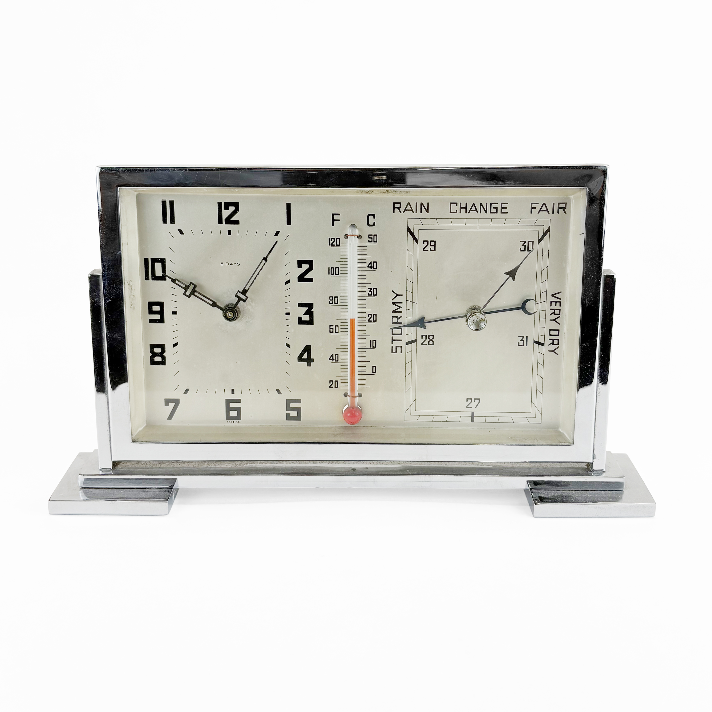 Cadran argenté, thermomètre au centre, métal chromé, L 22 cm, H...