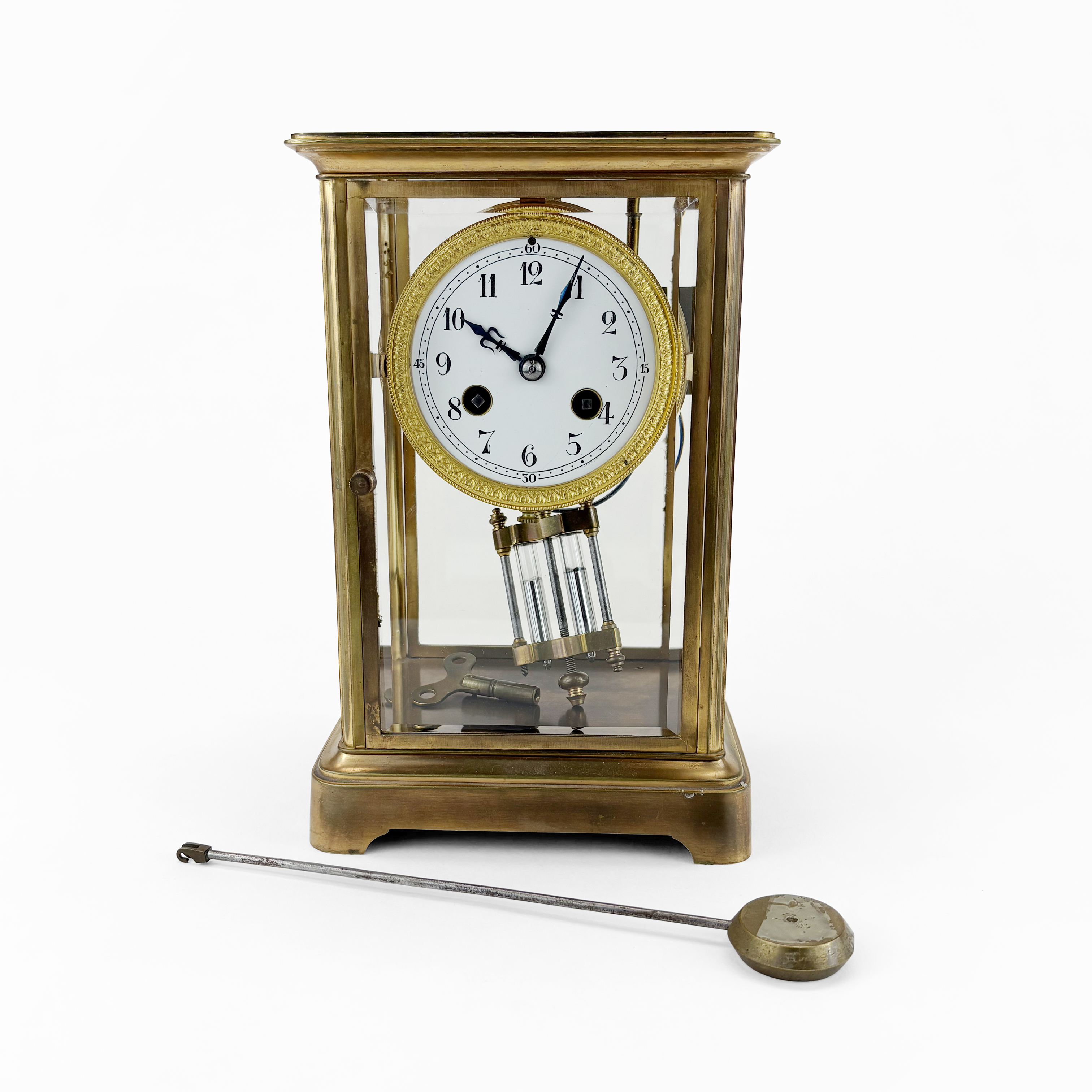 Cadran émaillé blanc, aiguilles bleuies, laiton doré, H 22 cm