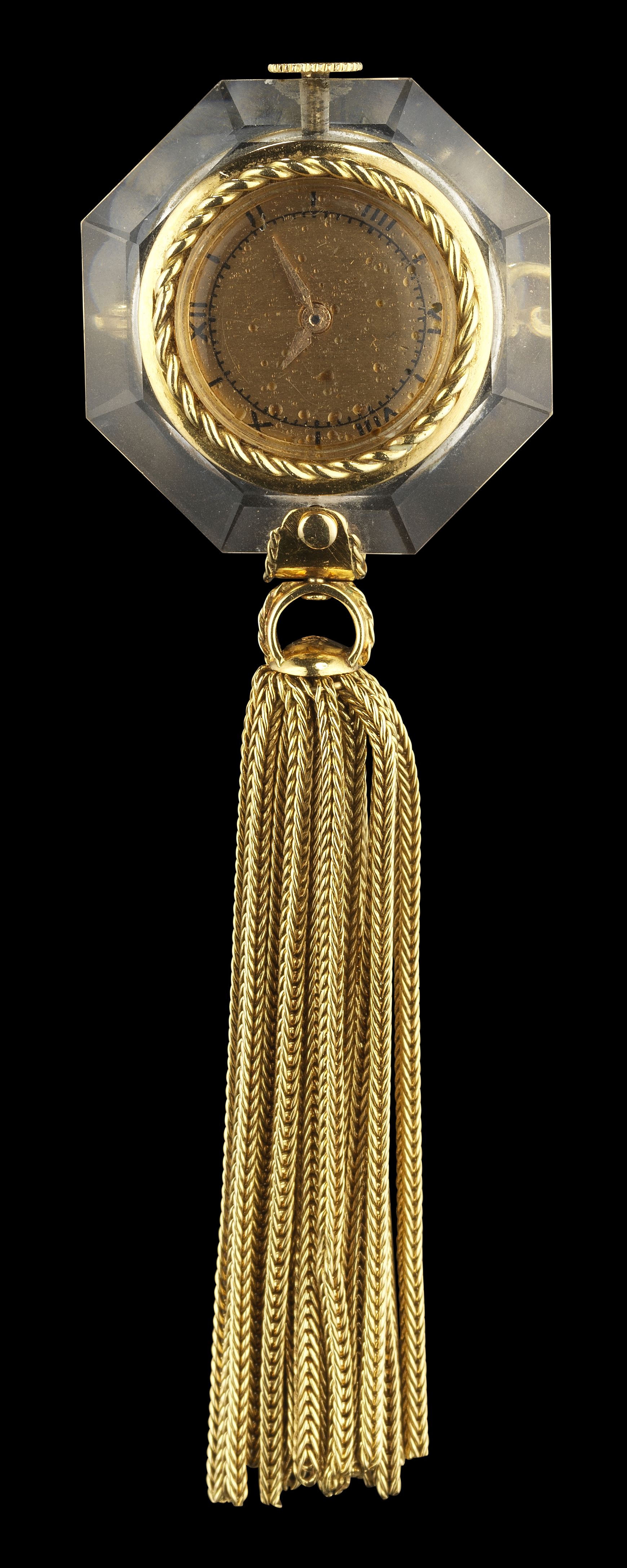 4802. Sterlé, montre-régence octogonale en cristal de roche retenant u...