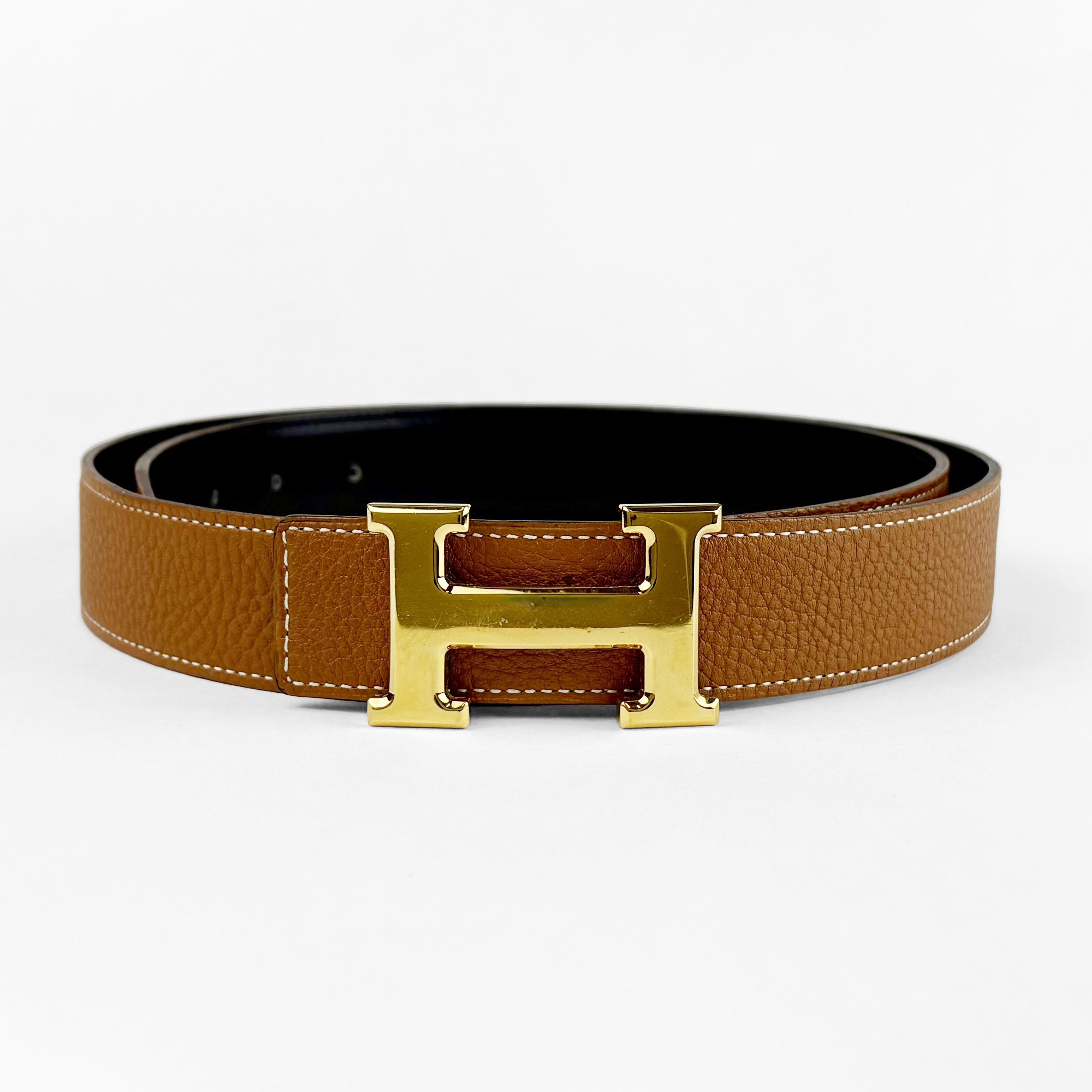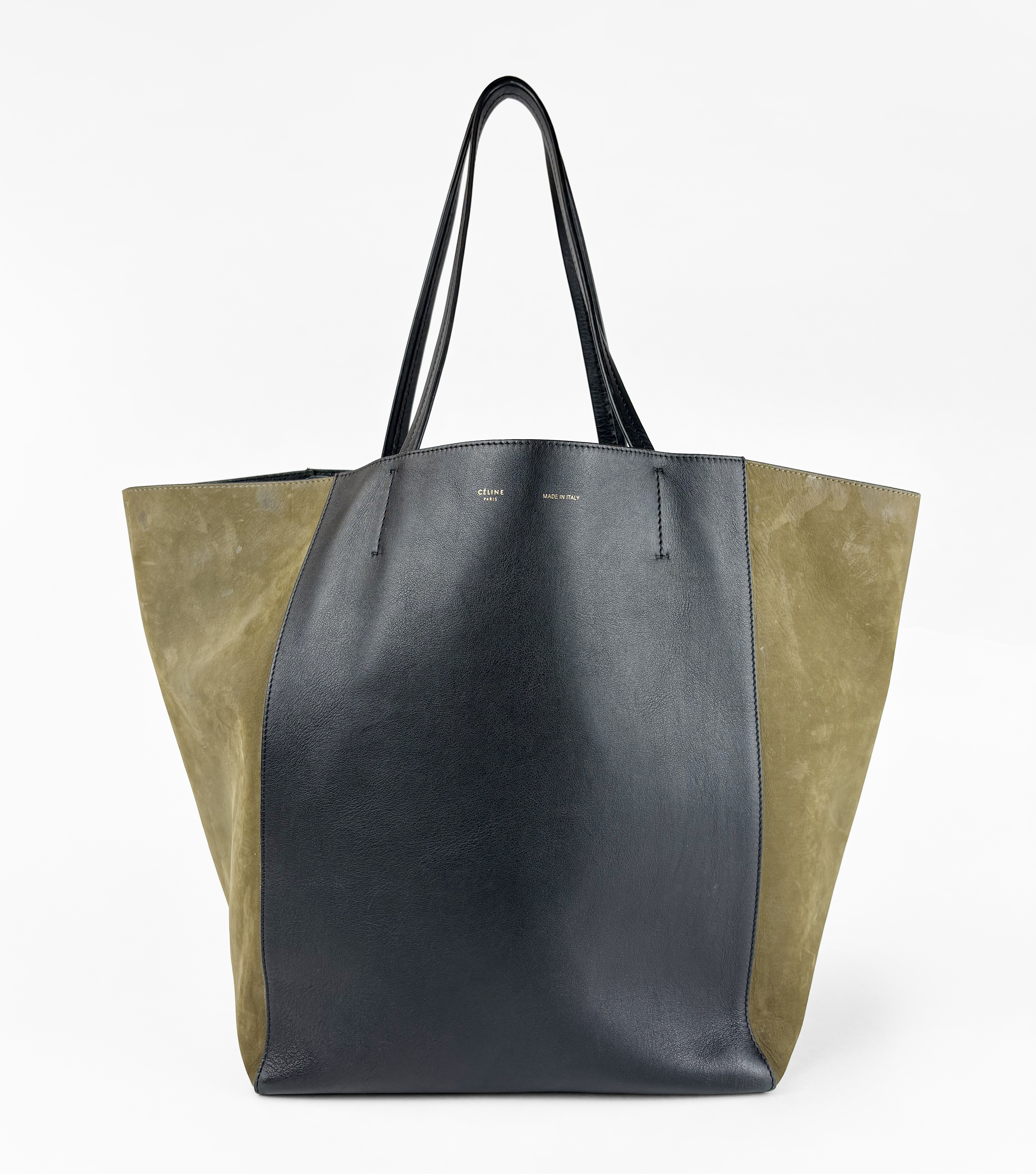 Cuir grainé camel, intérieur en nubuck, 34x30x12 cm