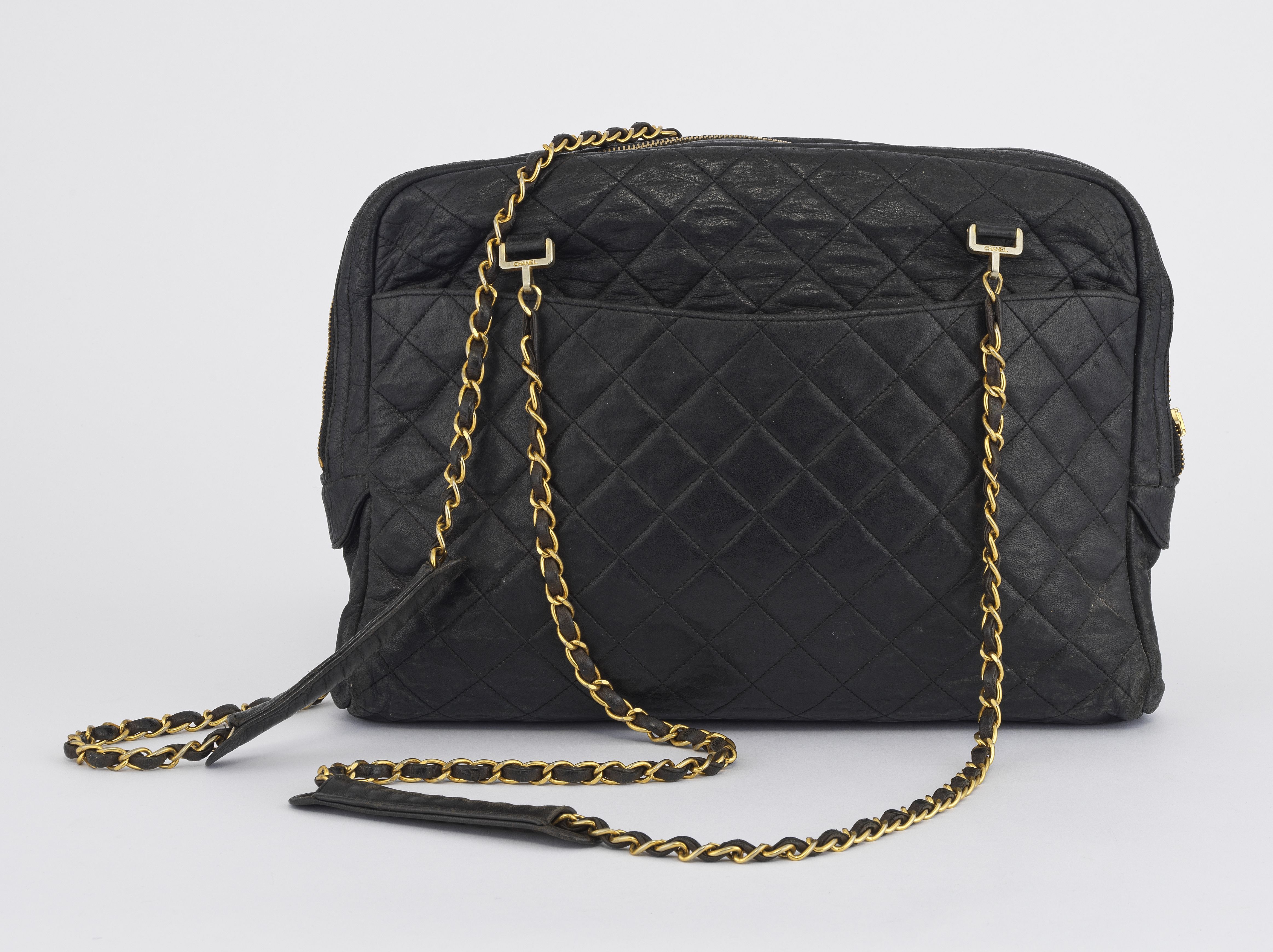 Cuir noir, garnitures en métal doré, anse détachable pour porté...