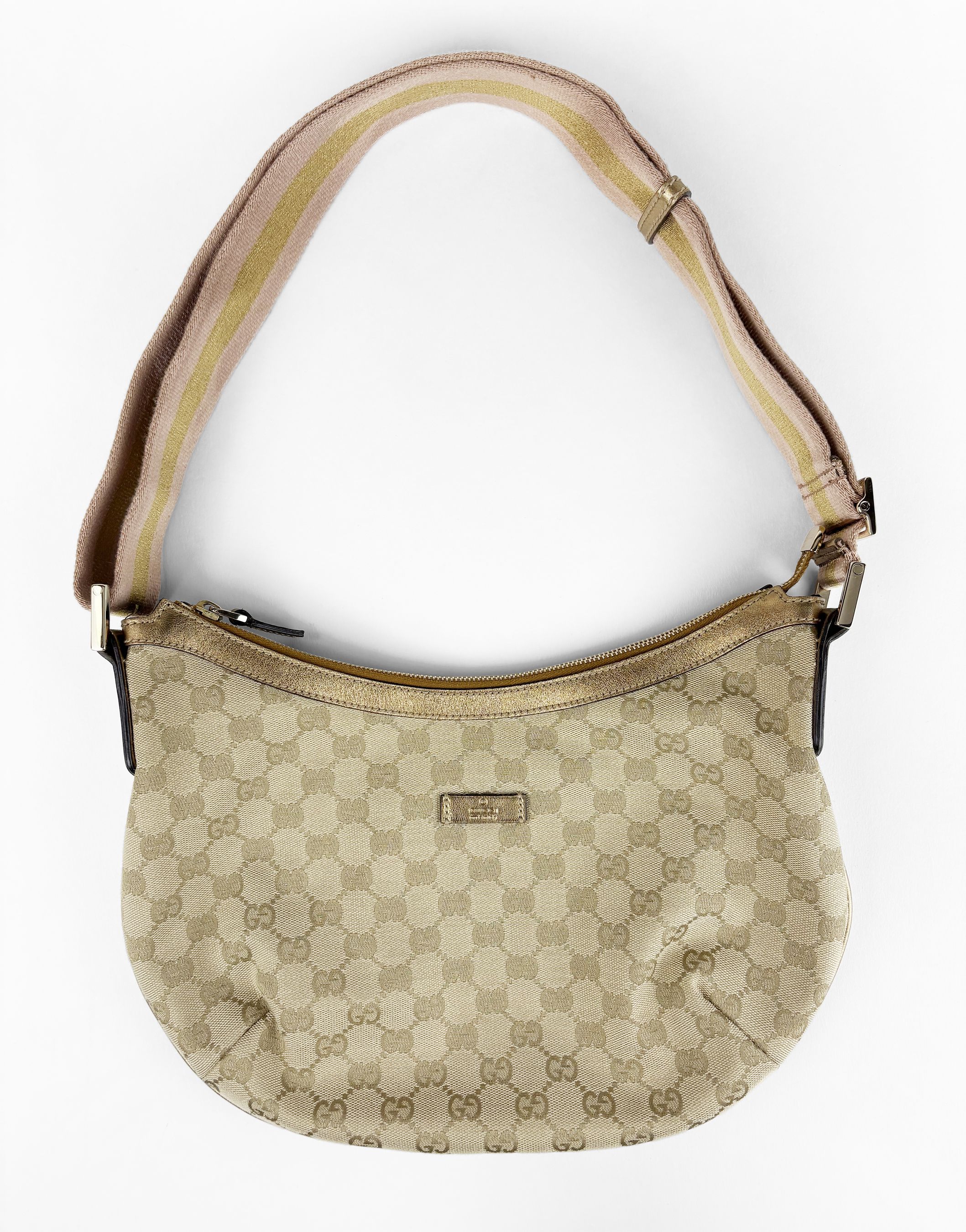 Toile GG dorée, garnitures en cuir et métal doré, 20x34 cm
