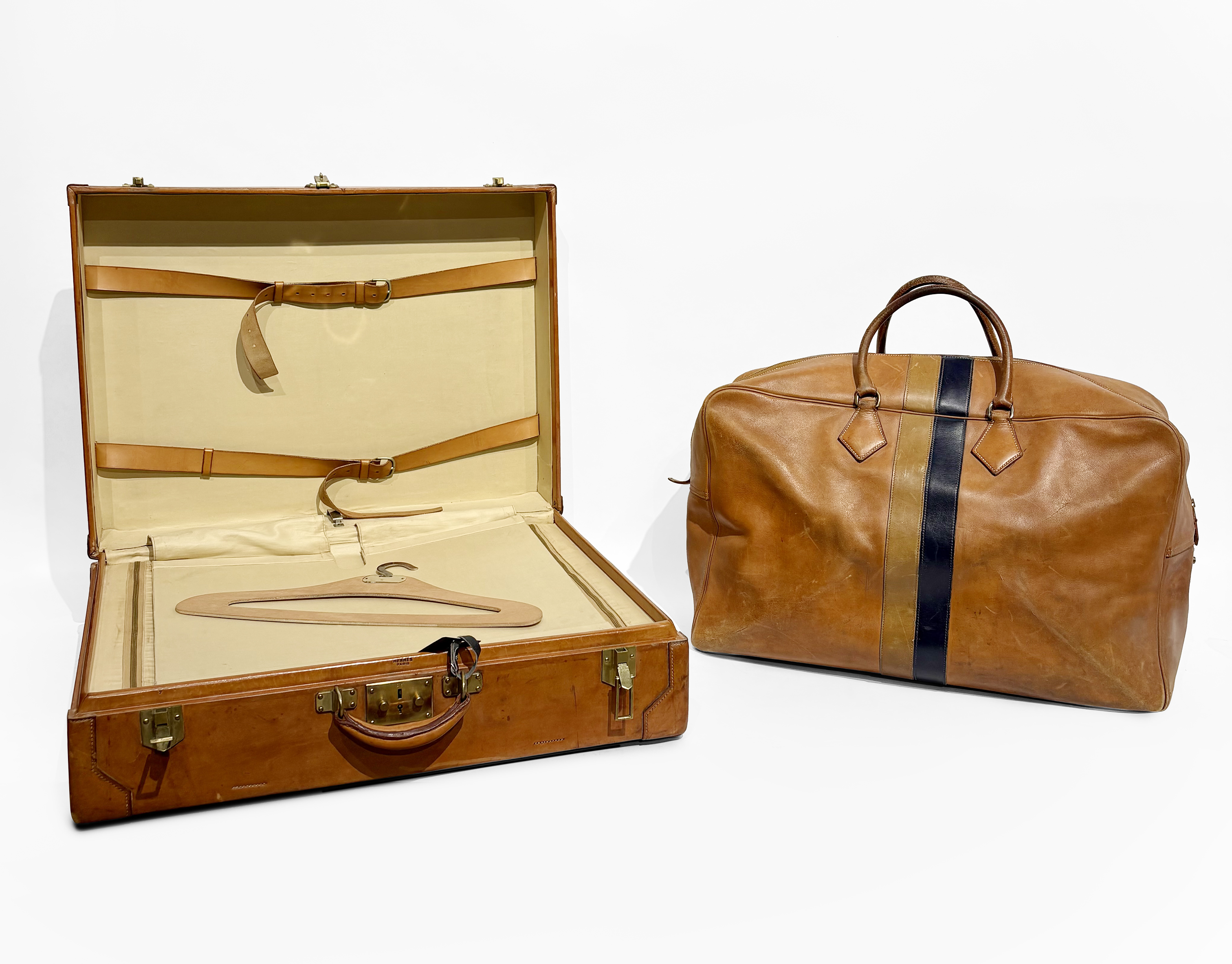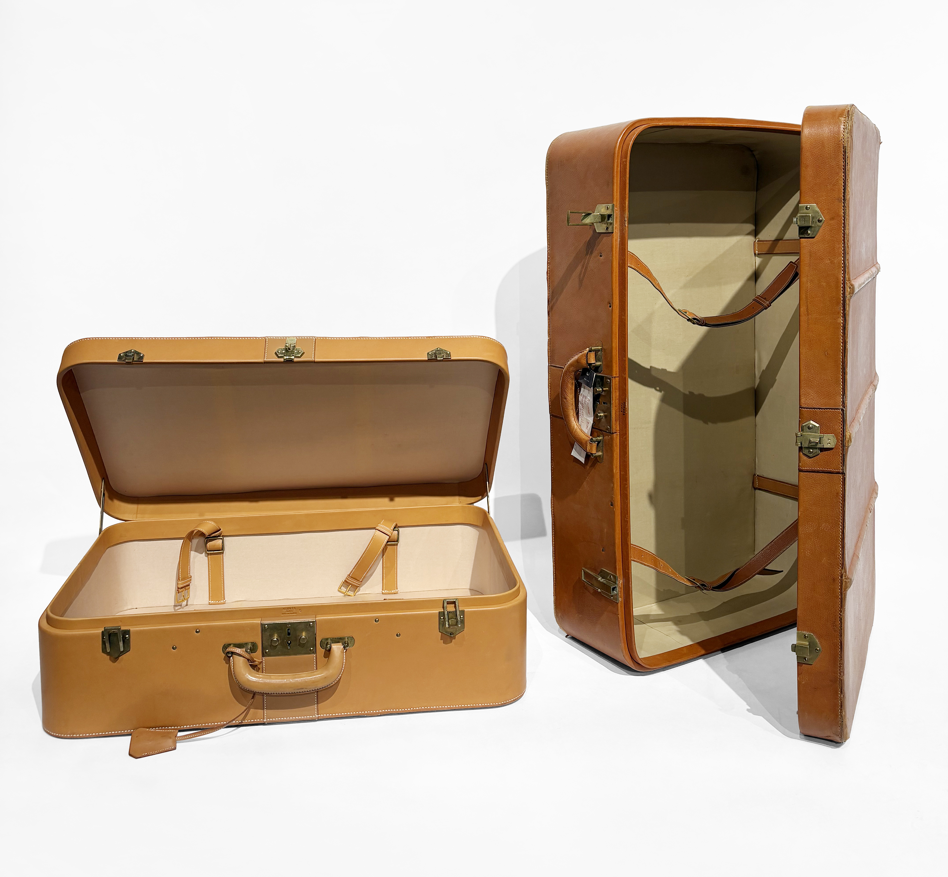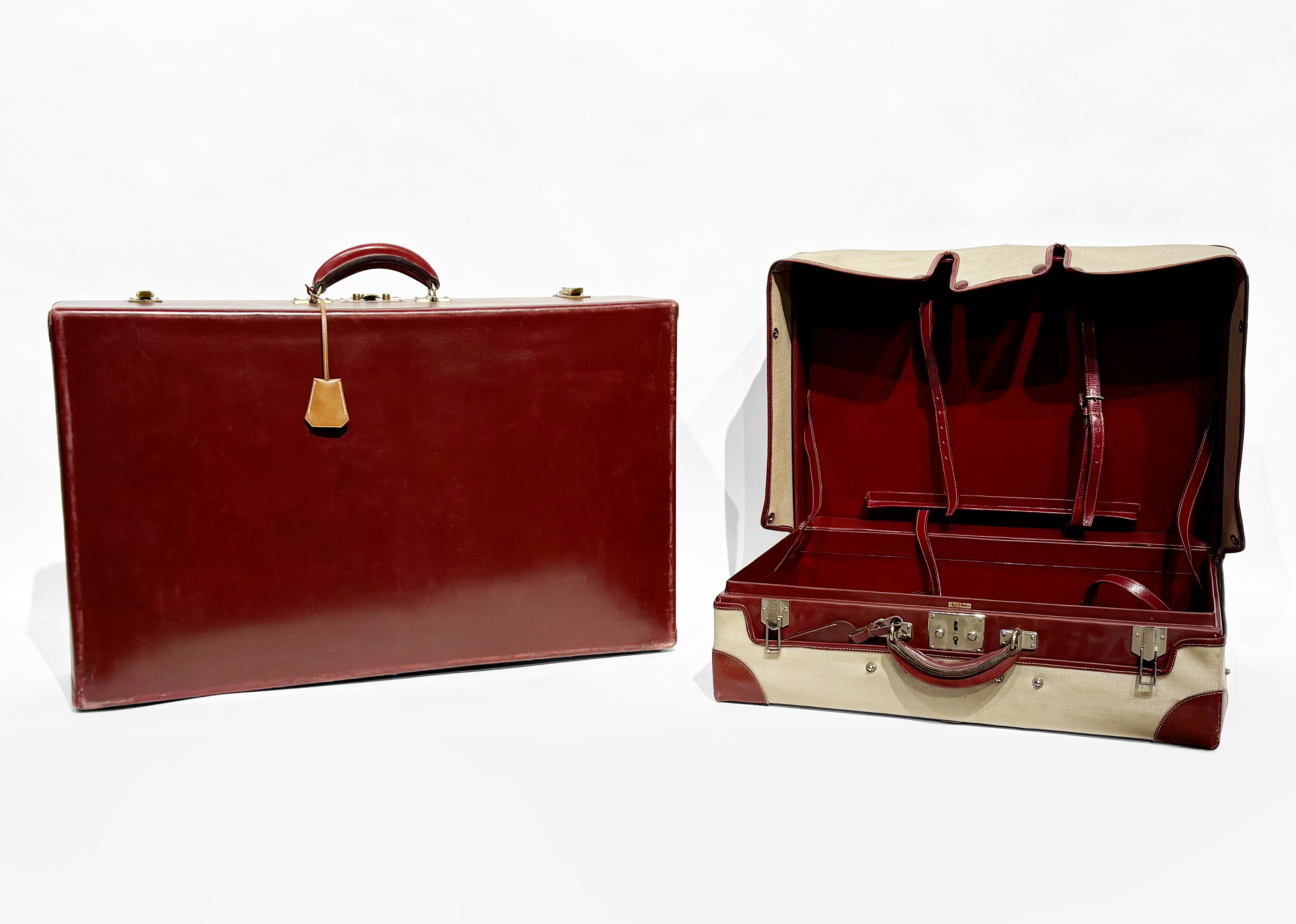 4926. Hermès, deux valises à angles arrondis chiffrées PJR