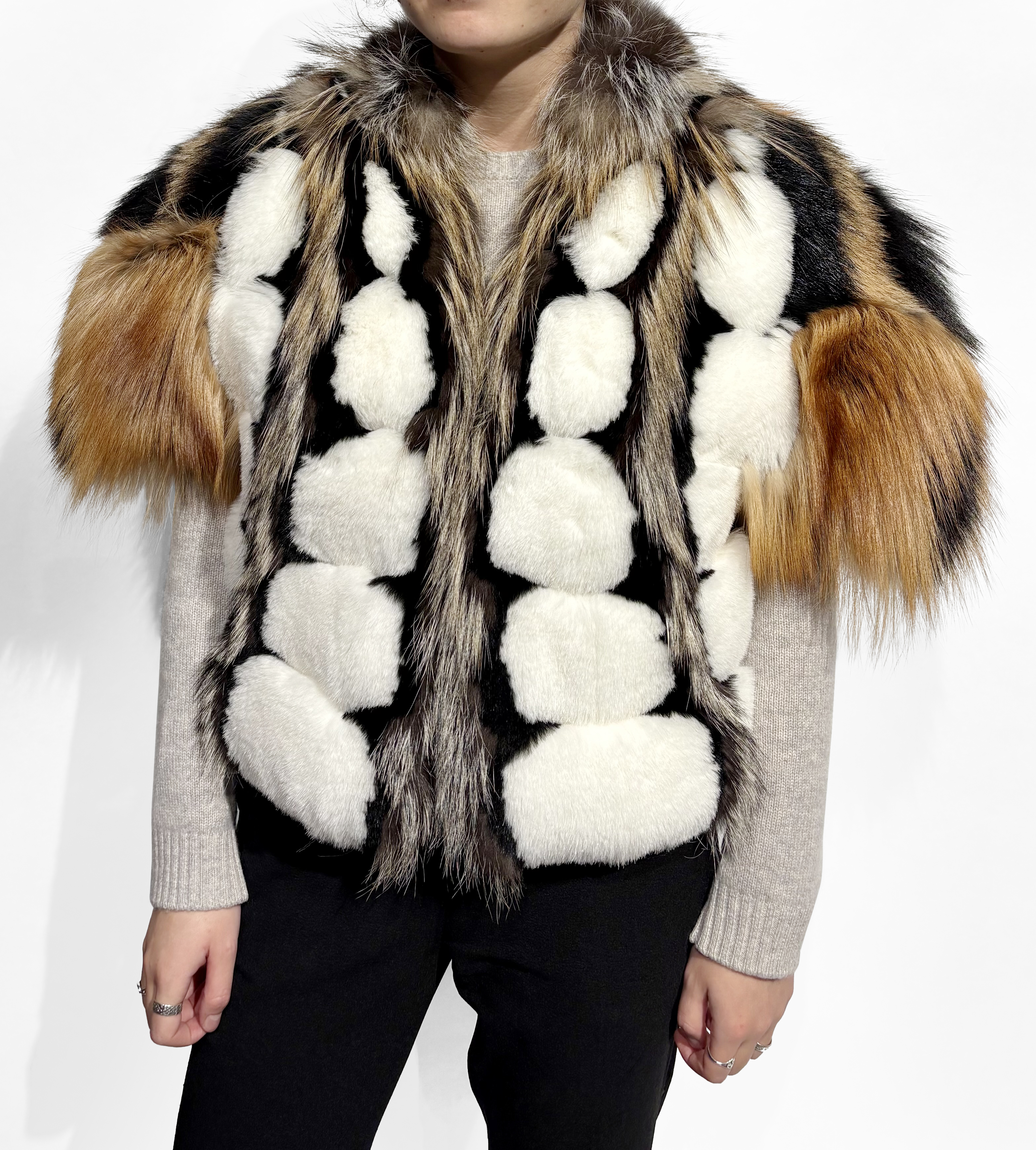 Fourrure de renard, coyote et castor, intérieur en soie noire, m...