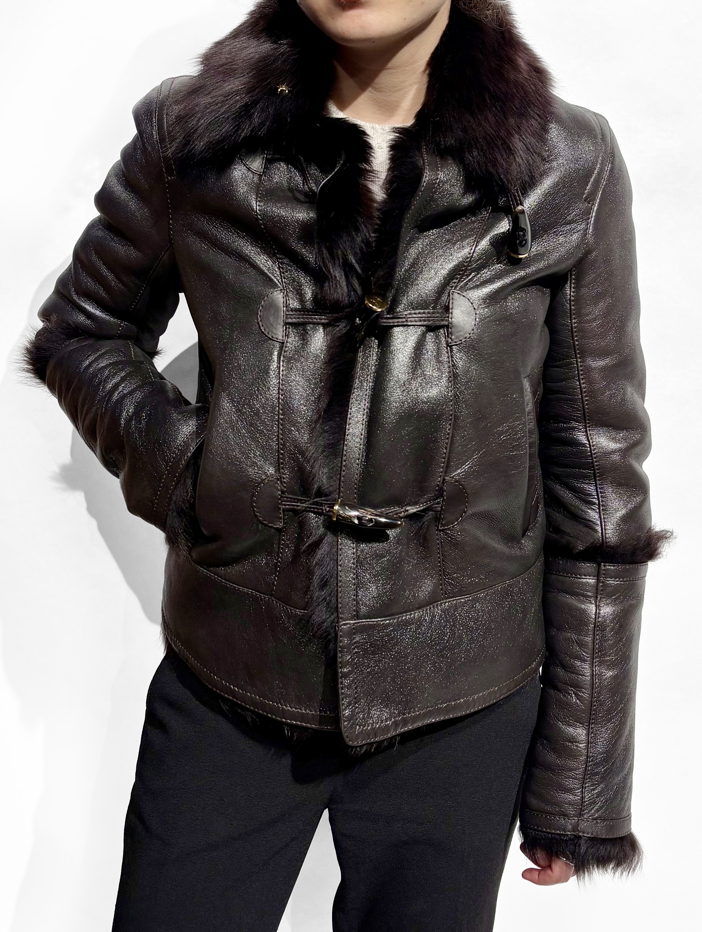 Cuir chocolat, intérieur fourrure, poches latérales, boutons à b...