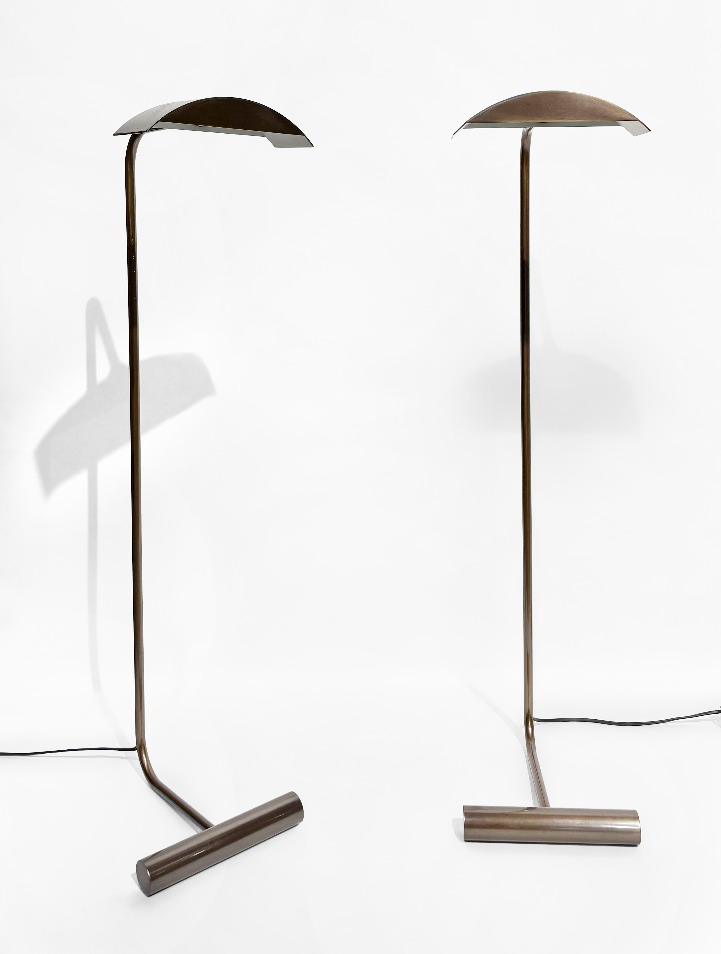 Lampe de parquet moderniste, laiton brossé patiné, 114x20x43 cm