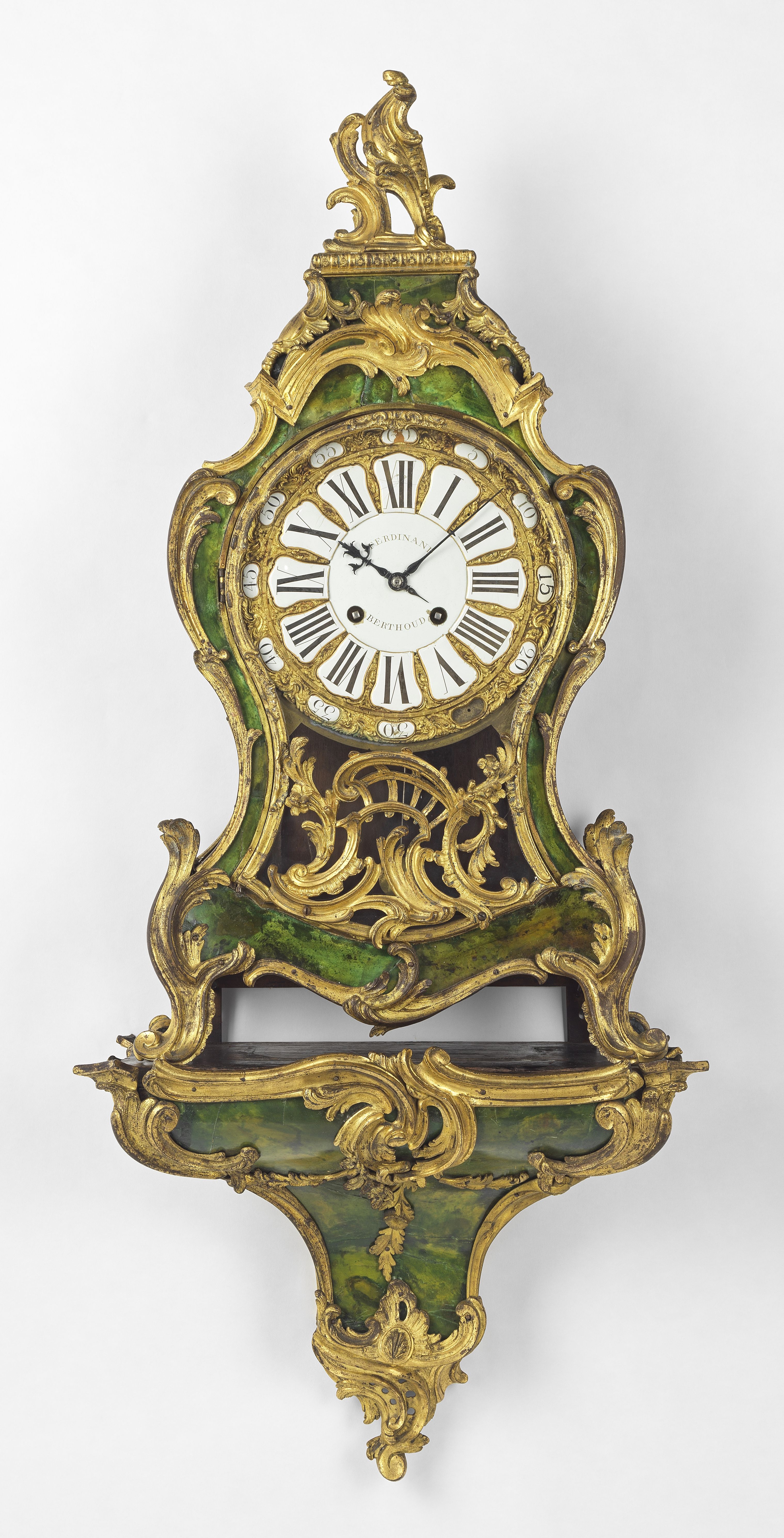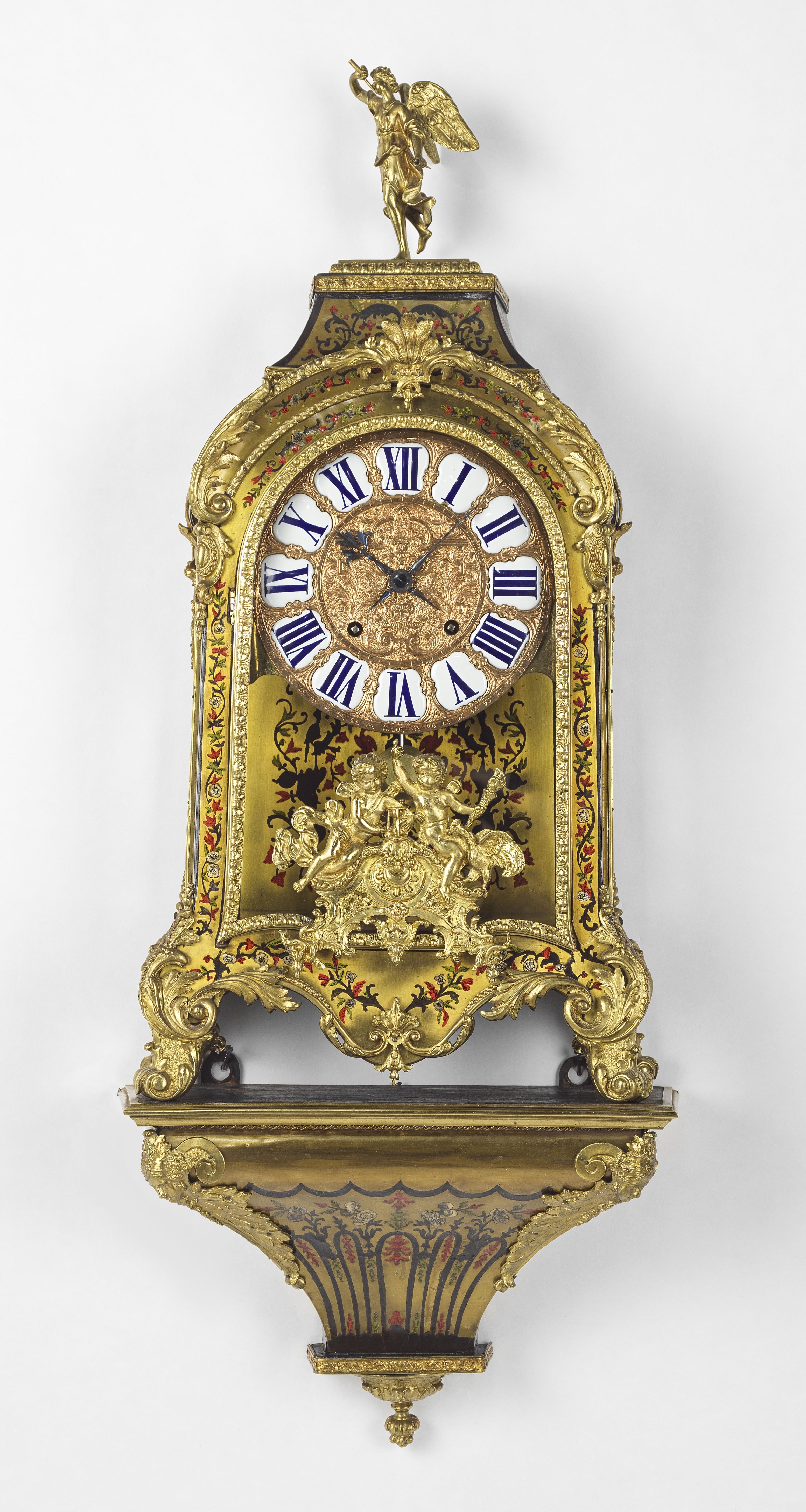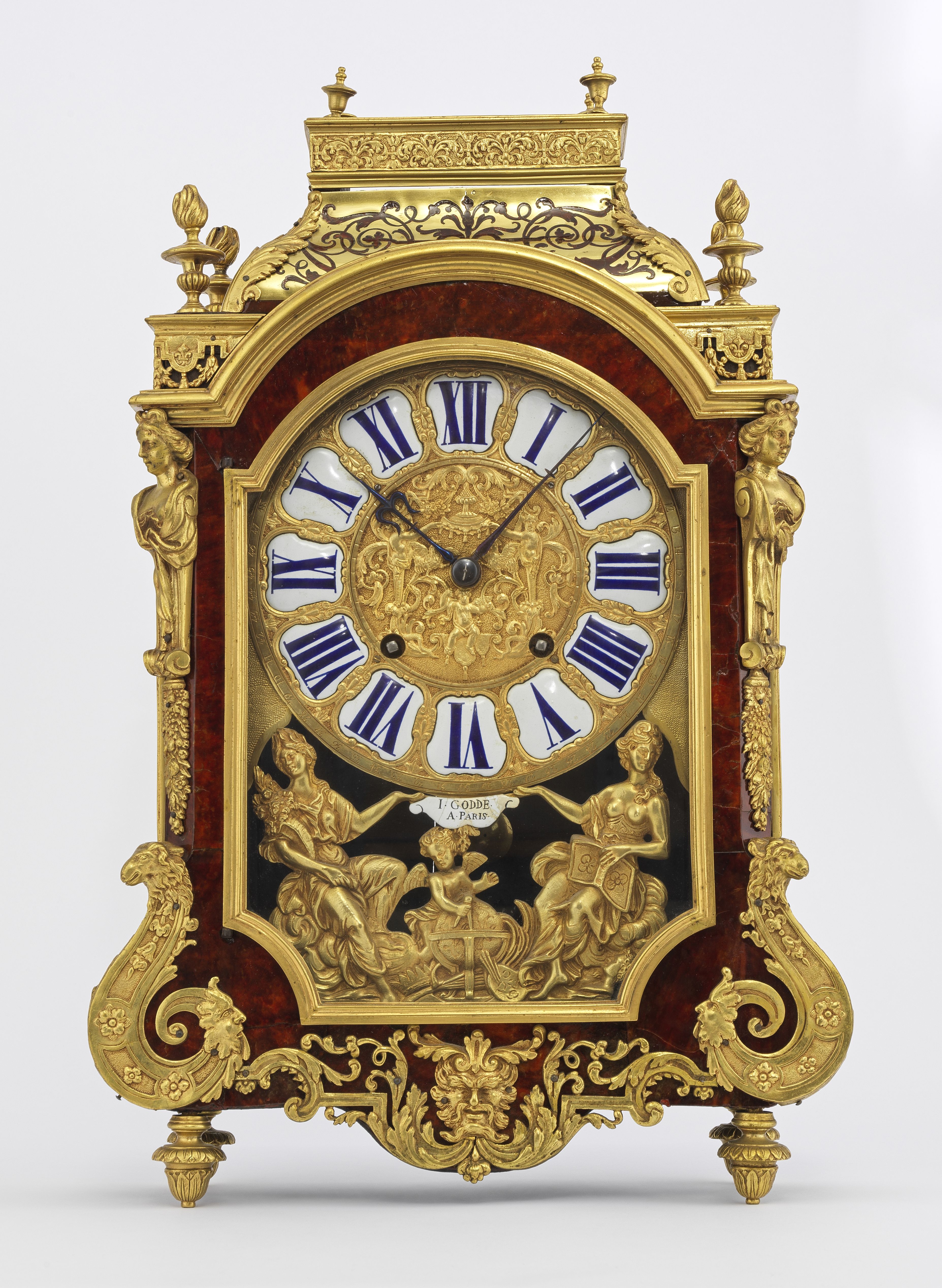 Bronze doré, écaille et laiton en partie peint, cadran émaillé b...