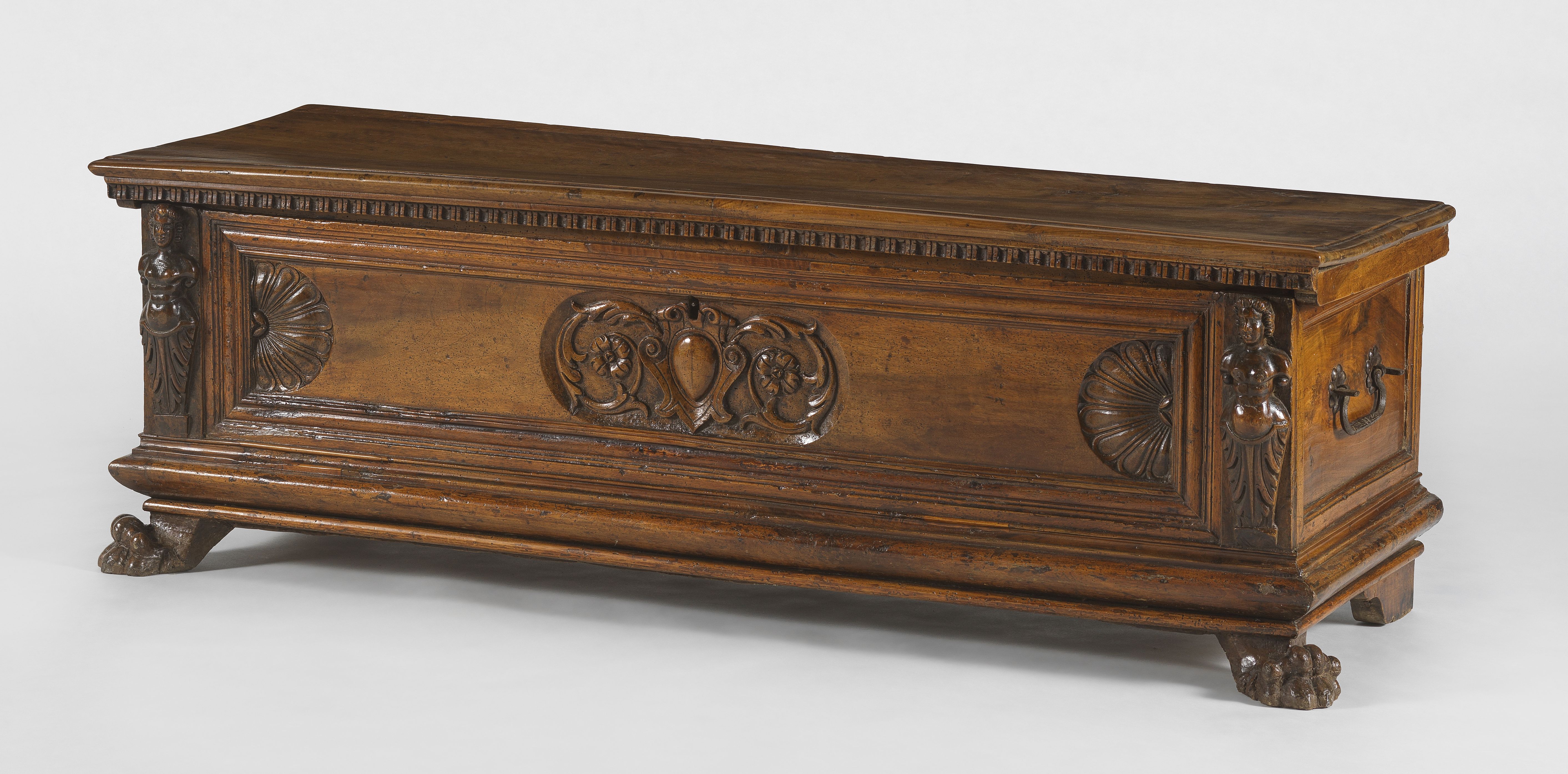 5106. Coffre à décor de termes et pieds griffes, fin XVIe-début XVIIe...