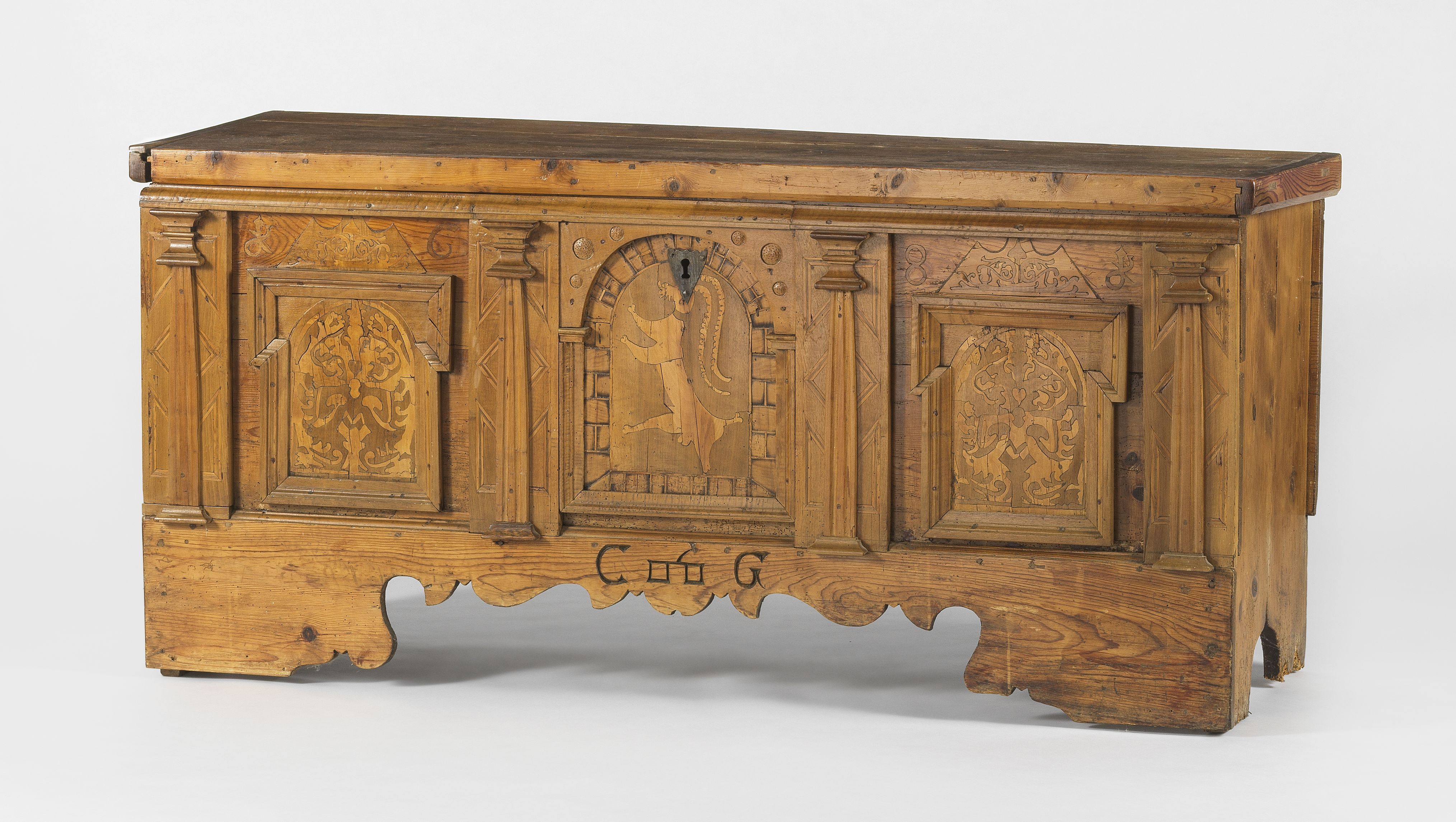5105. Coffre, travail alpin, daté 1688