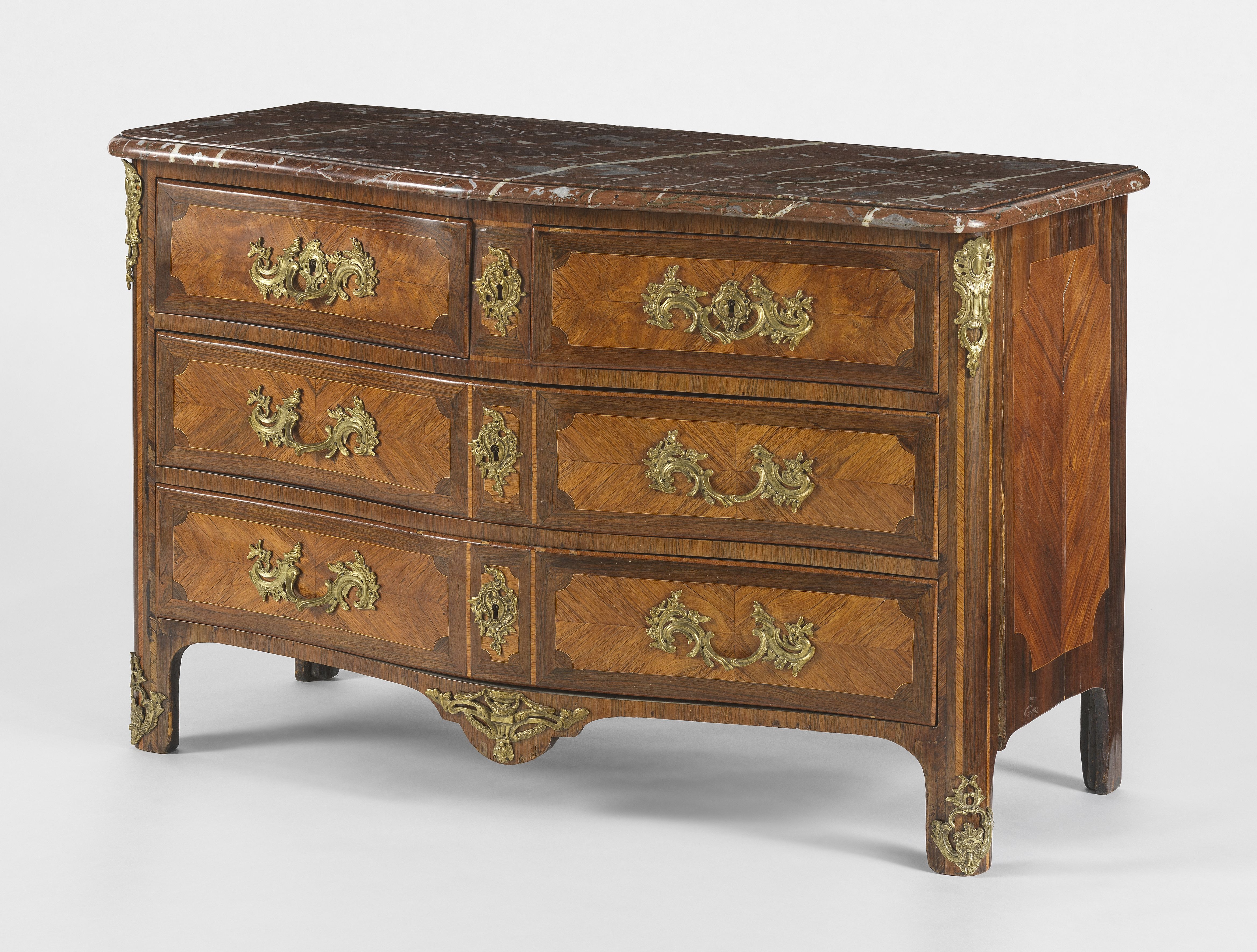 Un abattant ouvrant sur 17 tiroirs à décor de coquilles et d'ent...
