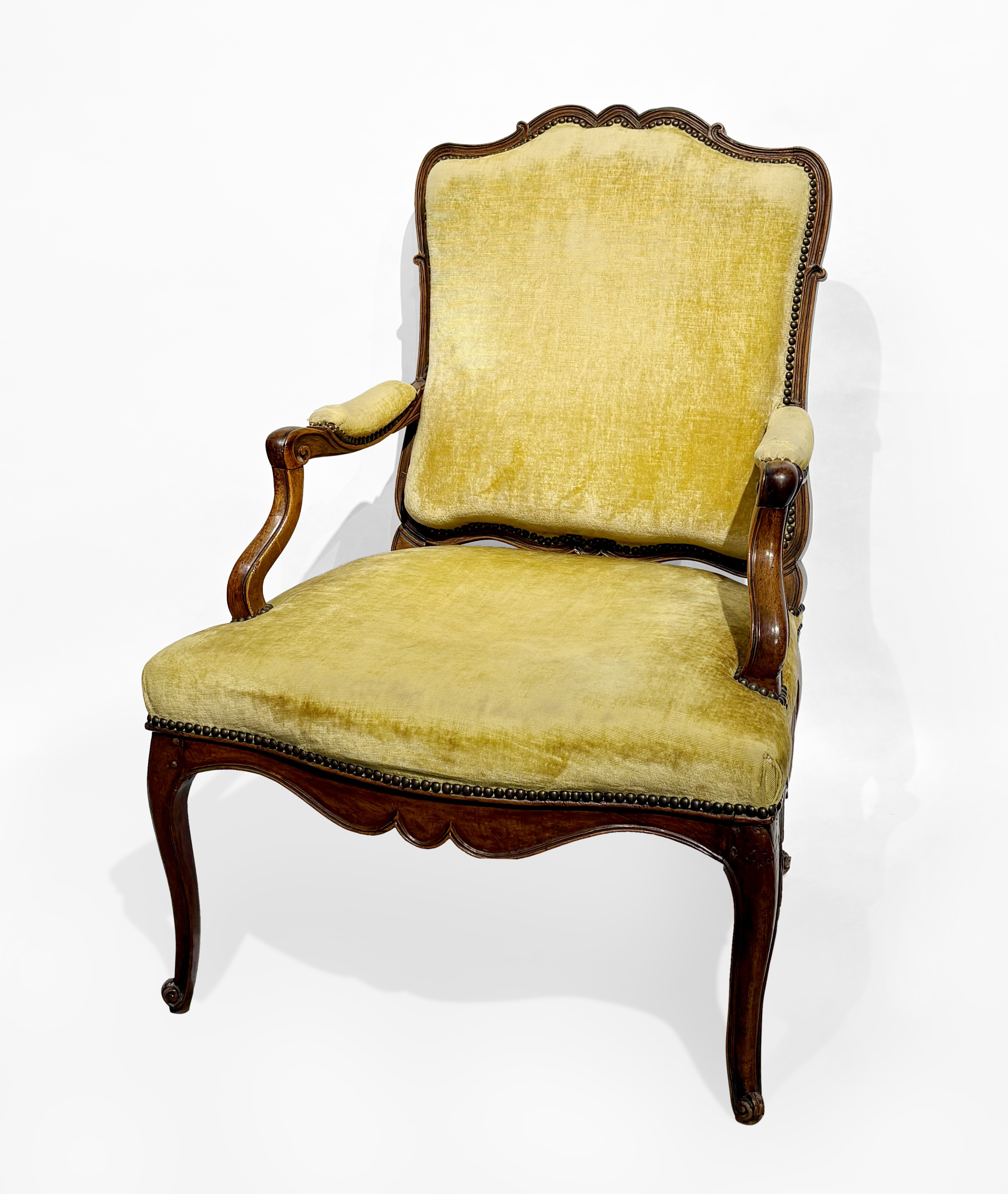 Hêtre mouluré, garniture en velours jaune, H 102 cm