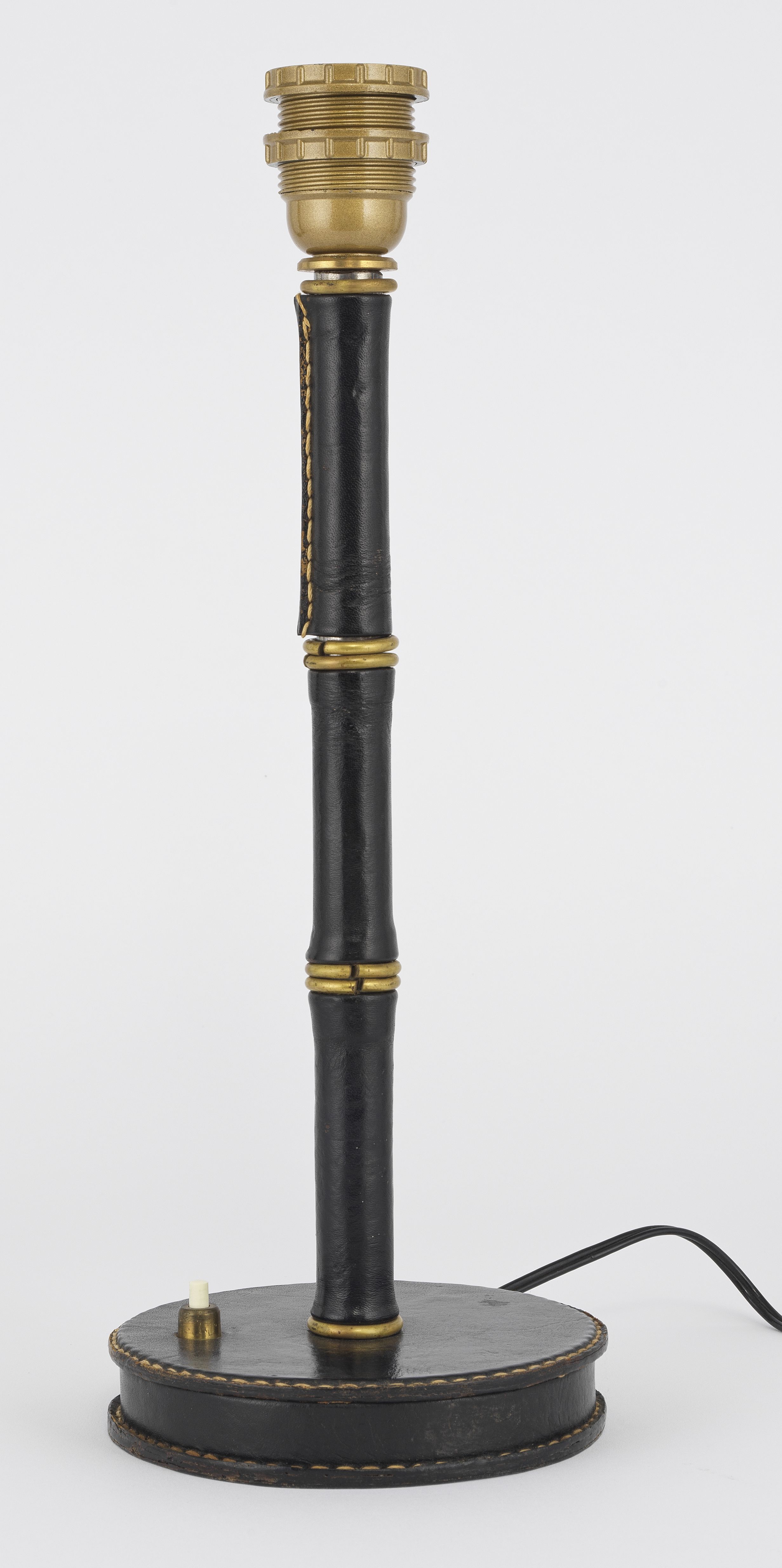 Cuir piqué noir et laiton, H 35 cm