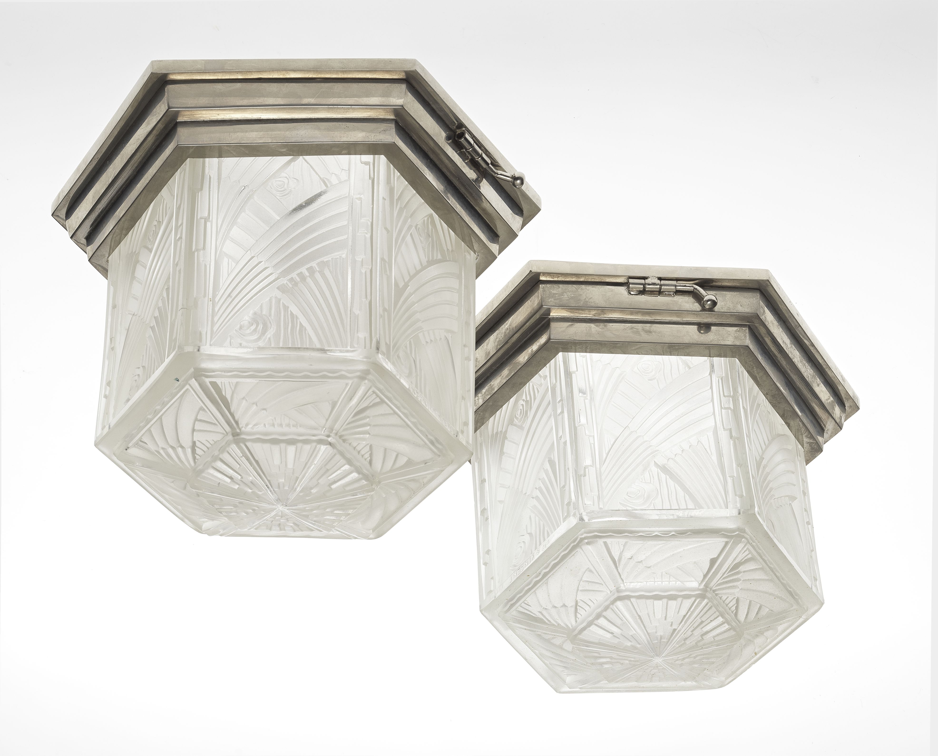 5065. Paire de plafonniers hexagonaux Art déco, Hetter Vincent, France