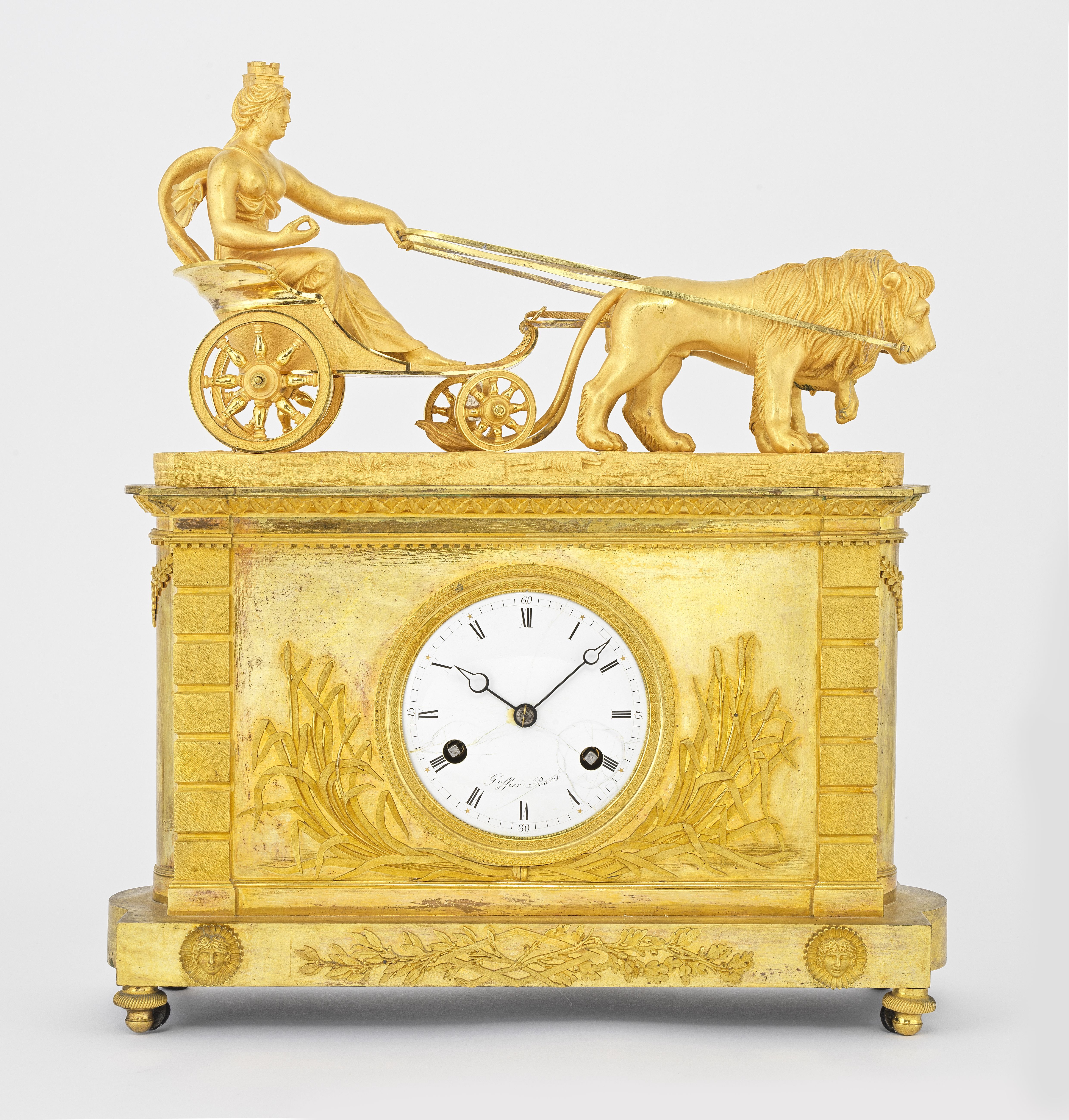 5033. *Pendule d'époque Empire au char tiré par Cybèle