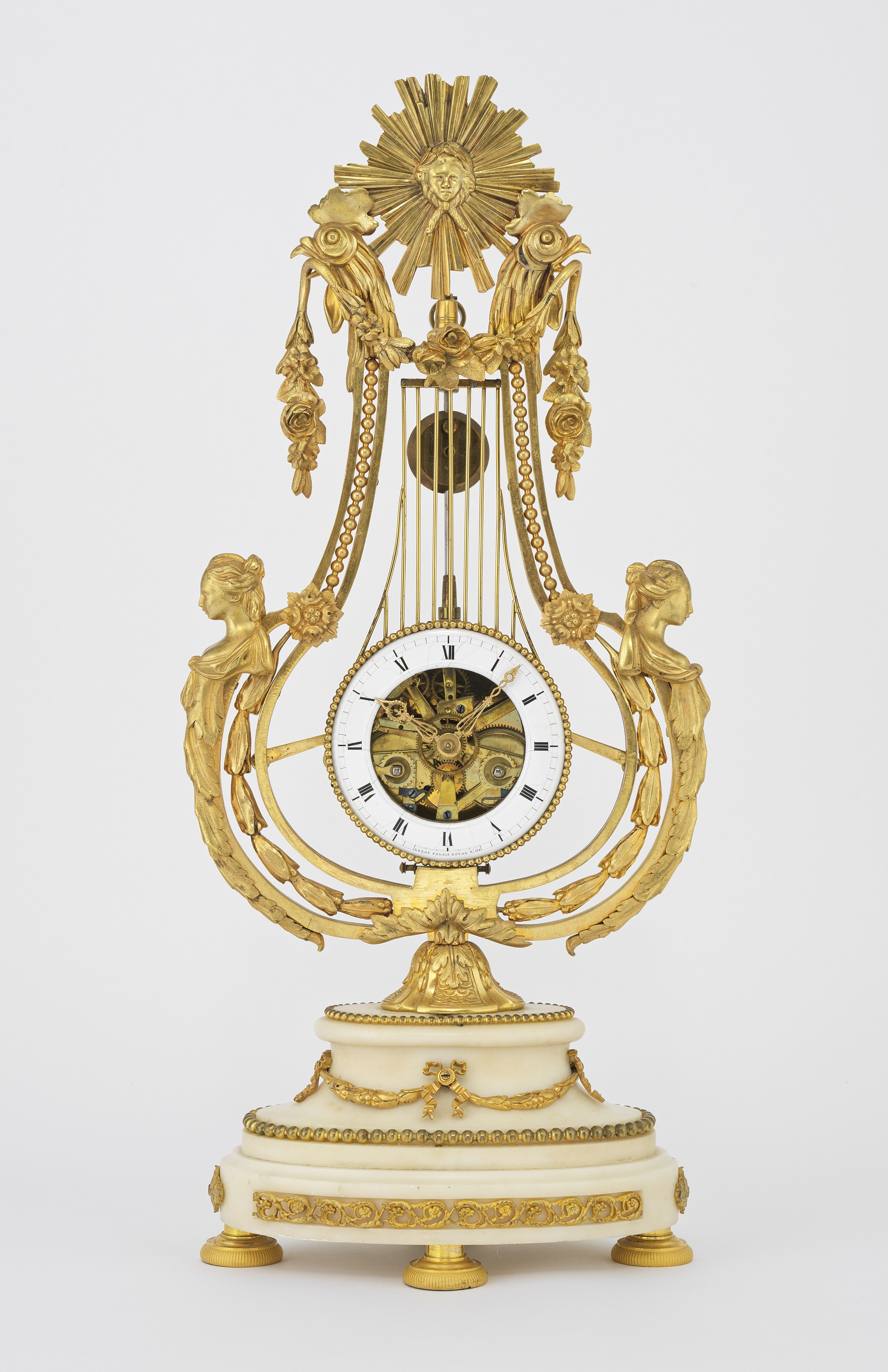 5035. *Pendule lyre squelette d'époque Louis XVI