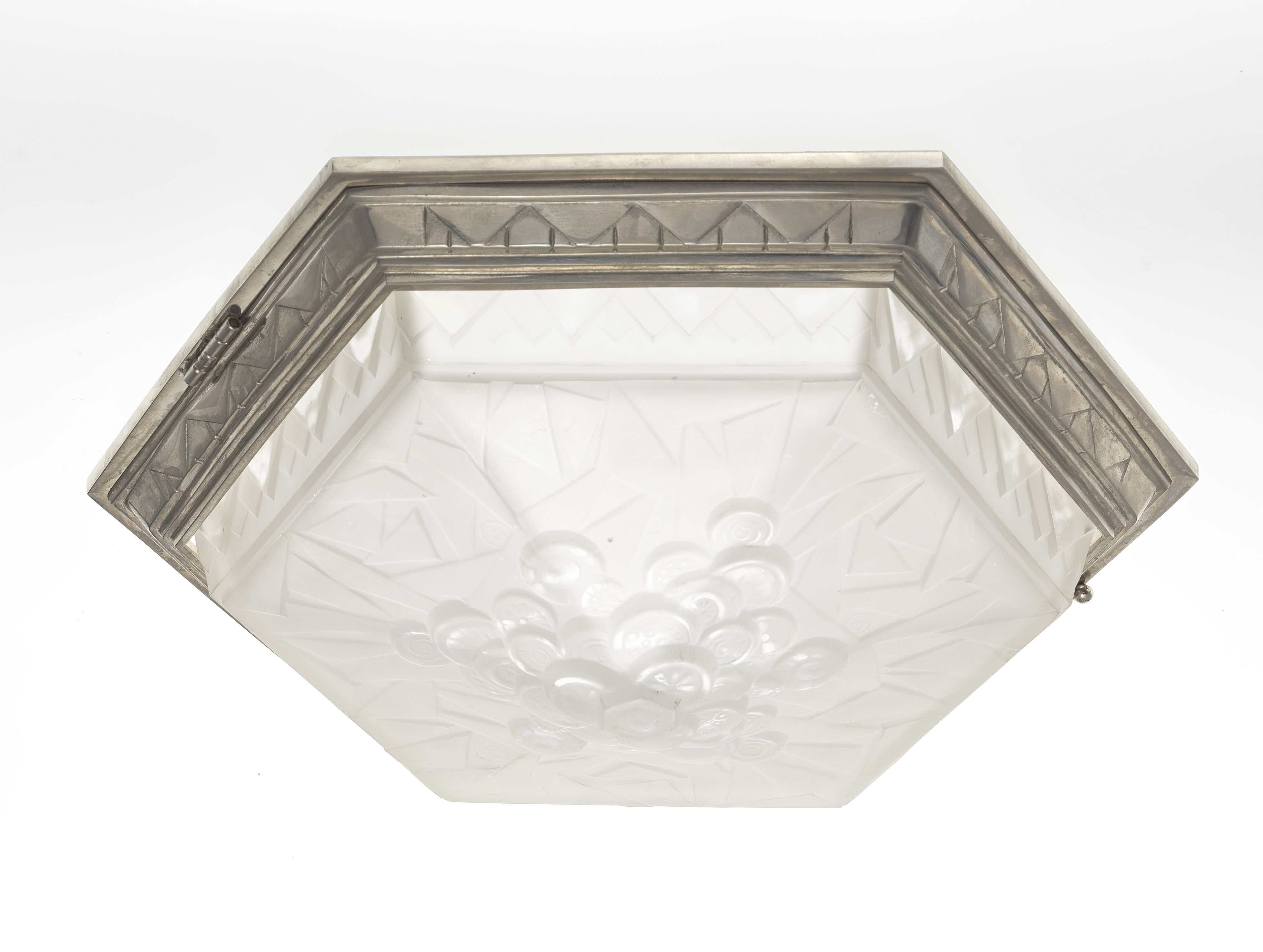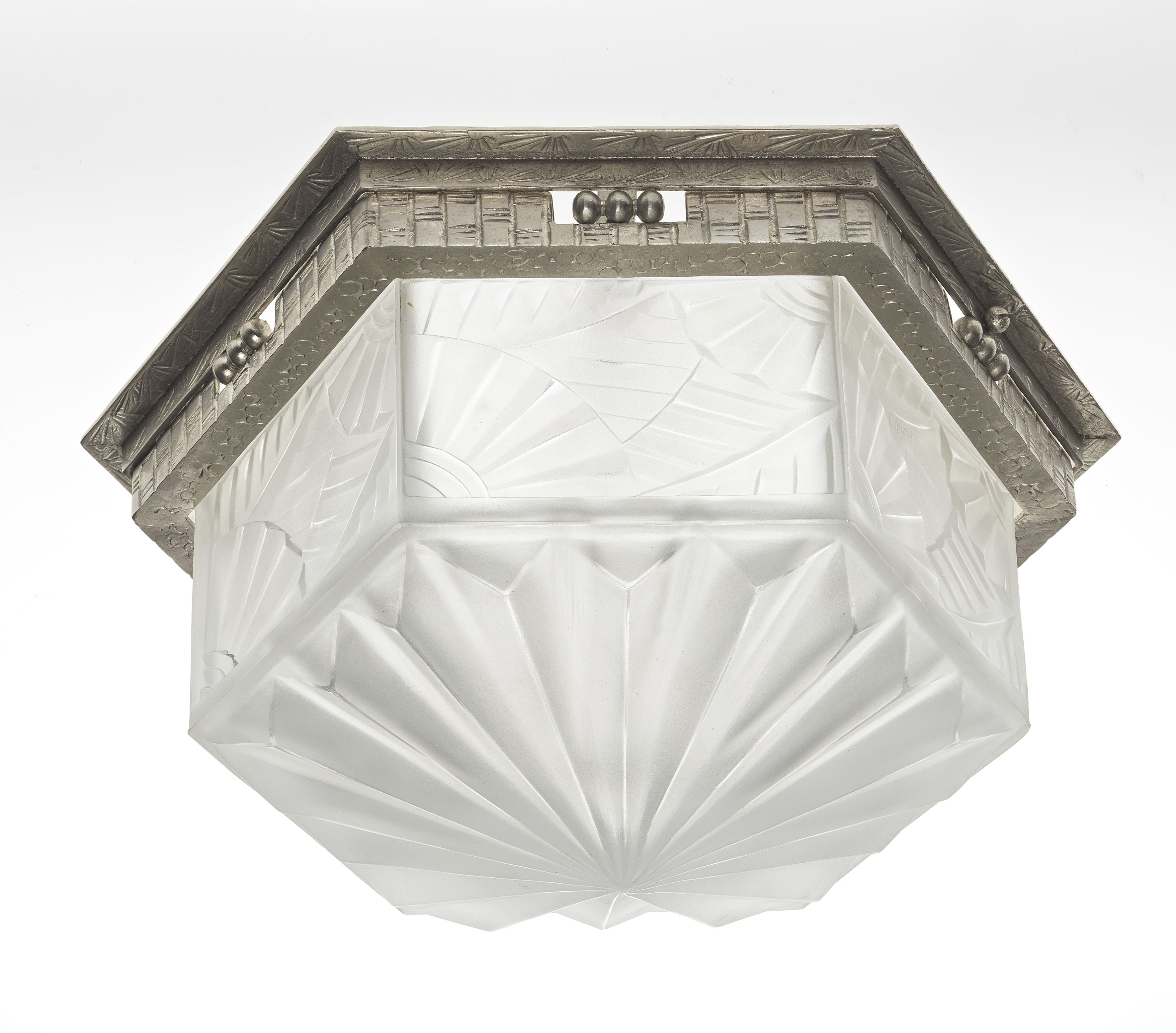 5068. Plafonnier hexagonal Art déco à motif éventail