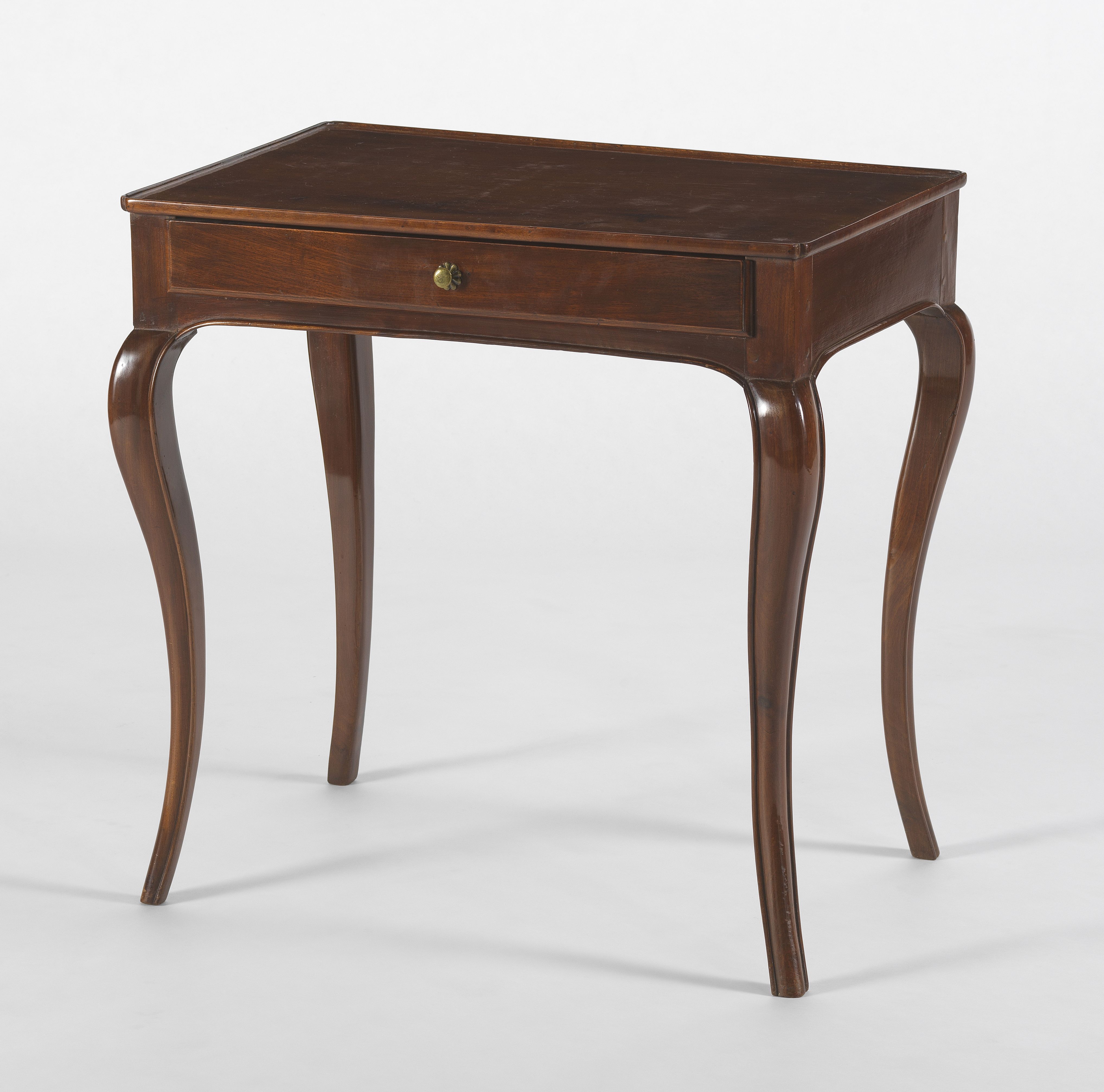 Un tiroir en ceinture, pied galbé, bois fruitier, 71x57x40 cm