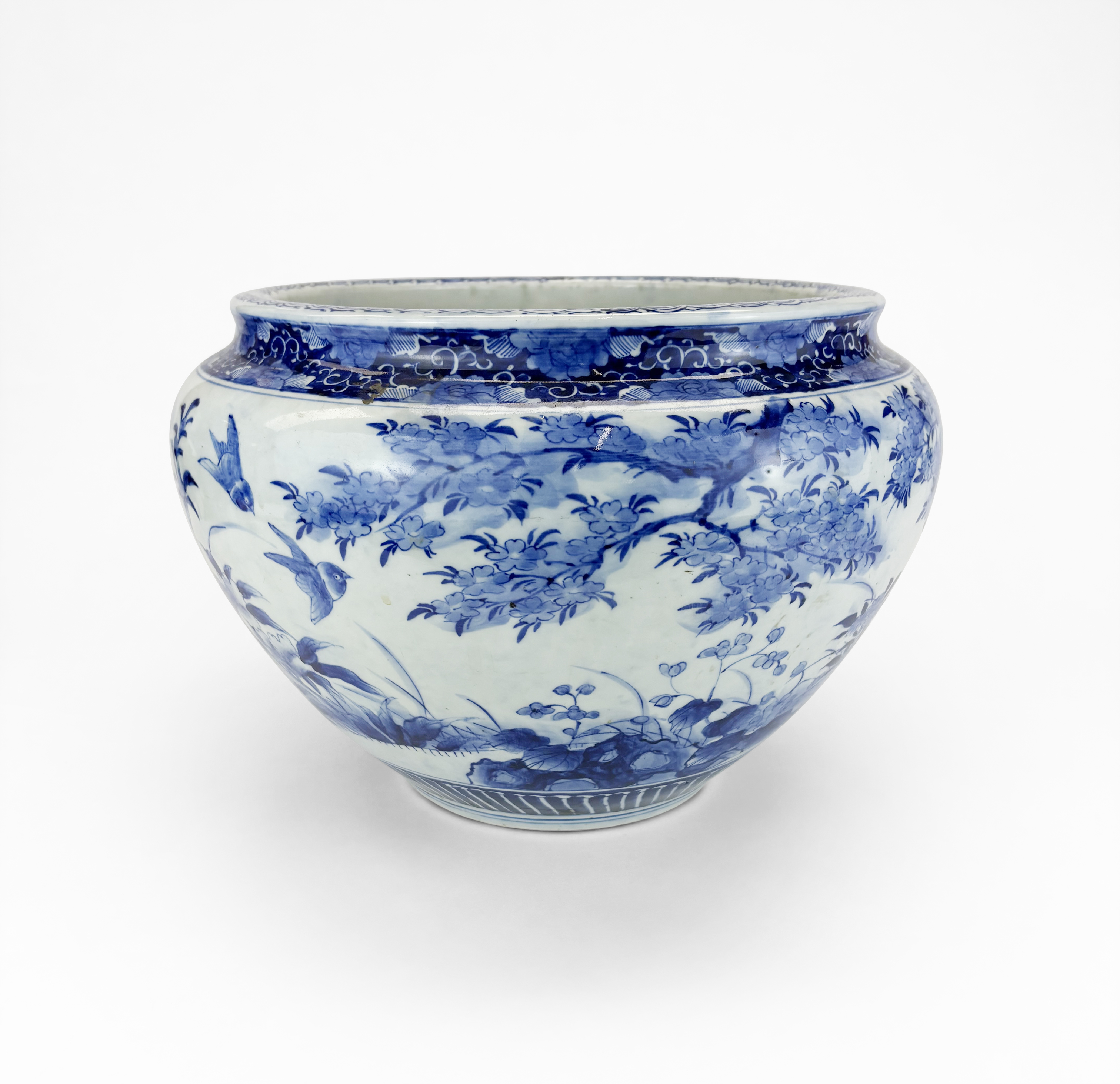 Porcelaine émaillée bleu blanc à décor d'oiseaux, H 26 cm