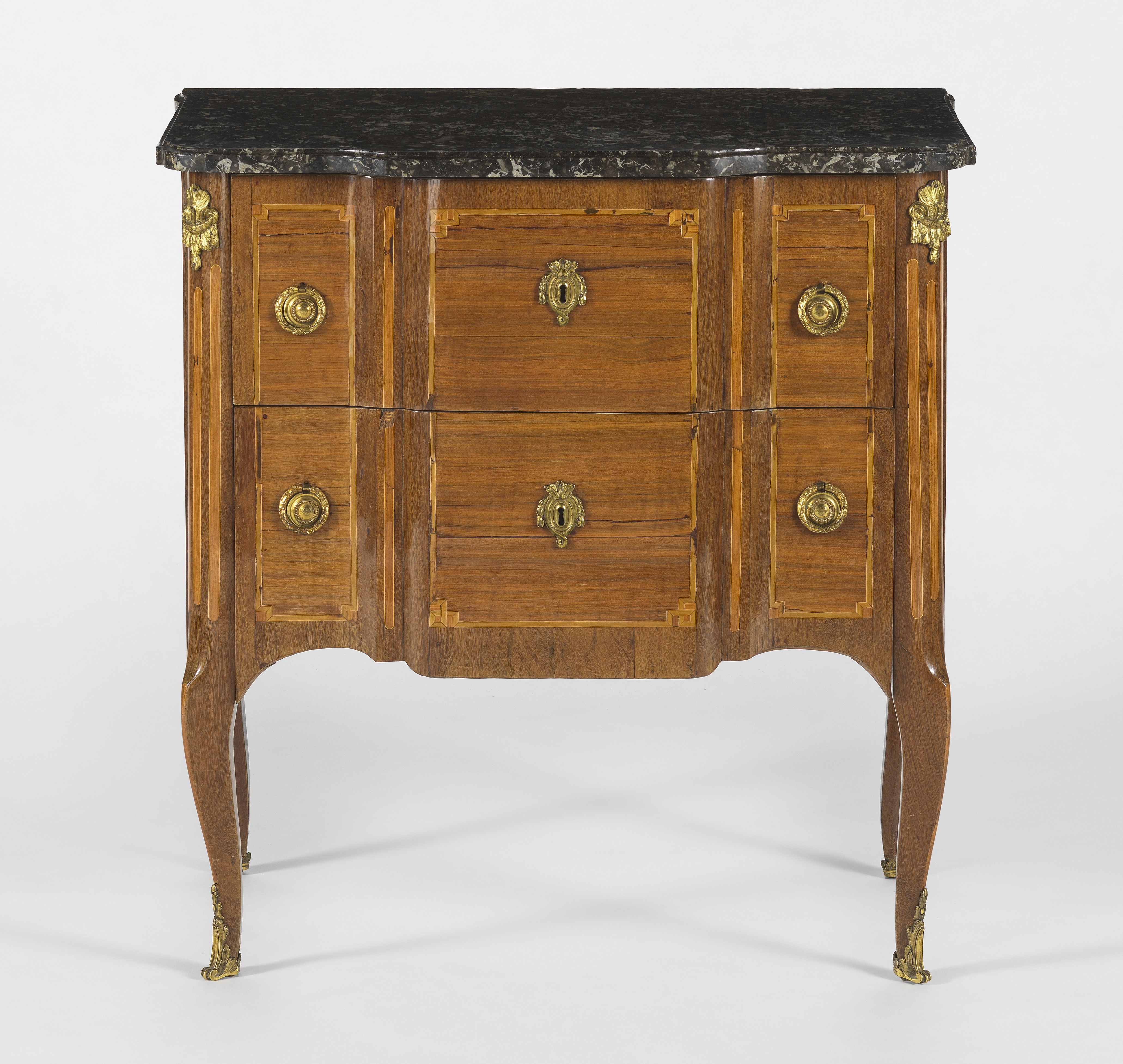 Deux tiroirs, bronze doré, placage de satiné et de violette, pla...