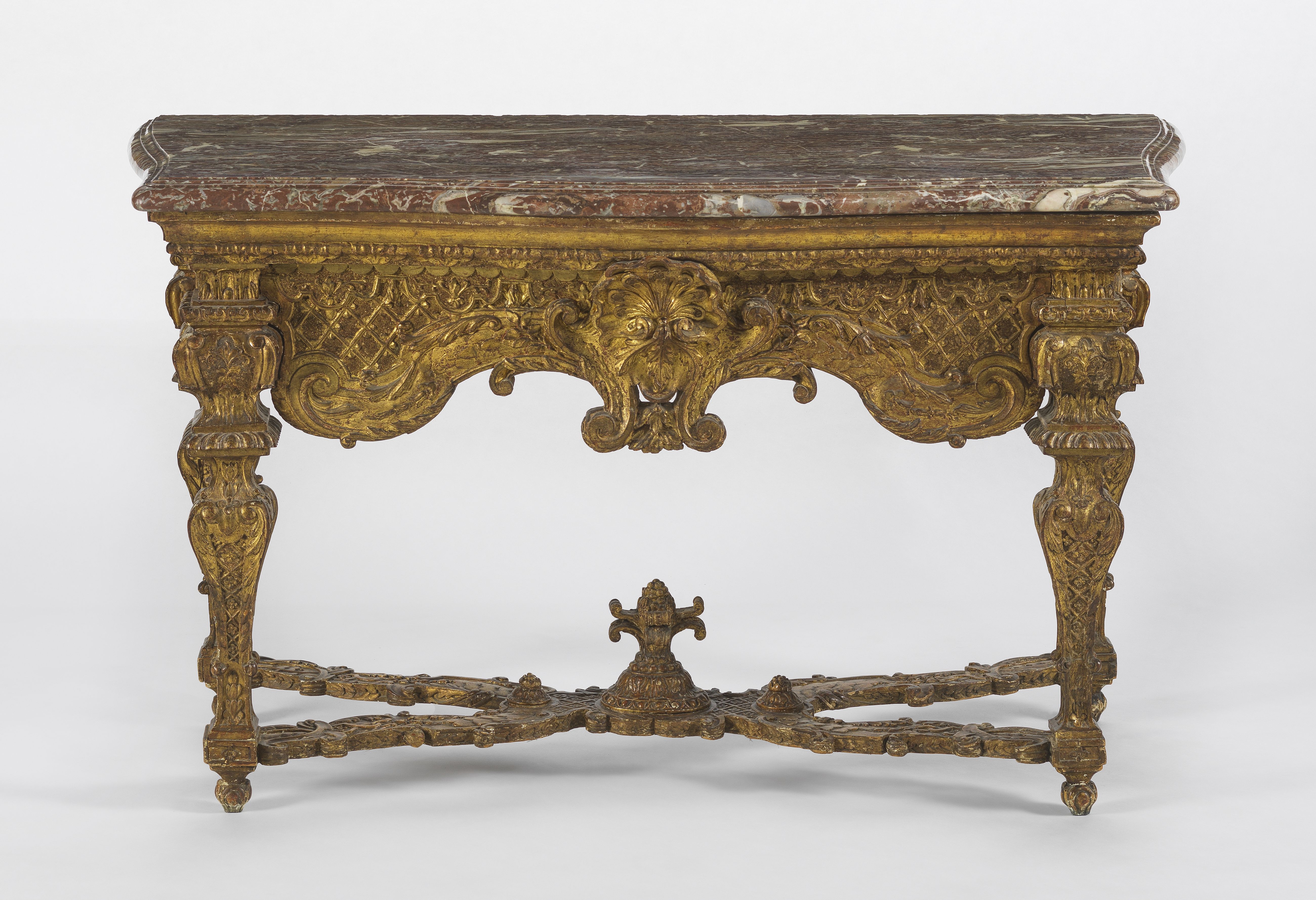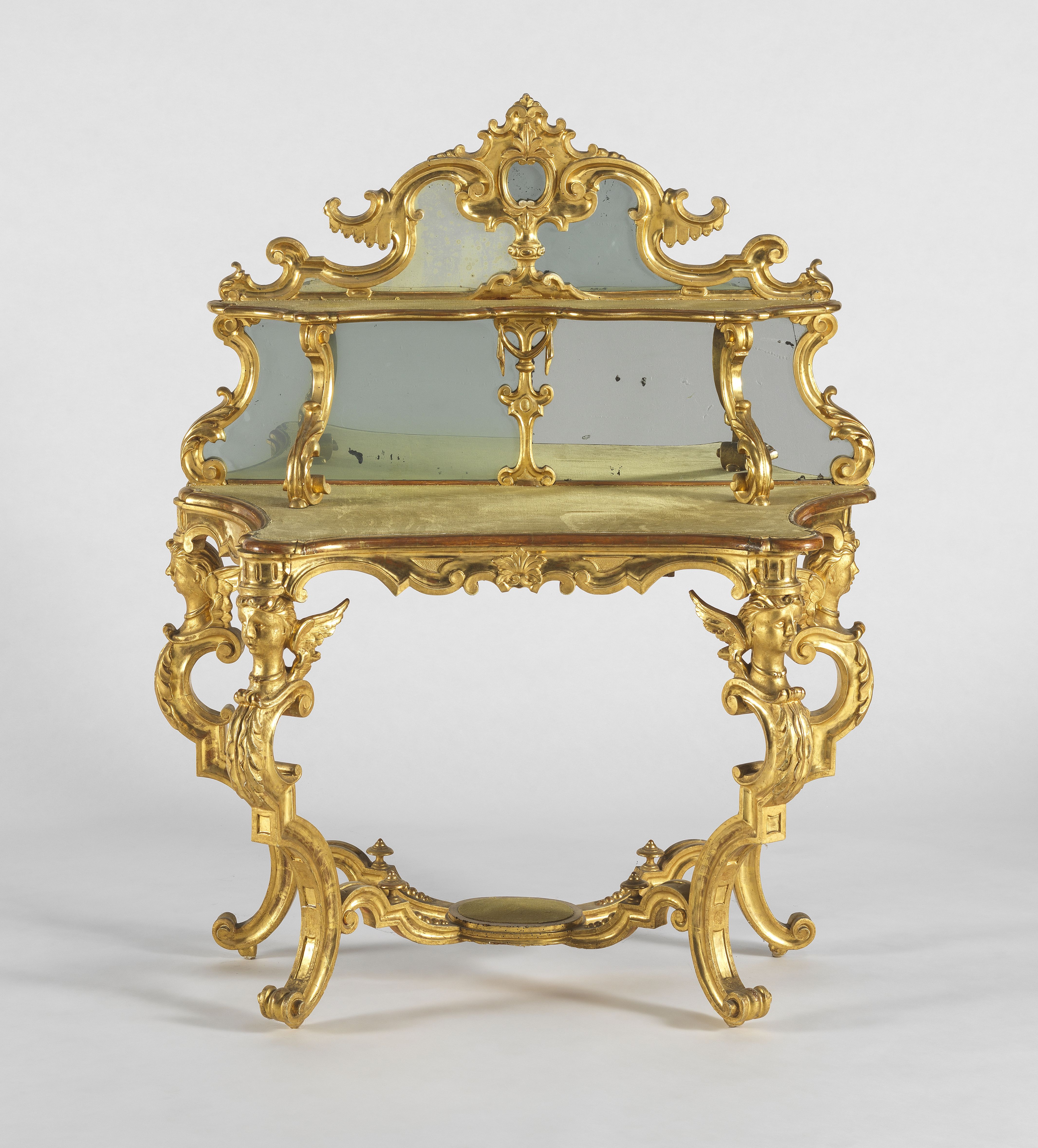 Bois sculpté et doré à décor de coquilles et volutes, plateau en...
