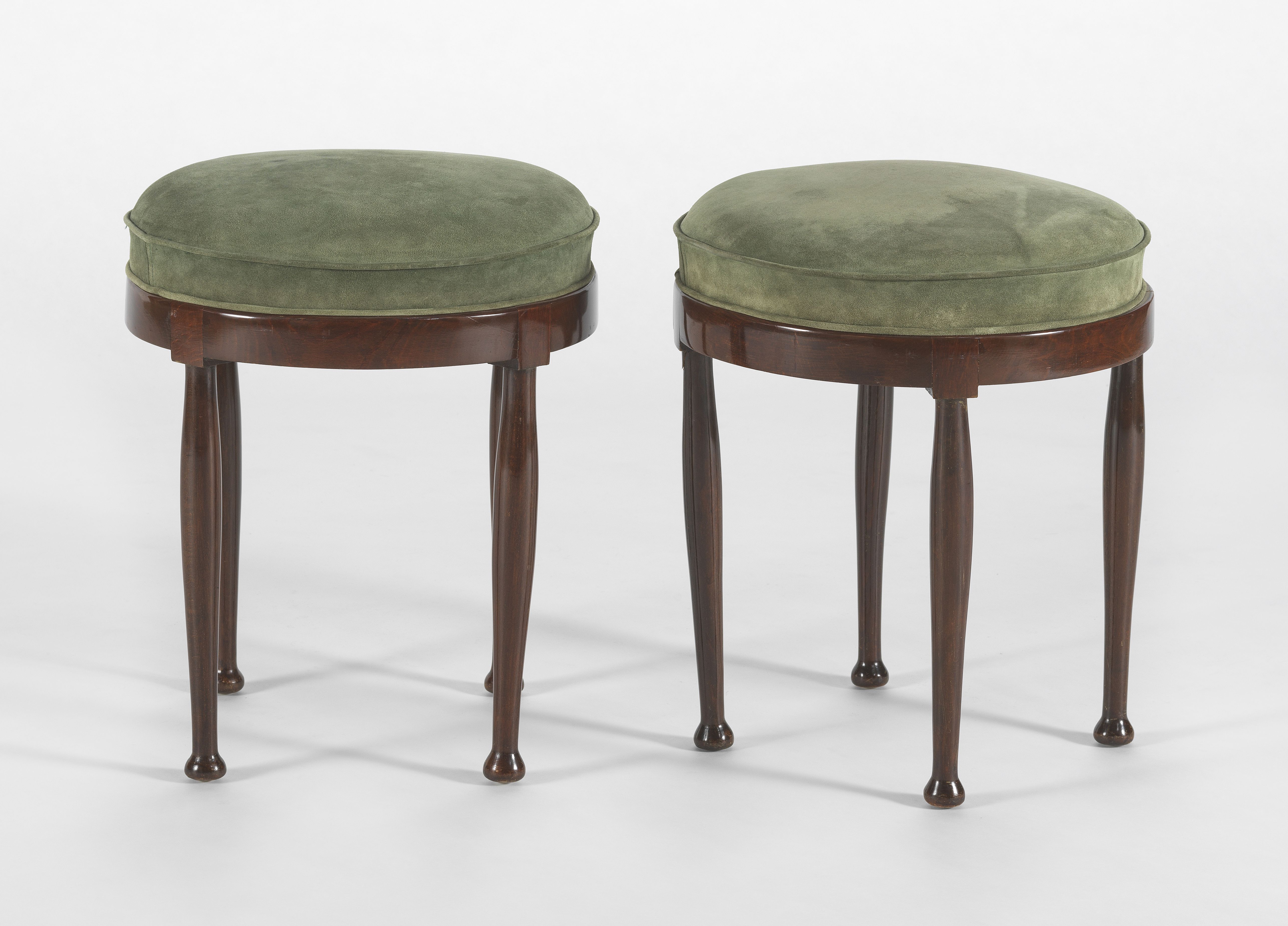 5167. Paire de tabourets ronds de style Art déco aux pieds fuselés