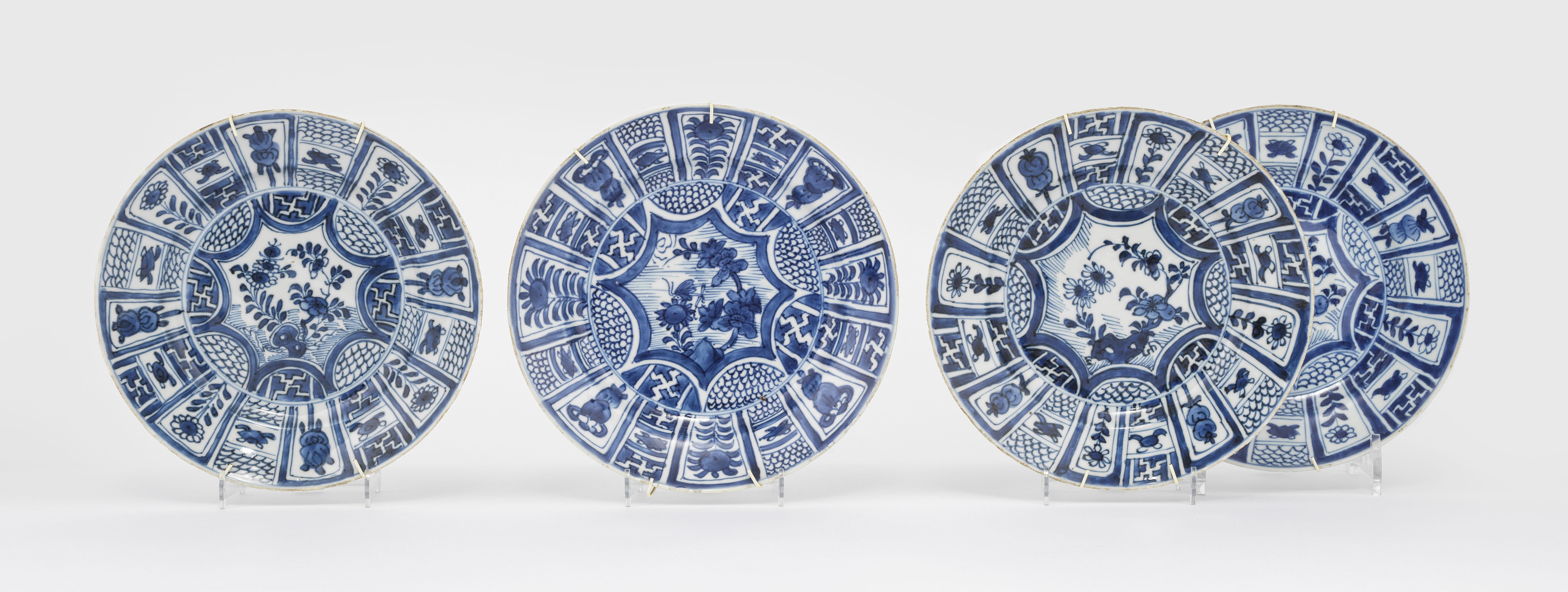 5225. Quatre assiettes Kraak, Chine, début de la dynastie Qing (1644-1...