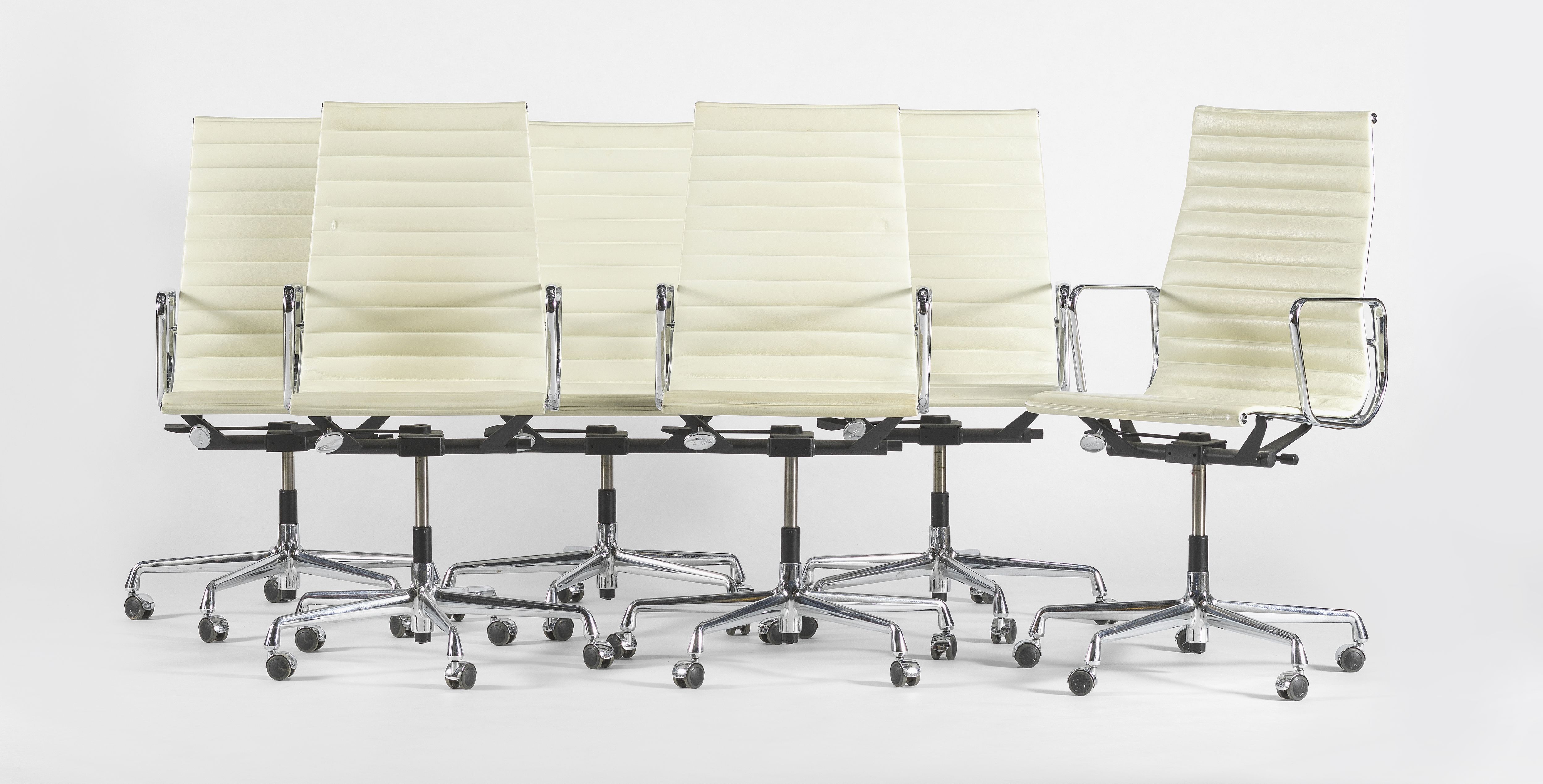 5193. Suite de six fauteuils de bureau pivotants réglables sur roulett...