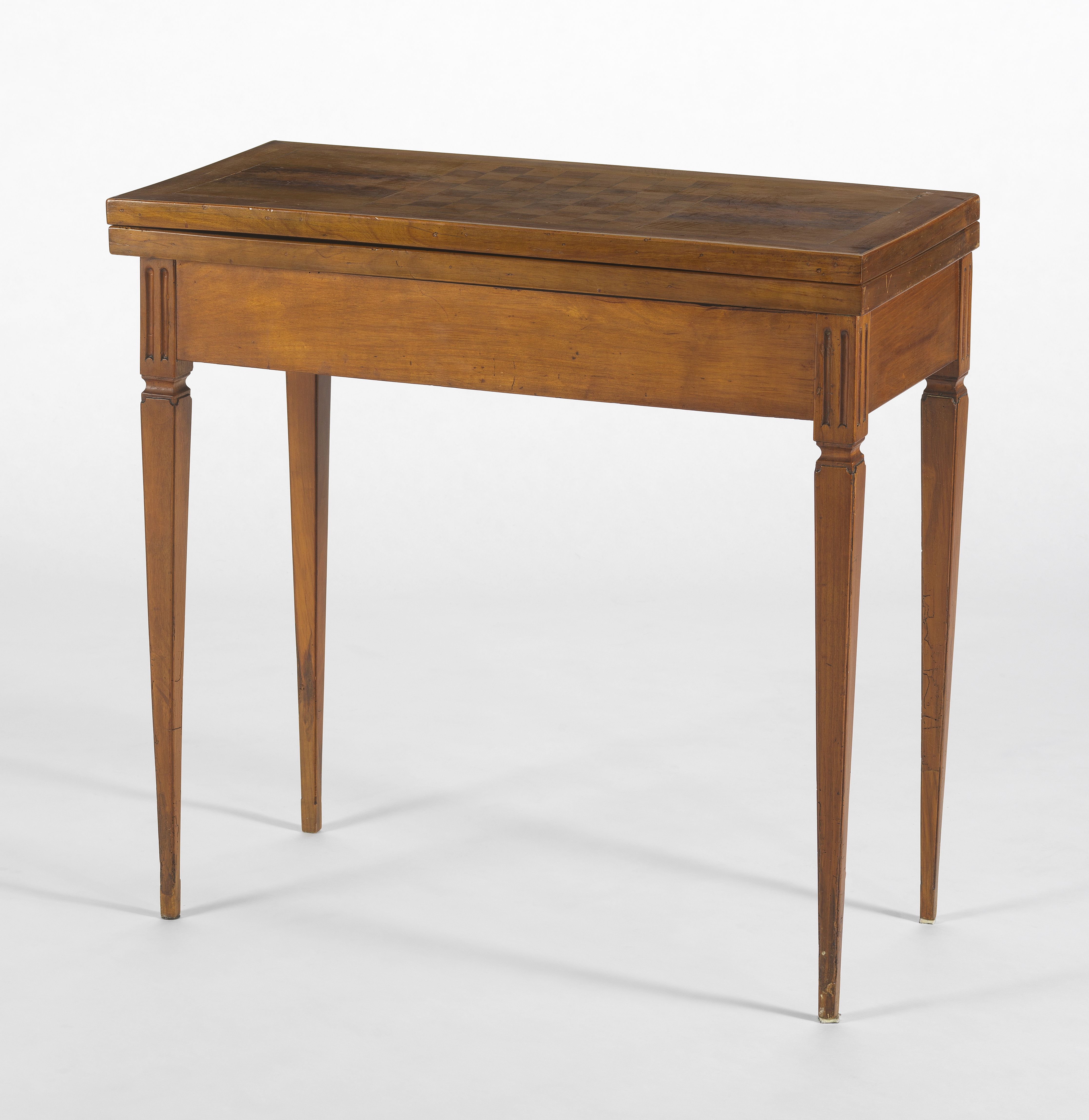 Bois fruitier et marqueterie à décor d'un damier, 76x78x39 cm