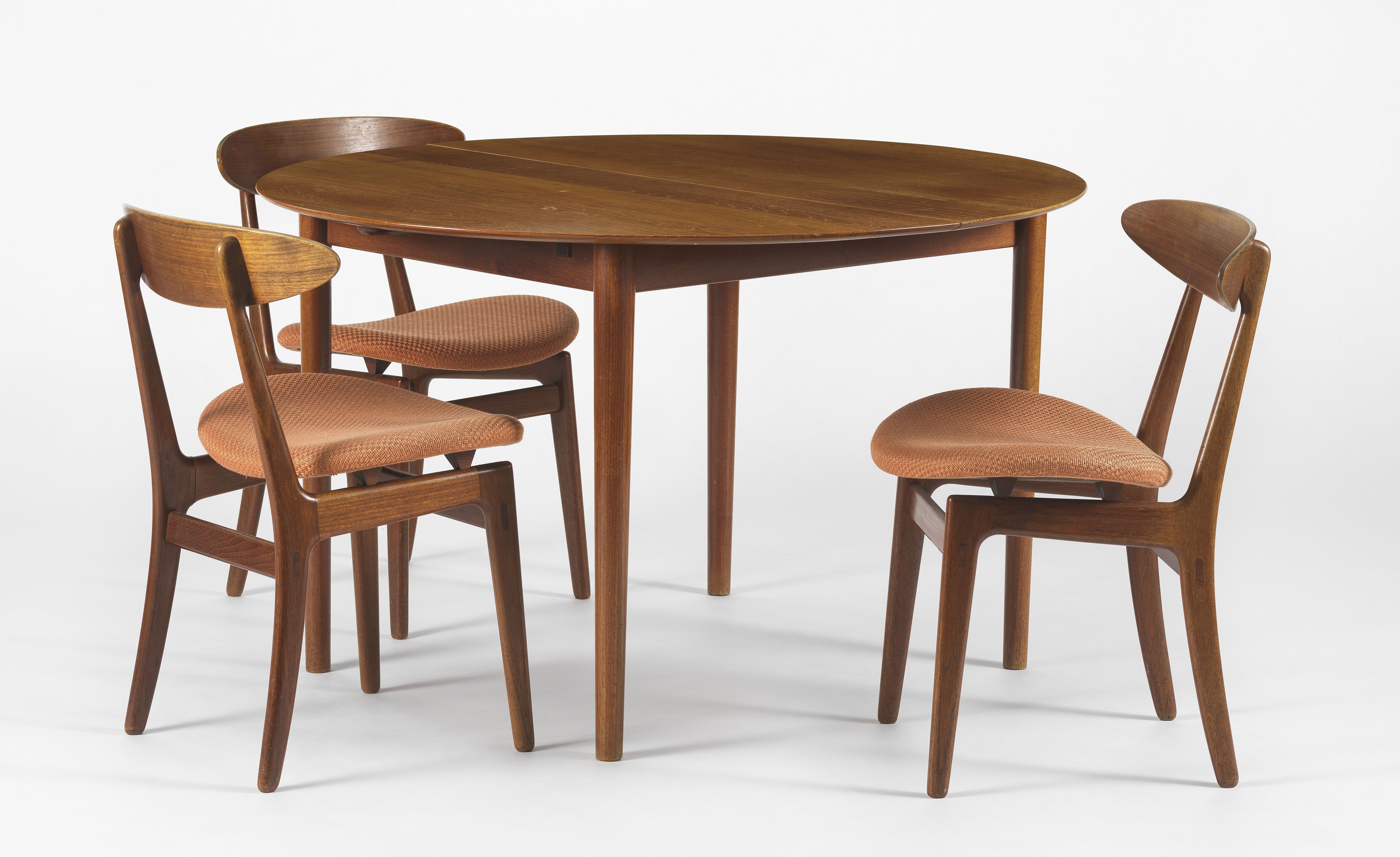 5203. Quatre chaises gondole et une table ronde, circa 1950