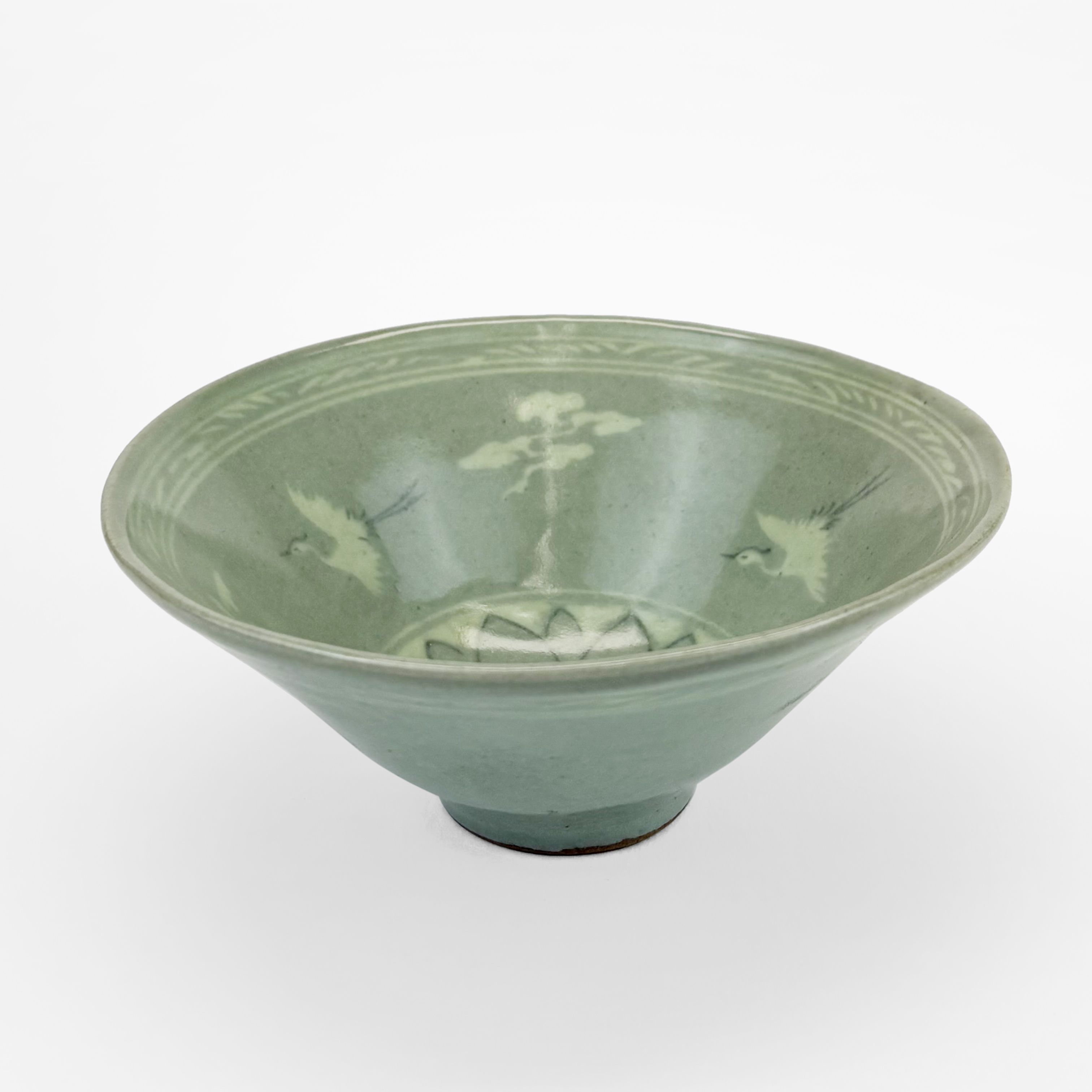 Céramique émaillée vert céladon à décor de grues, D 14,5 cm