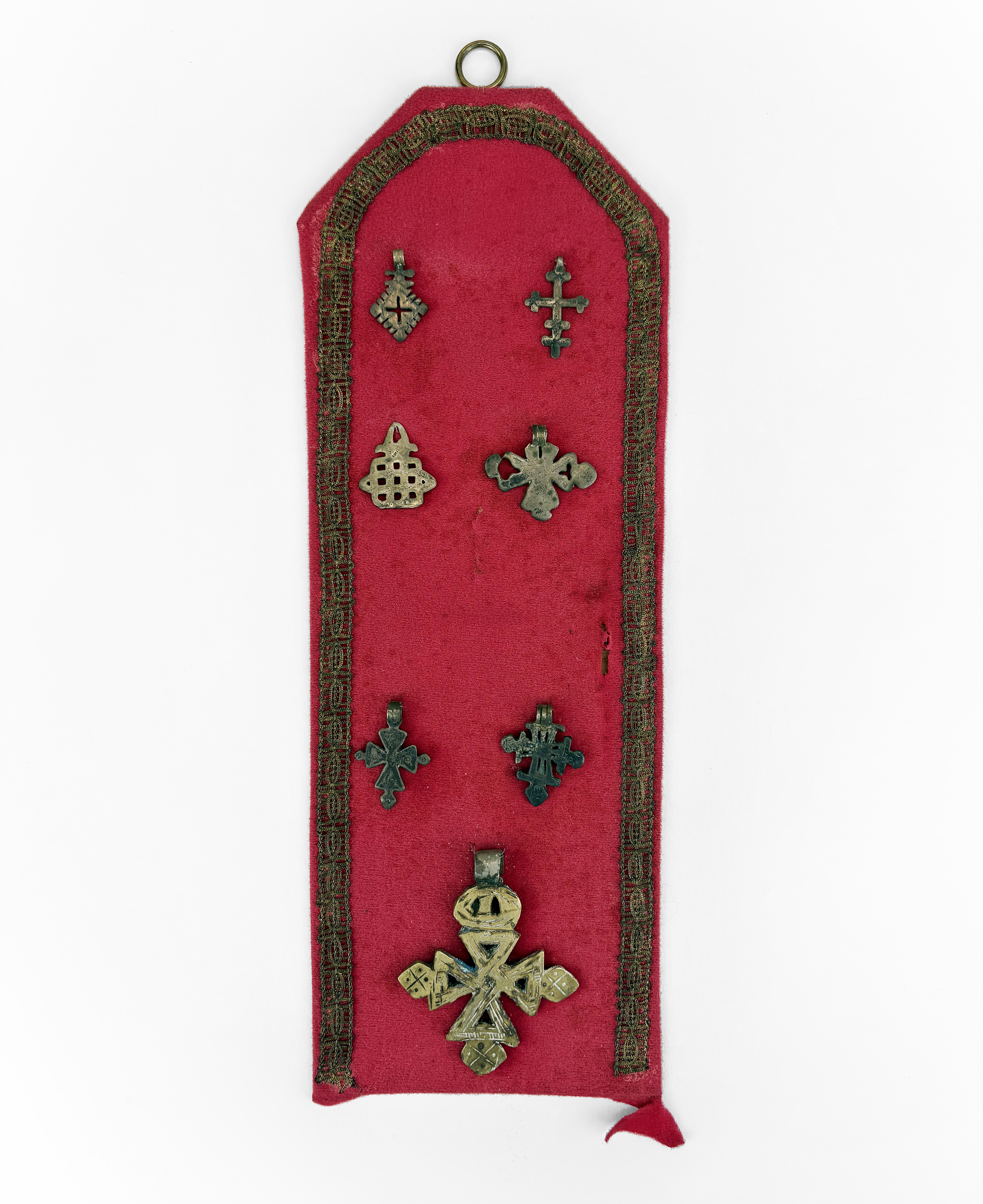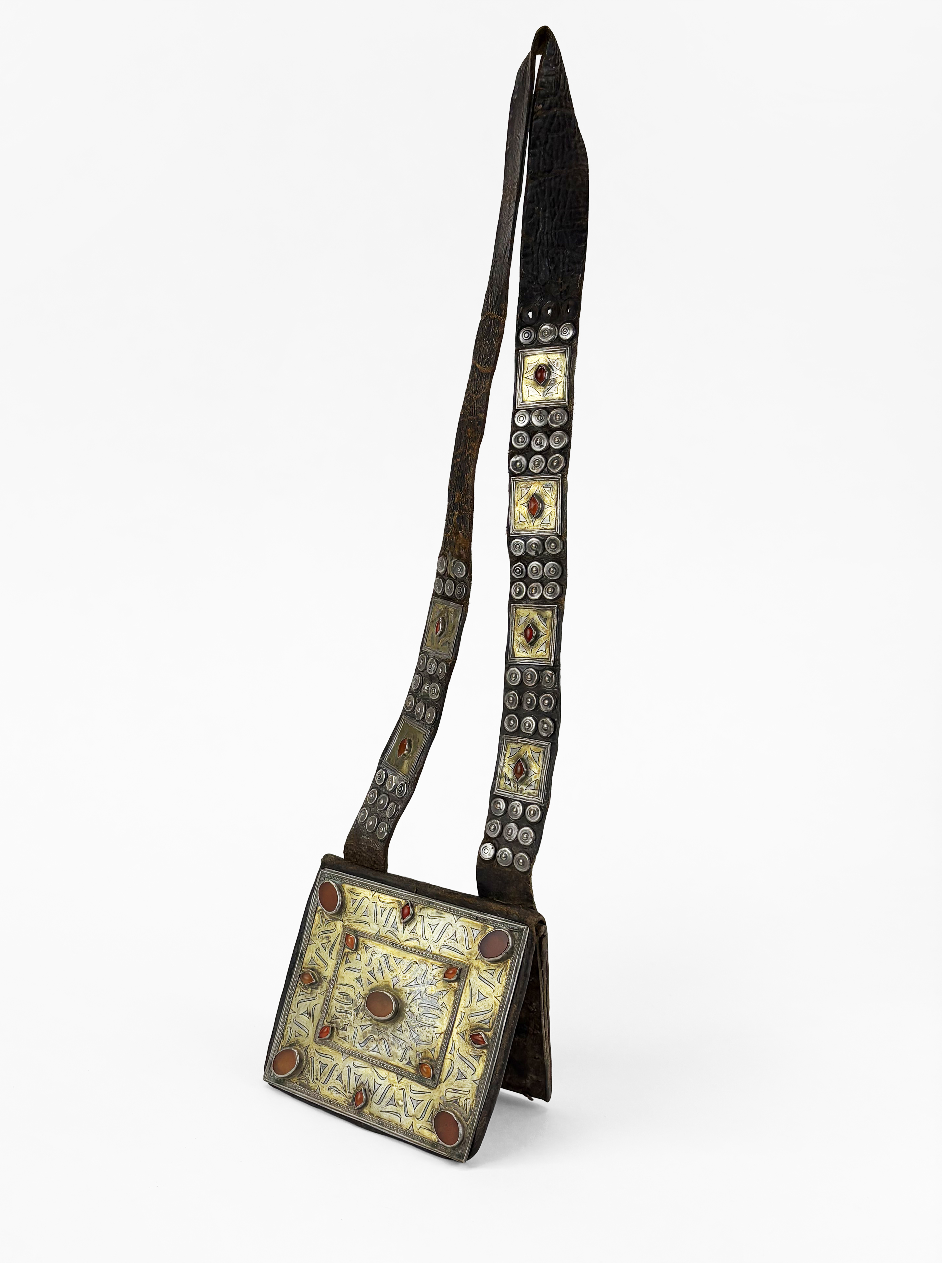 Cuir, cabochons de pierre orange et probablement argent, L 13 cm