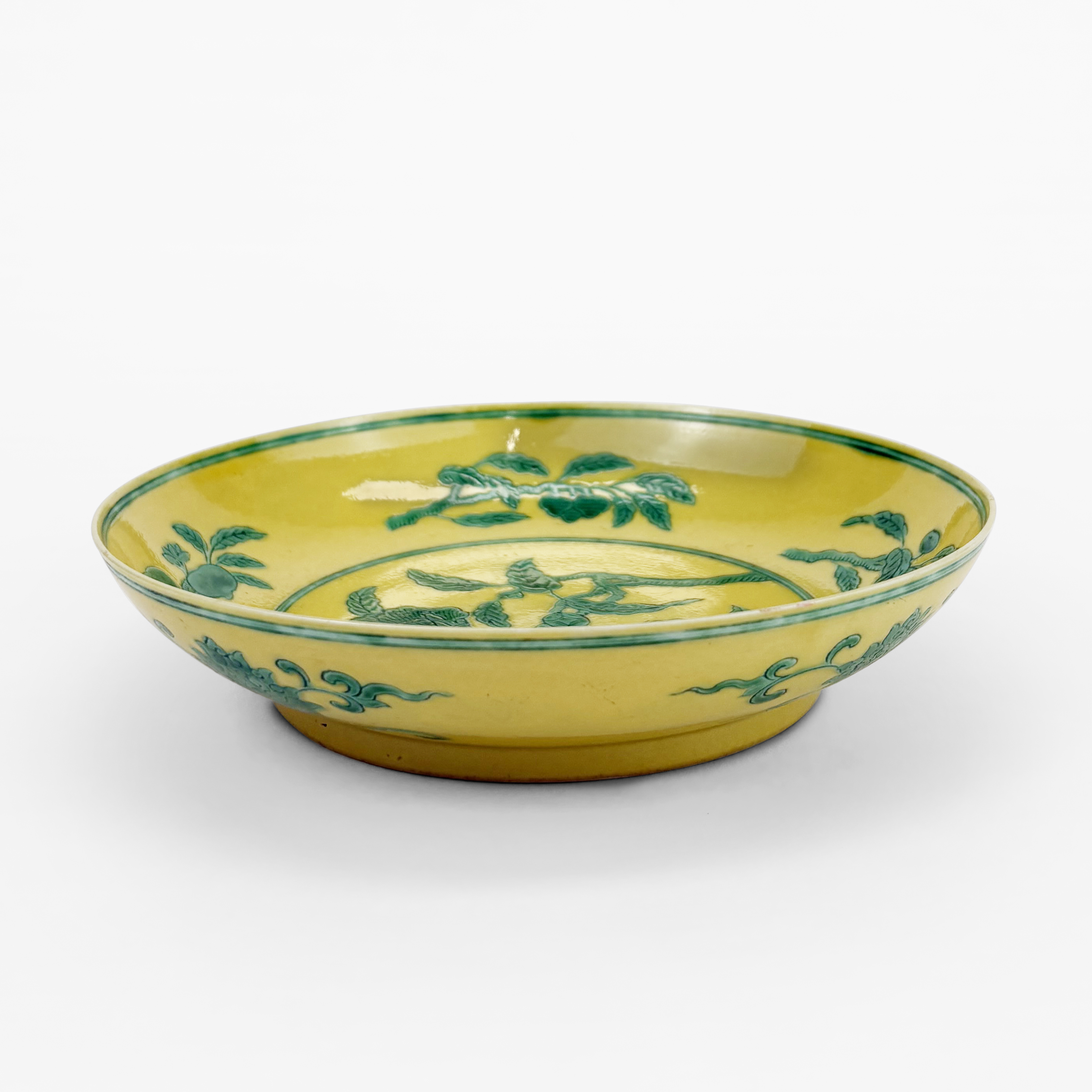 Porcelaine émaillée jaune et vert à décor de fleurs des quatre s...