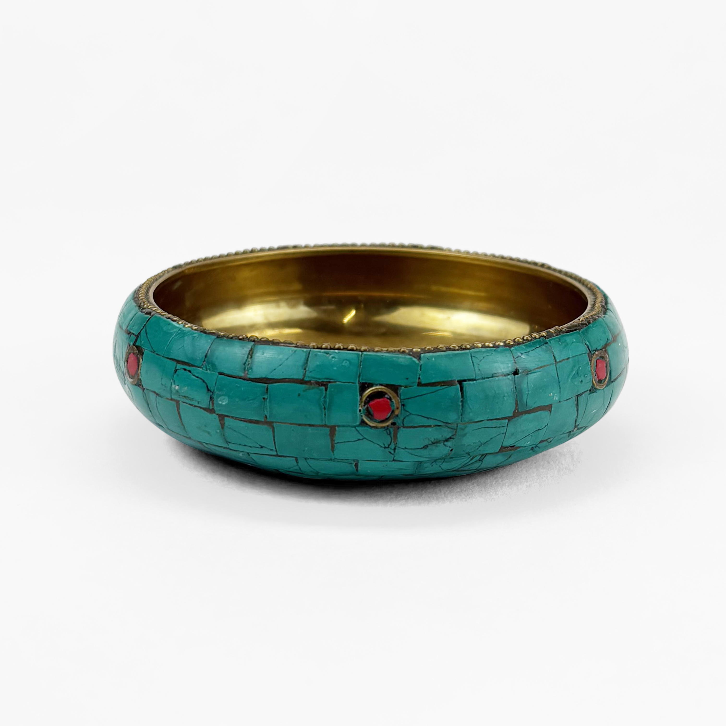 Faïence émaillée turquoise rouge et bleu, D 37 cm