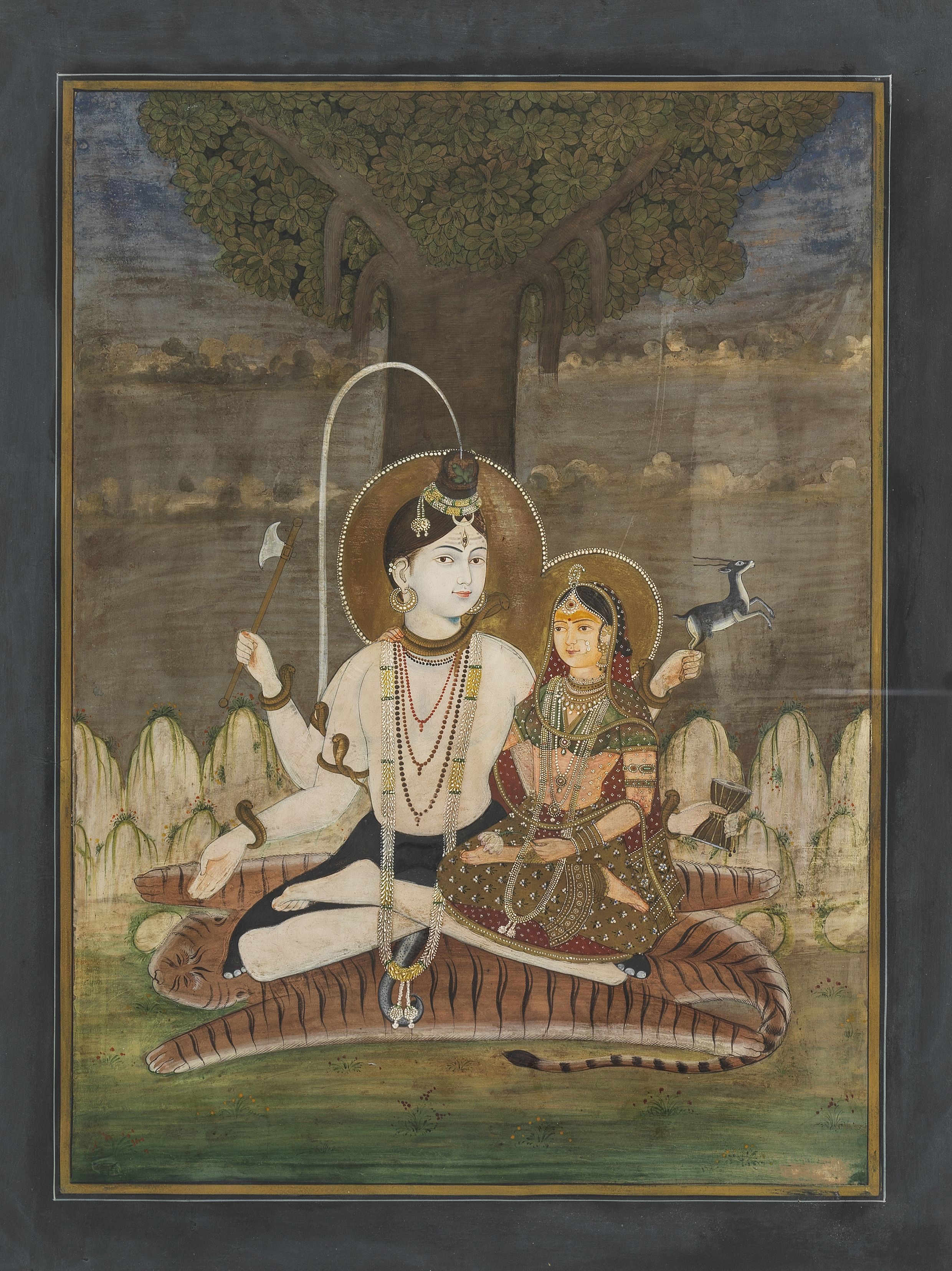 Shiva et Parvati, gouache sur papier, 47x35 cm
