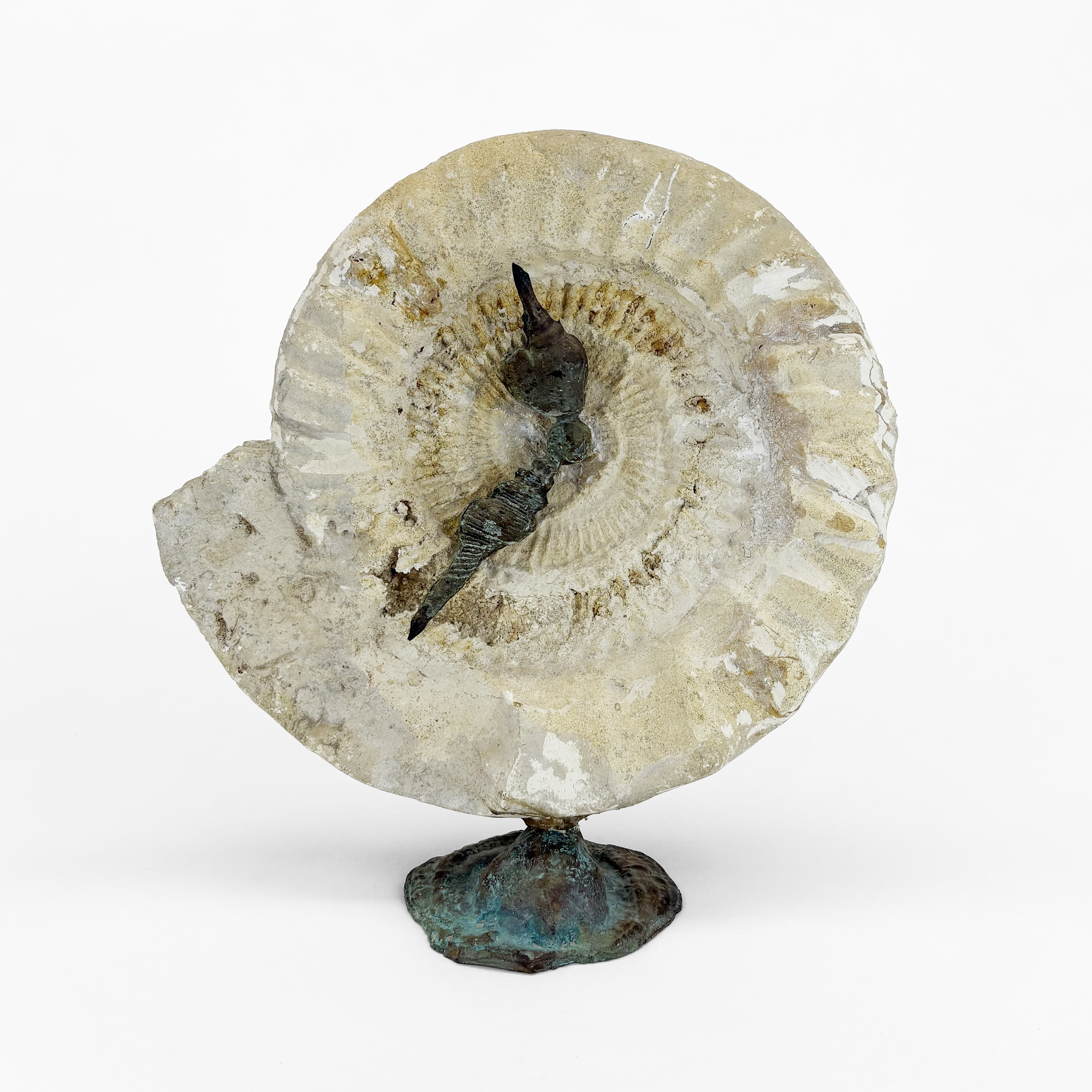 Bronze à patine brune, H 31 cm. On joint un support rond en bron...