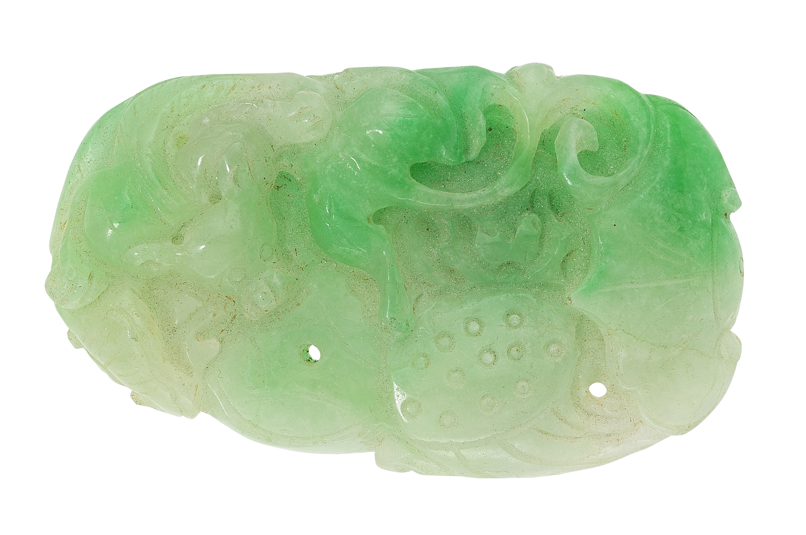 Jade sculpté, L 7 cm. Pour les lots précédés d'un *, la TVA de 8...